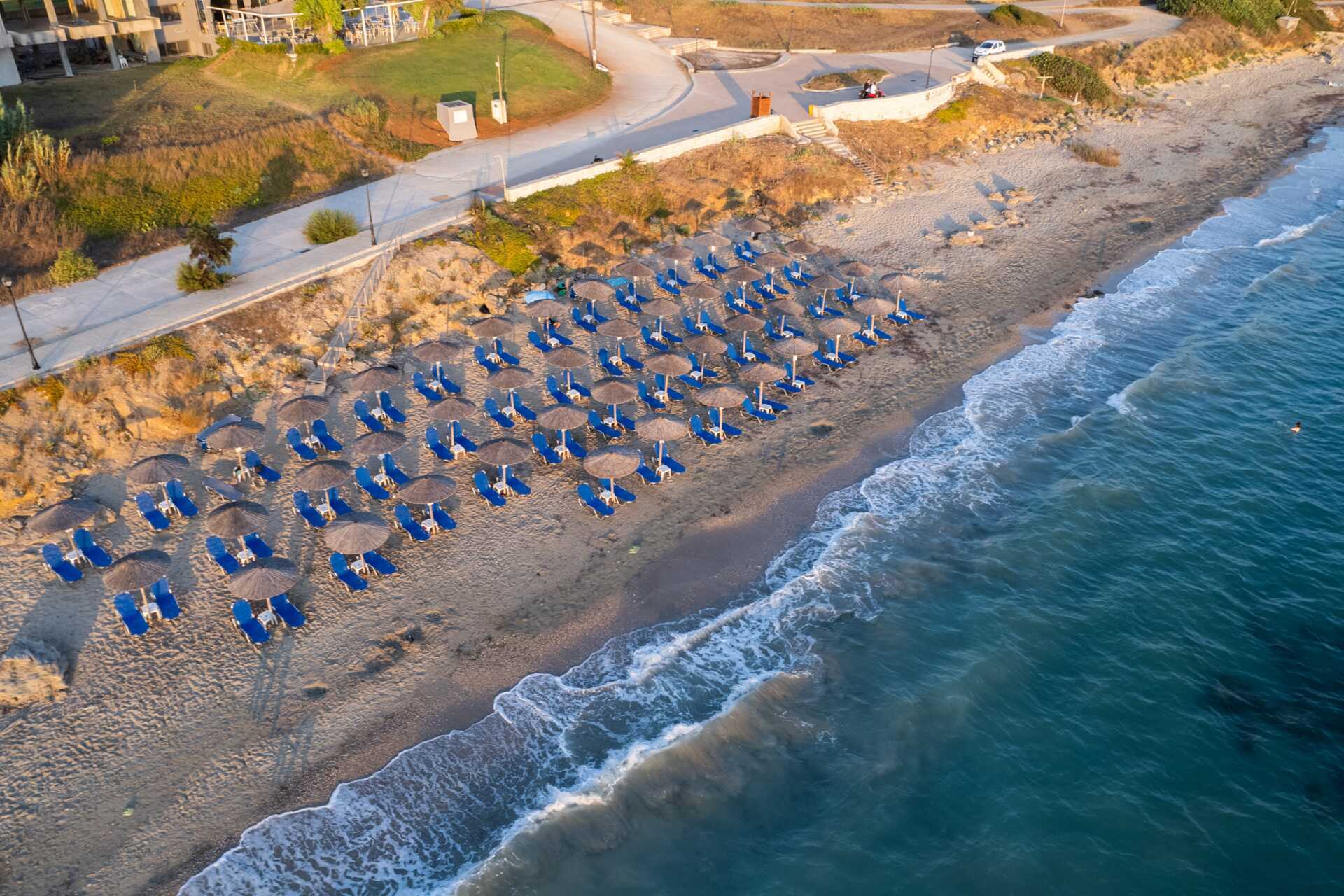 Leilighetene har små, men praktiske kjøkken hvor du kan lage en god frokost før du begir deg ut på deilige dager i solen. Stranden ligger bare noen få meter fra hotellet, hvor det er mulig å låne solsenger og parasoller.