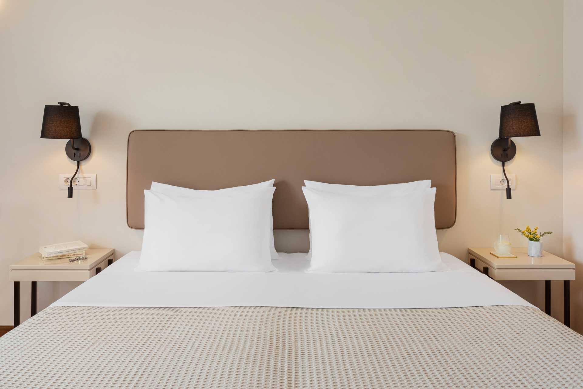 Superiorrom med balkong. En dobbeltseng eller to enkeltsenger. Mulig med ekstrasenger i sovesofa. Wifi, luftkondisjonering og safe inkludert. Kjøleskap. TV. Dusj og wc, hårføner. Rengjøring 7 ggr/uke.