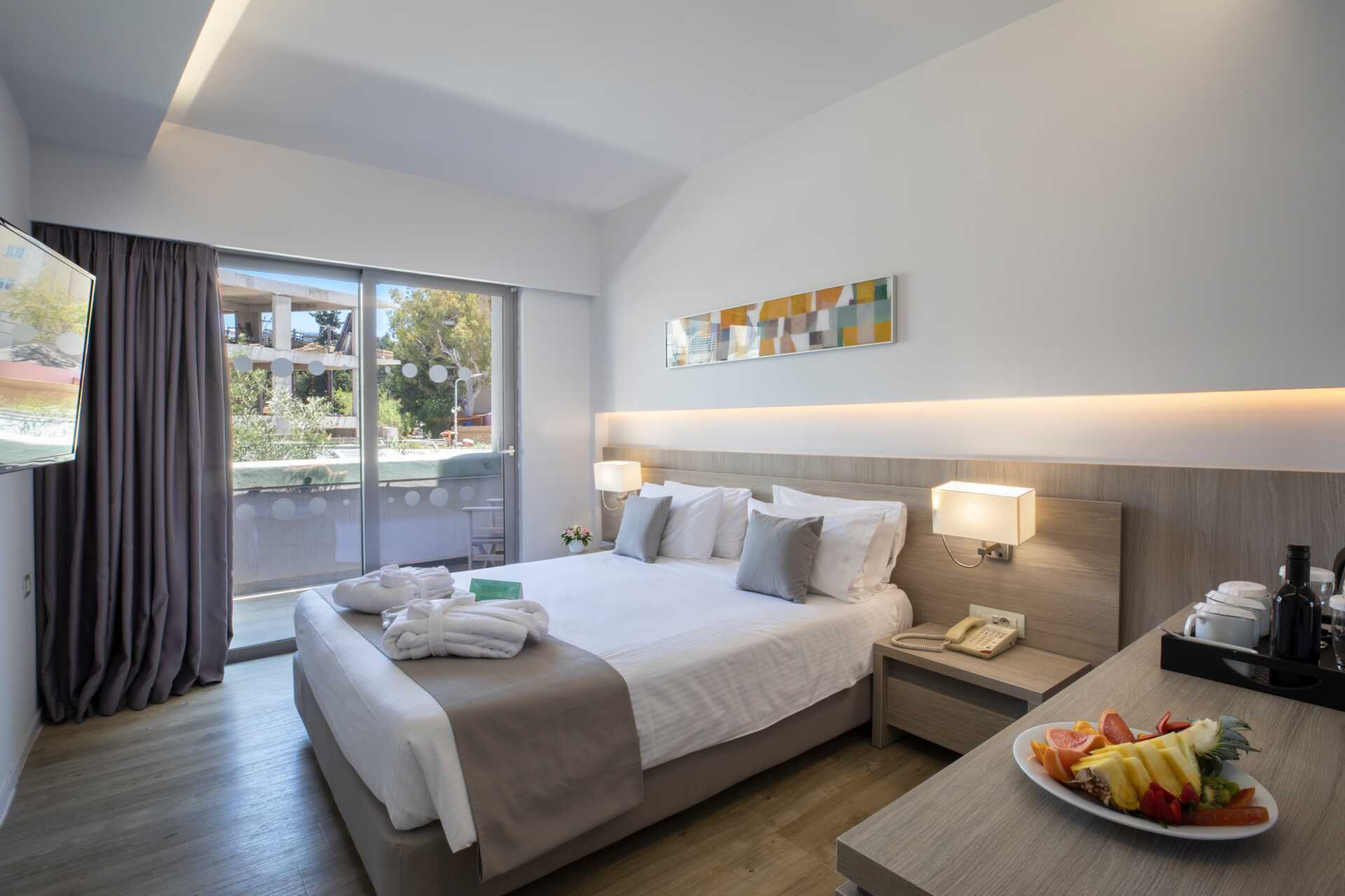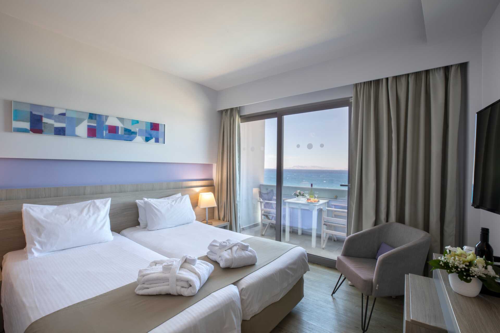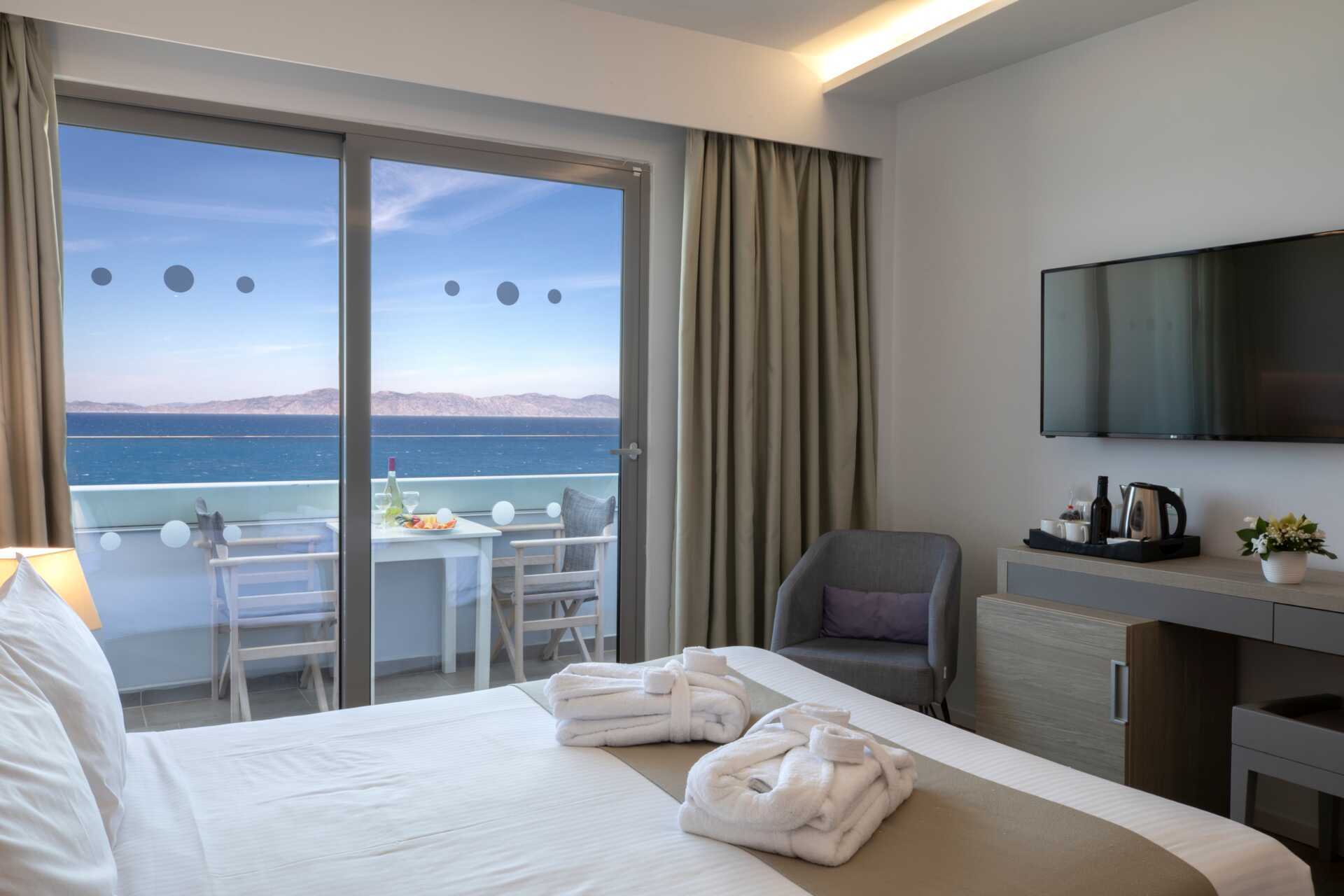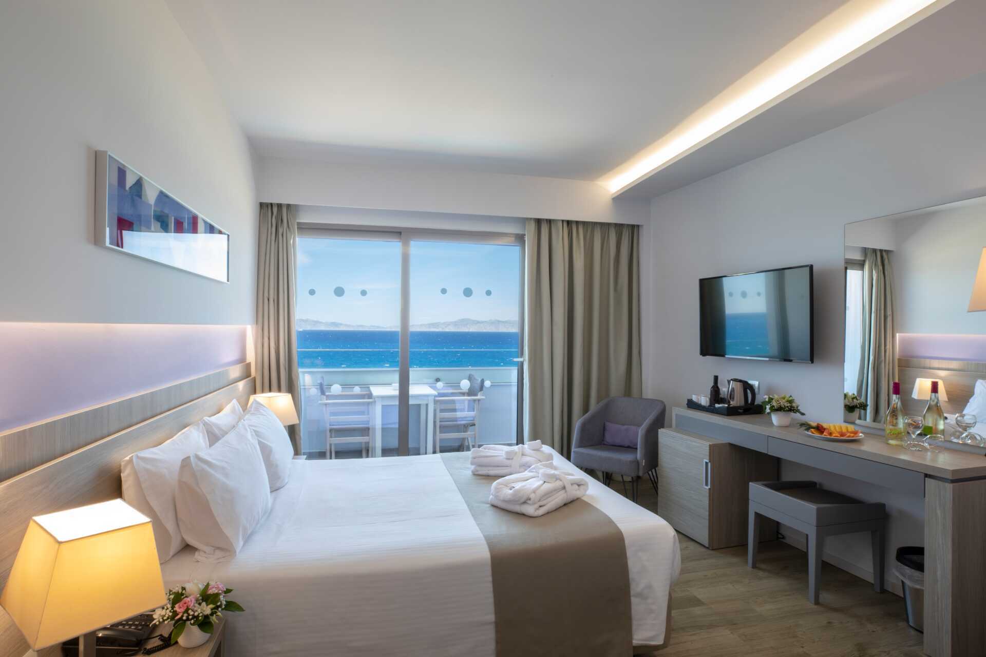 Dobbeltrom med balkong. Noen balkonger med havutsikt og noen med begrenset havutsikt. En dobbeltseng eller to enkeltsenger. Mulig med en ekstraseng i sovesofa. Wifi, luftkondisjonering og safe inkludert. Minibaren på rommet er inkludert, etterfylles daglig med vin, øl, brus, juice og vann. Vannkoker samt kaffe og te. TV. Tøfler. Hårføner. Badekar eller dusj samt wc. Rengjøring 7 ggr/uke.