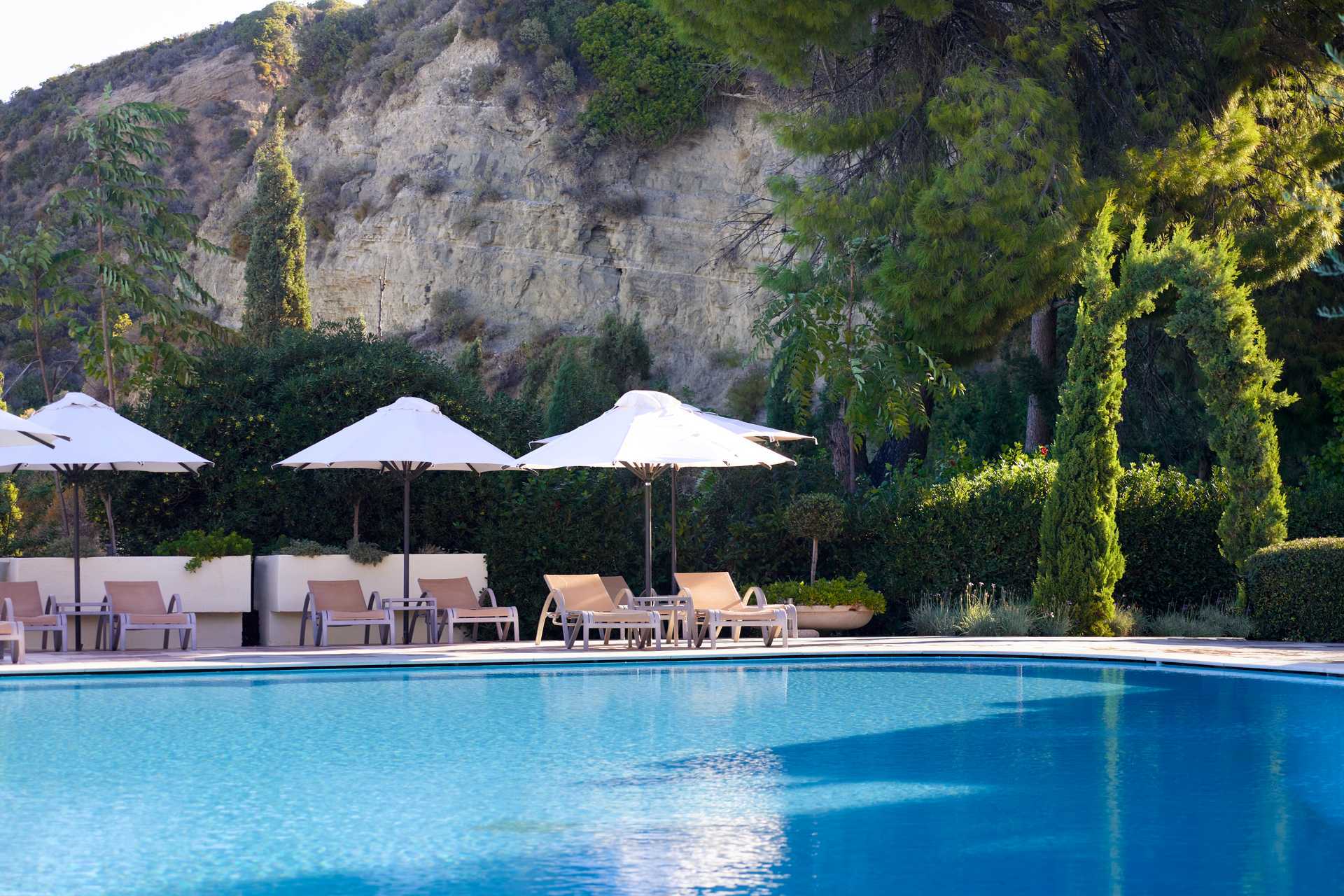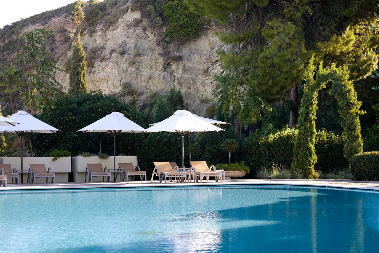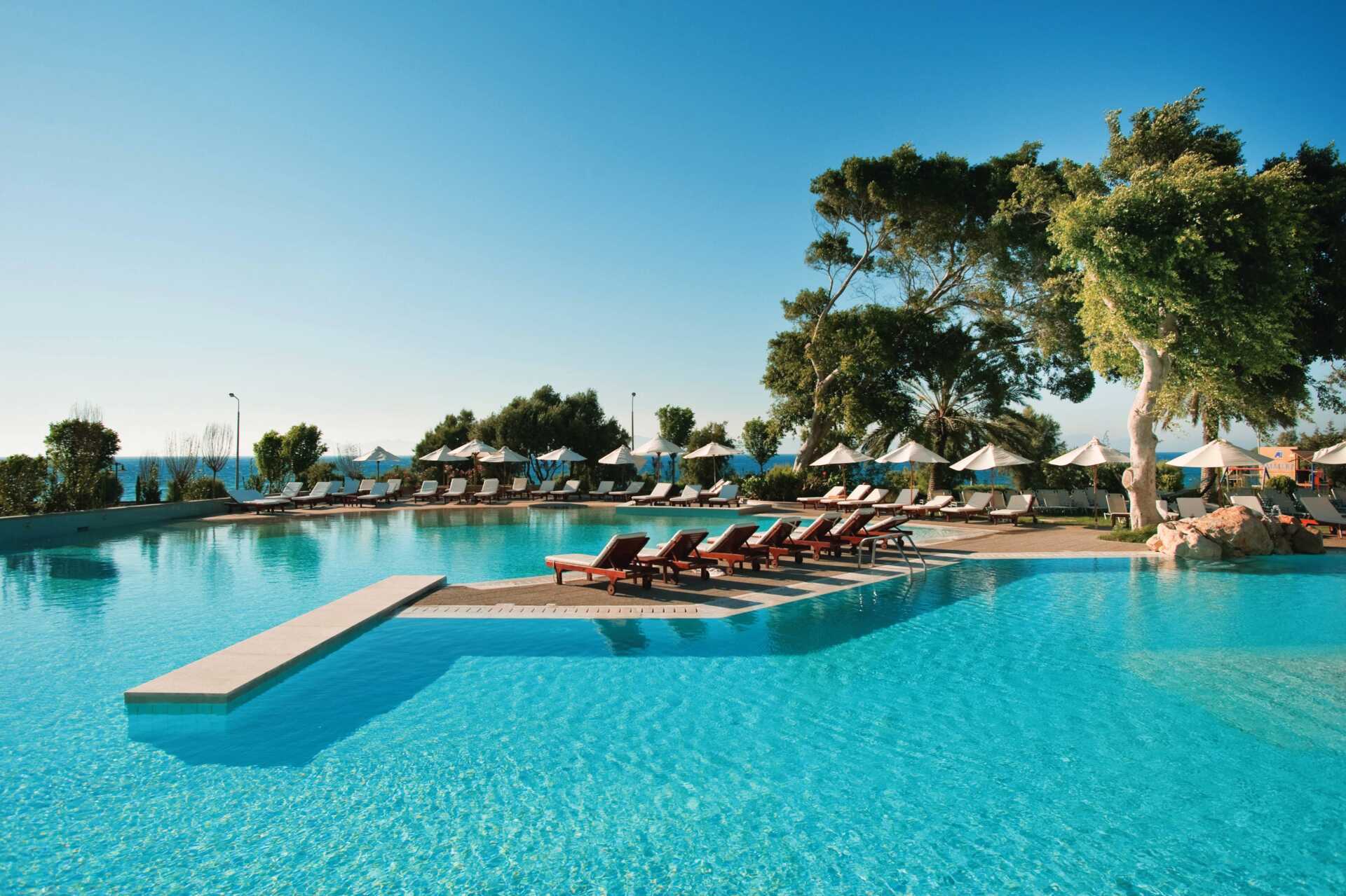 Suite med uteplass med eget basseng og havutsikt. Solsenger på terrassen. En dobbeltseng eller to enkeltsenger. Mulig med en ekstraseng i sovesofa. Wifi, luftkondisjonering og safe inkludert. Kjøleskap. Vannkoker samt kaffe og te. TV. Badekåper og tøfler. Hårføner. Bad med badekar, dusj og wc. Rengjøring 7 ggr/uke. Barn under 2 år regnes inn i maksantallet i rommet.