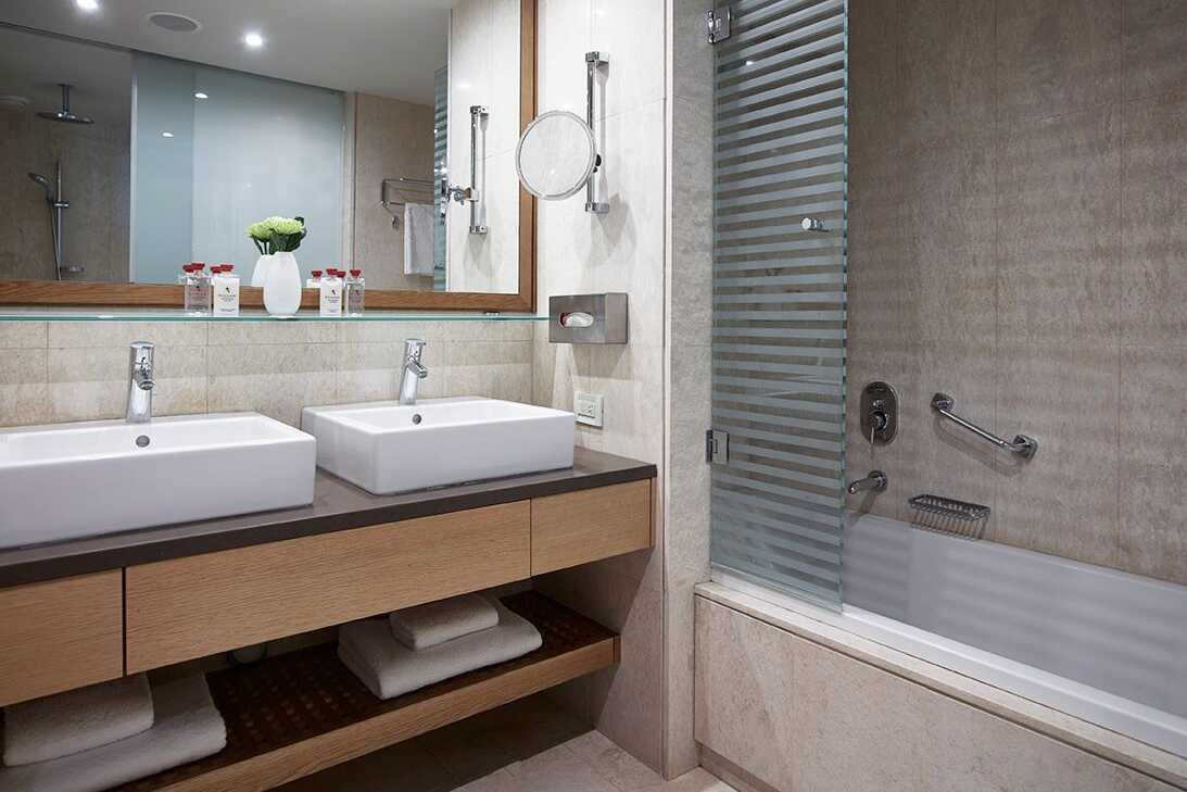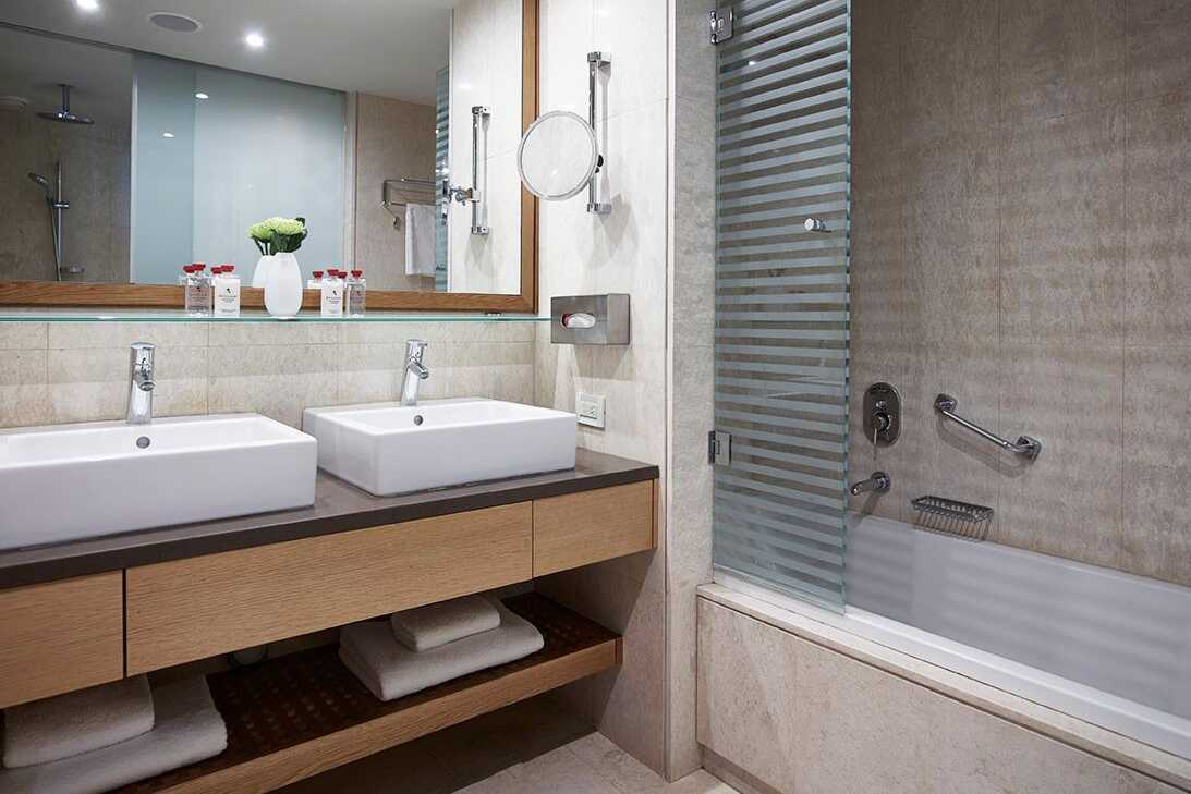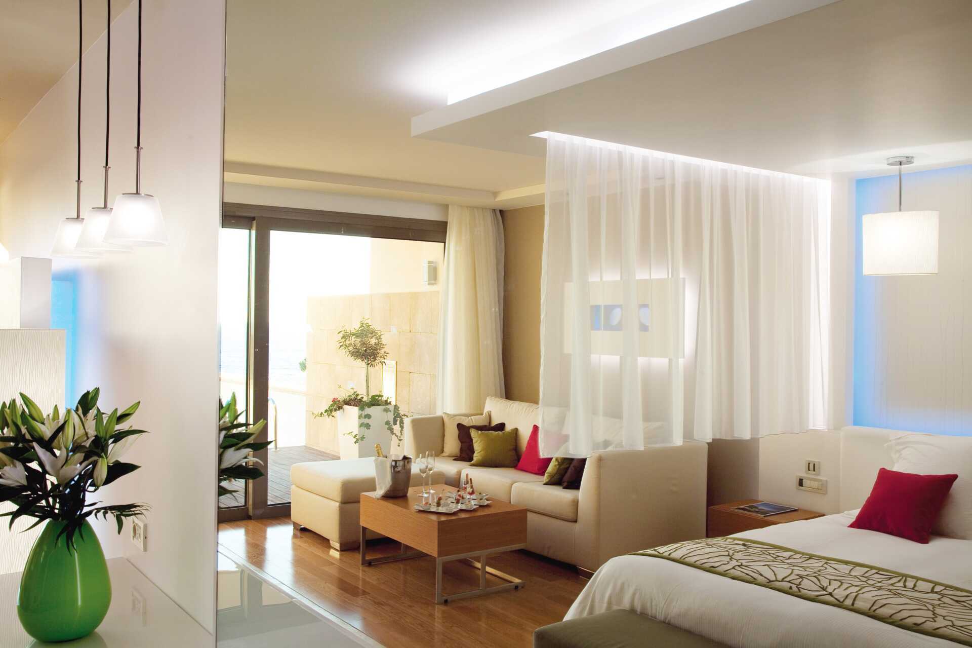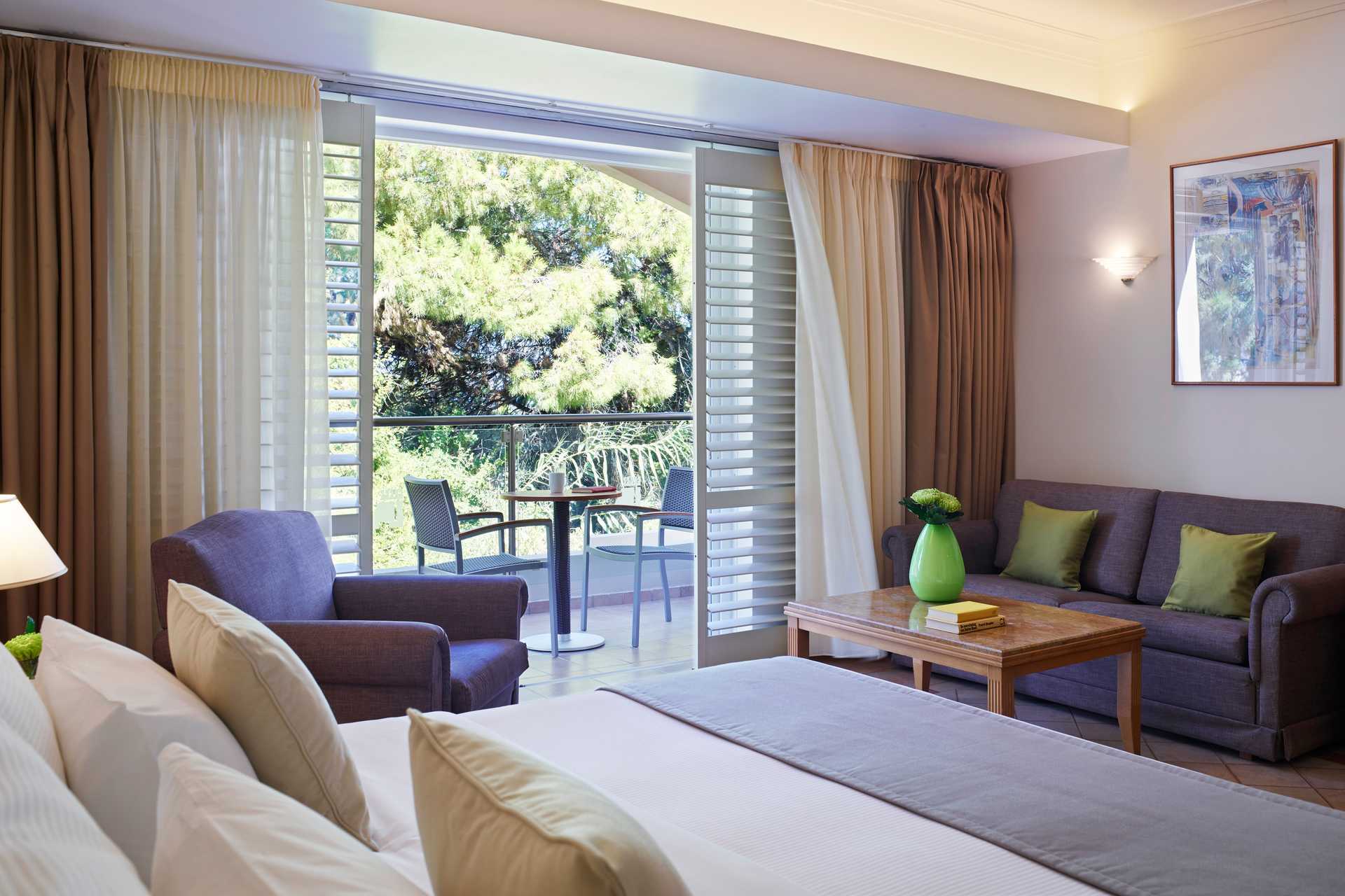 Suite med balkong og havutsikt. En dobbeltseng eller to enkeltsenger. Mulig med en ekstraseng i sovesofa. Wifi, luftkondisjonering og safe inkludert. Kjøleskap. Vannkoker samt kaffe og te. TV. Badekåper og tøfler. Hårføner. Bad med badekar, dusj og wc. Rengjøring 7 ggr/uke. Barn under 2 år regnes inn i maksantallet i rommet.