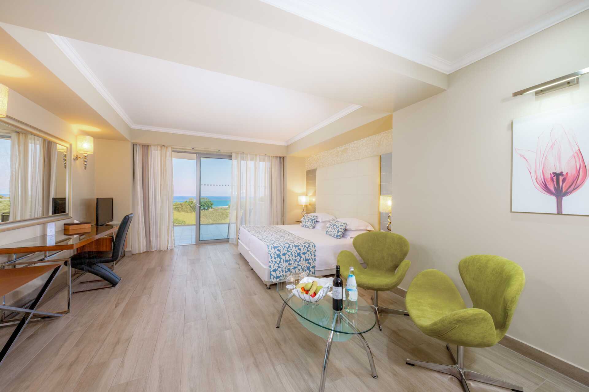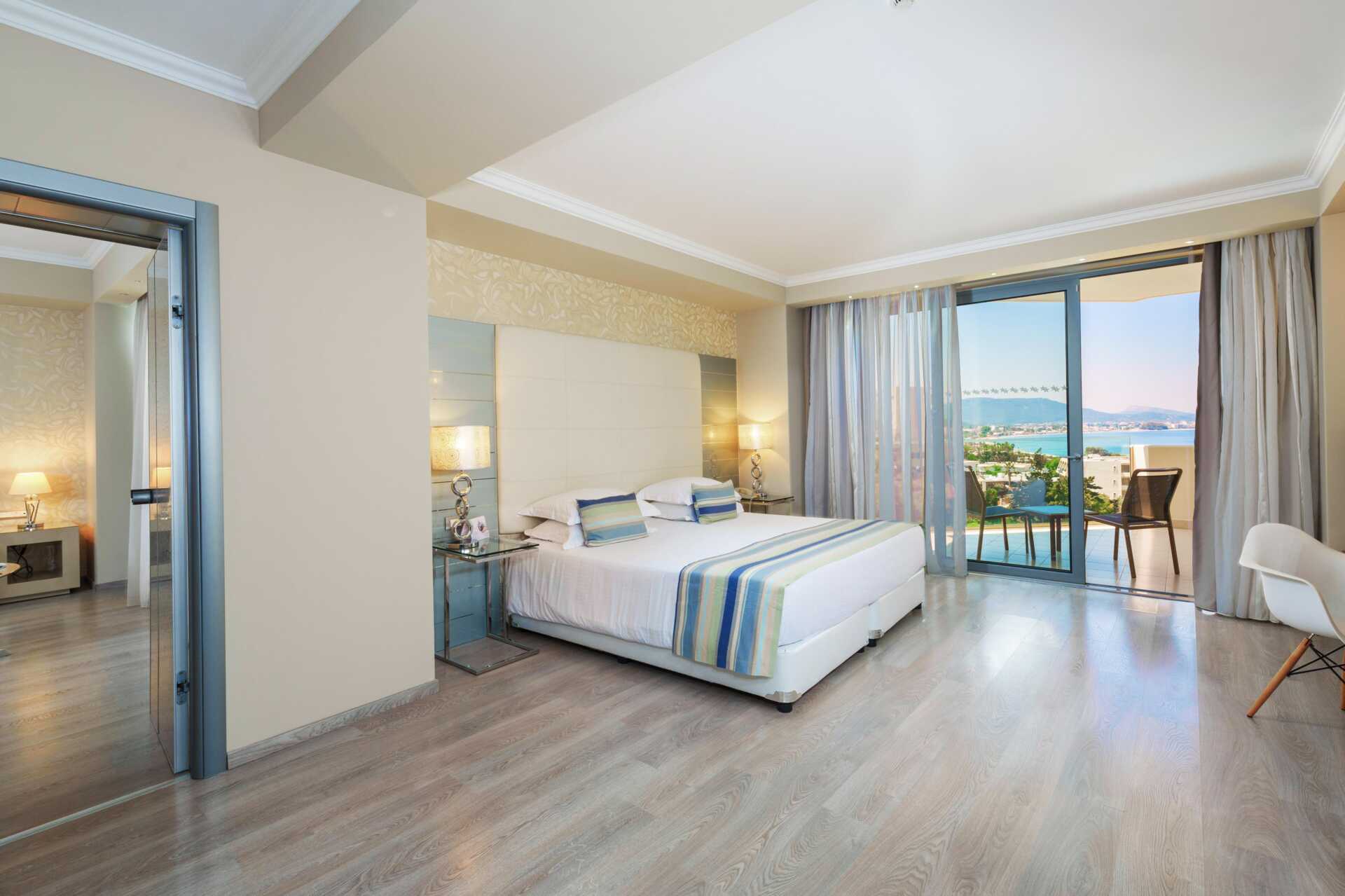 Juniorsuite med balkong og havutsikt. En dobbeltseng eller to enkeltsenger. Mulig med ekstrasenger i to sovesofaer. Nivåforskjeller med noen få trappetrinn kan forekomme i enkelte rom. Wifi, luftkondisjonering og safe inkludert. Minibar. Vannkoker samt kaffe og te. Nespresso kaffemaskin, fire kapsler inkludert per dag. TV. Badekåper og tøfler. Hårføner. Bad med to servanter jacuzzibadekar, dusj og wc. Rengjøring 7 ggr/uke.