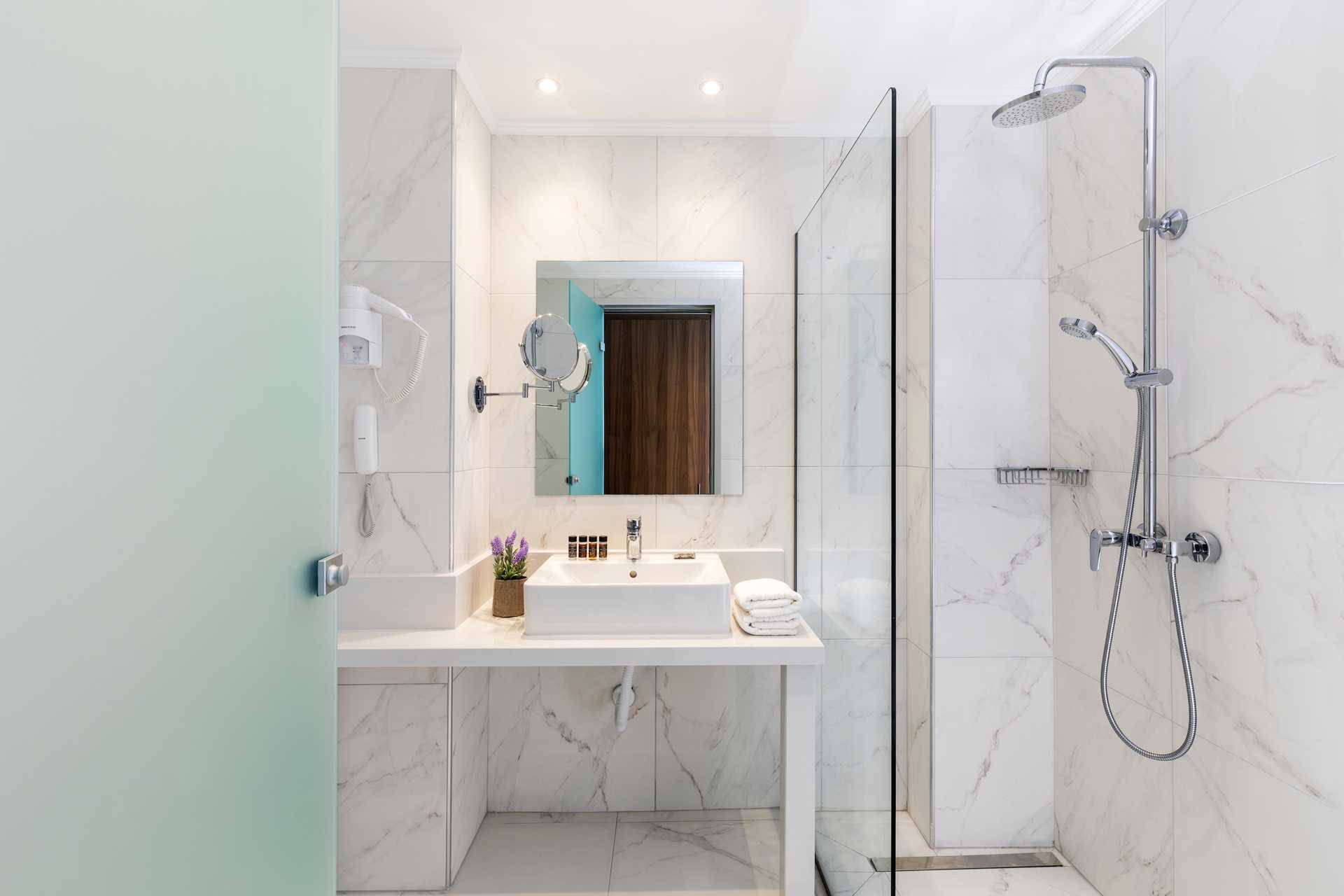 Dobbeltrom med balkong og havutsikt. En dobbeltseng eller to enkeltsenger. Mulig med ekstrasenger i feltseng. Wifi og luftkondisjonering er inkludert. Luftkondisjonering i juni-september. Safe mot avgift. Kjøleskap. Vannkoker samt kaffe og te. TV. Hårføner. Baderom med badekar og wc. Rengjøring 6 ggr/uke.