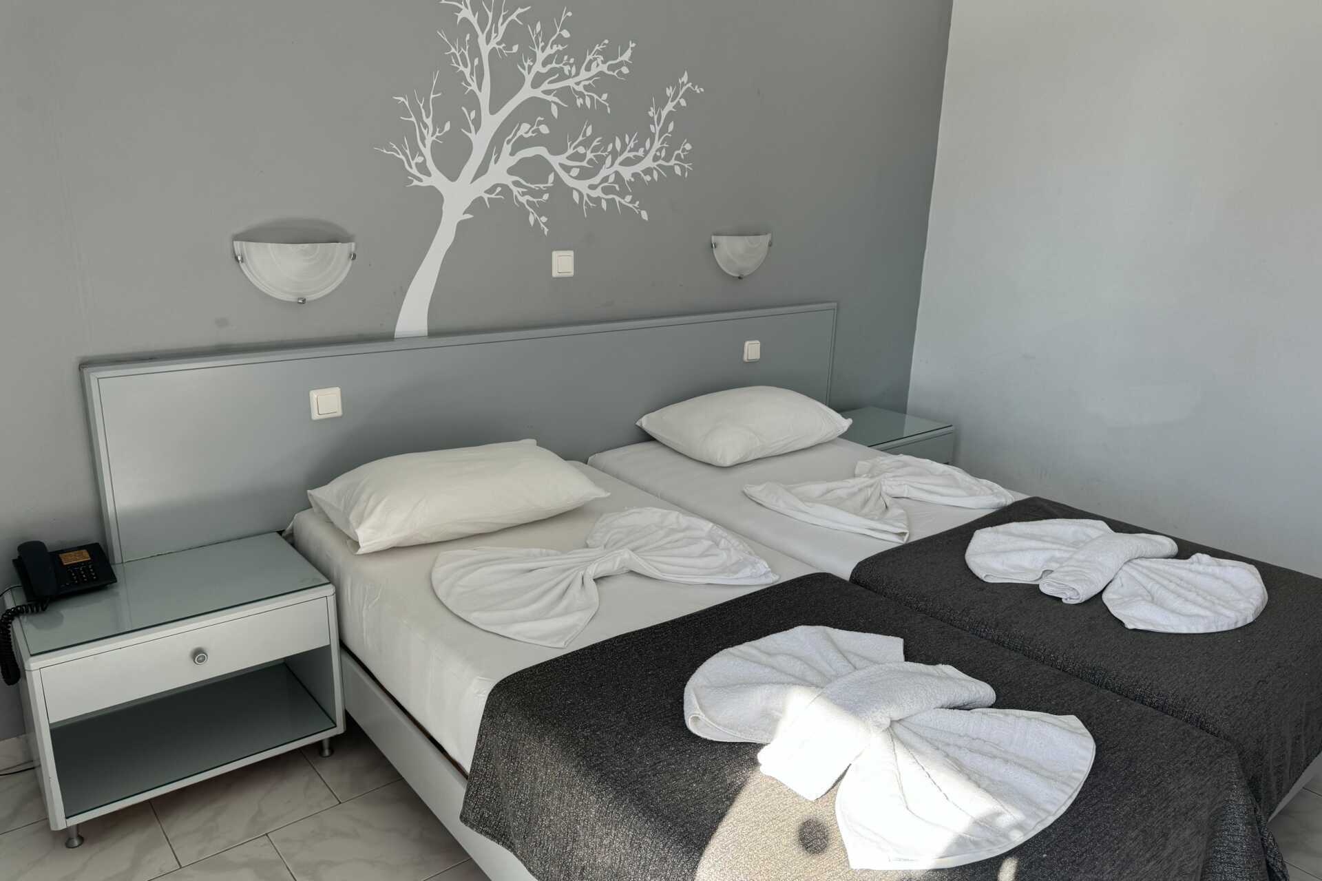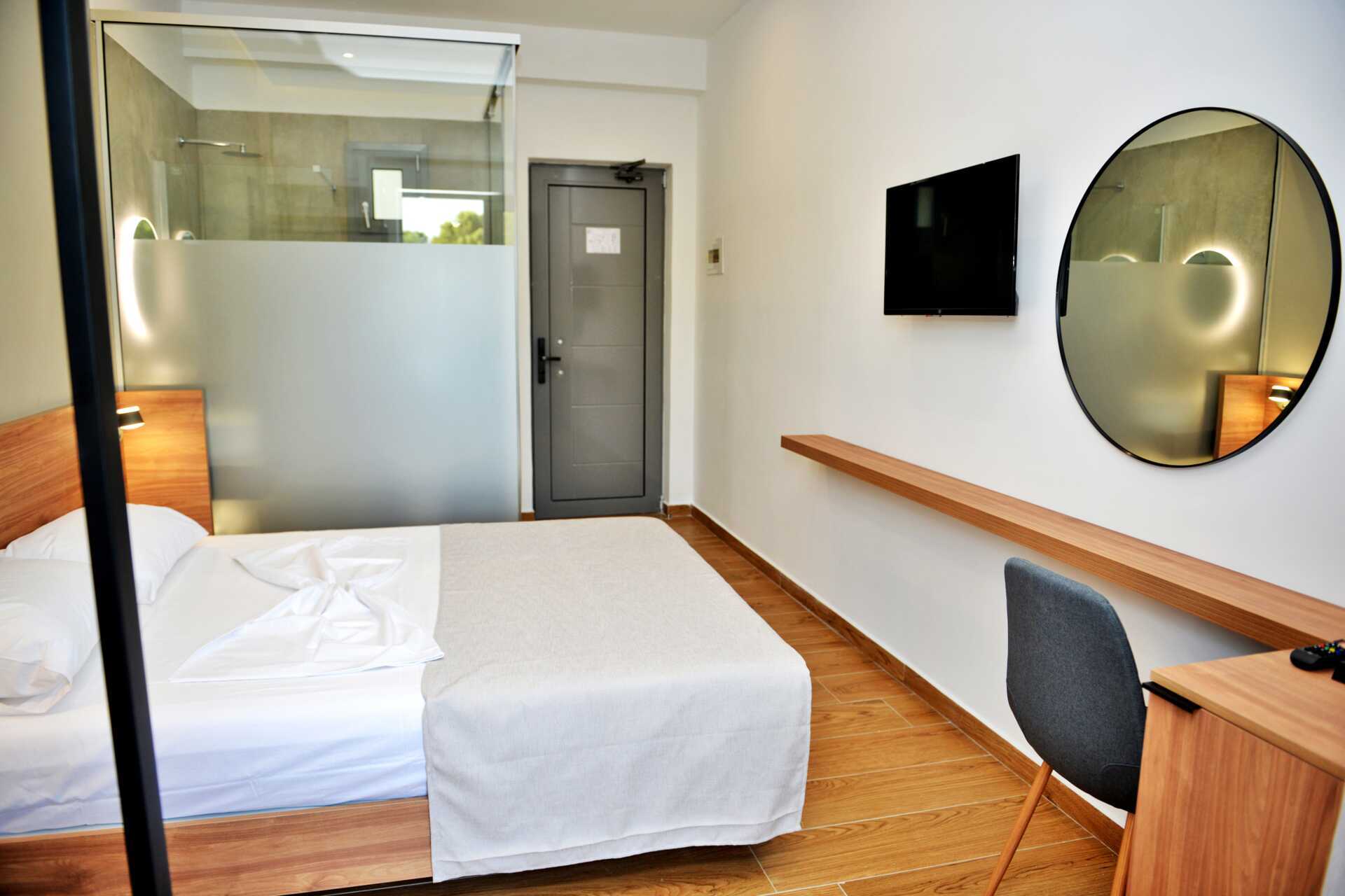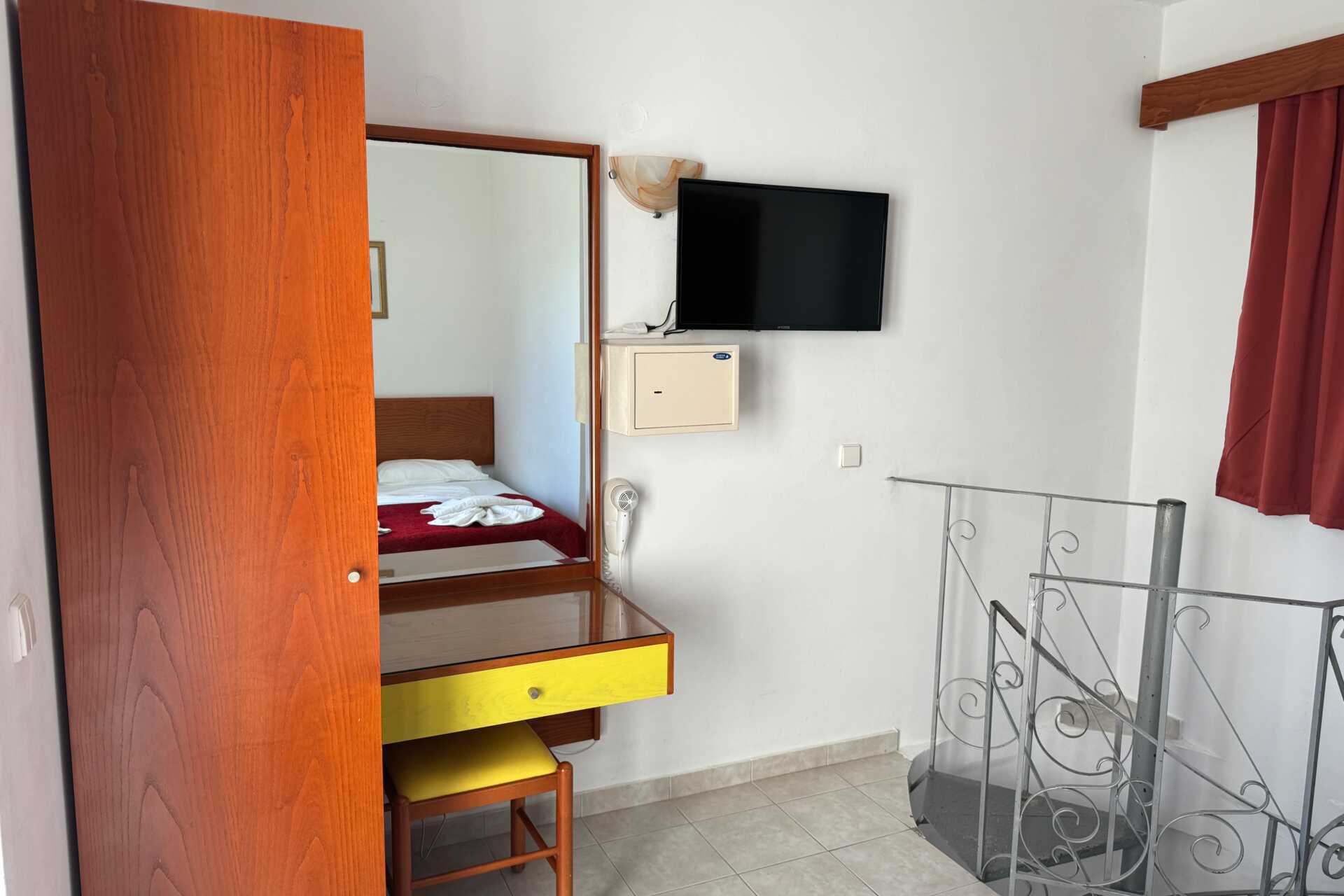 Toromsleilighet med balkong og bassengutsikt. Et soverom og stue med minikjøkken. Noen av leilighetene har frostet glassvegg som skille mellom rommene, veggen går ikke helt i tak. To enkeltsenger eller en dobbeltseng. Mulig med ekstrasenger i to sovesofaer. Minikjøkken med kokeplater, kjøleskap, vannkoker, kaffetrakter og enkelt kjøkkenutstyr. Wifi, luftkondisjonering og safe inkludert. TV. Hårføner. Badekar eller dusj samt wc. Rengjøring 5 ggr/uke.