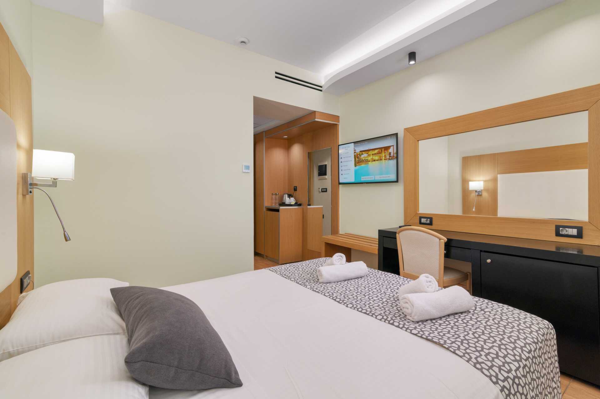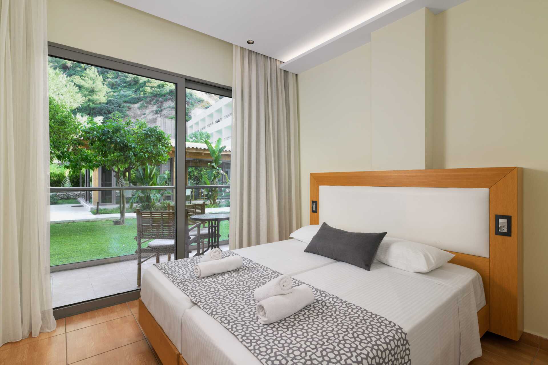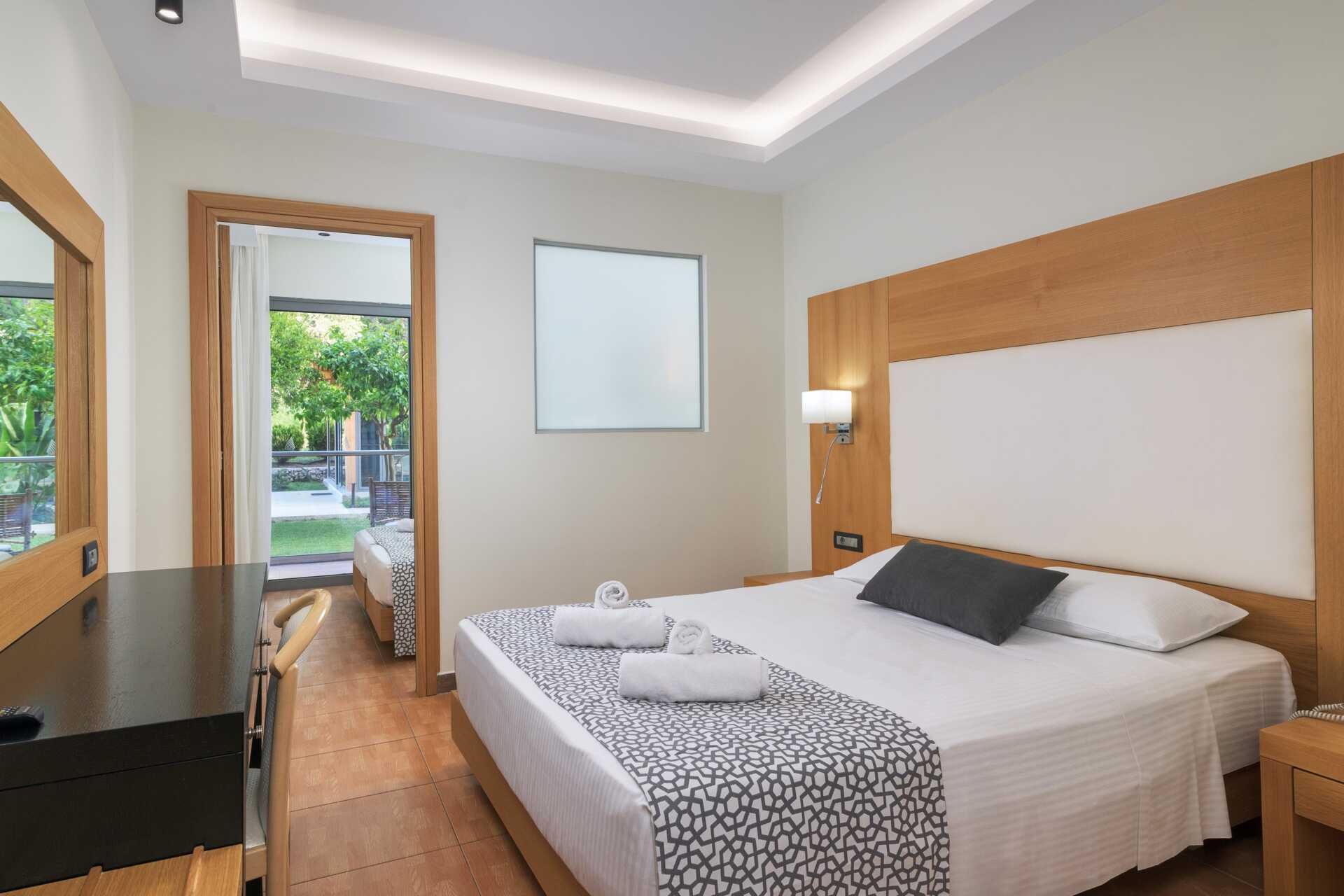 Superiorrom med balkong eller terrasse, noen med havutsikt. To enkeltsenger. Mulig med ekstraseng for en tredje person. Wifi, safe og sentralstyrt luftkondisjonering i perioden 15.4-1.11 inkludert. Kjøleskap. Vannkoker samt kaffe og te. Bad med dusj og wc. Rengjøring 7 ggr/uke. Barn under 2 år regnes inn i maksantallet i rommet.