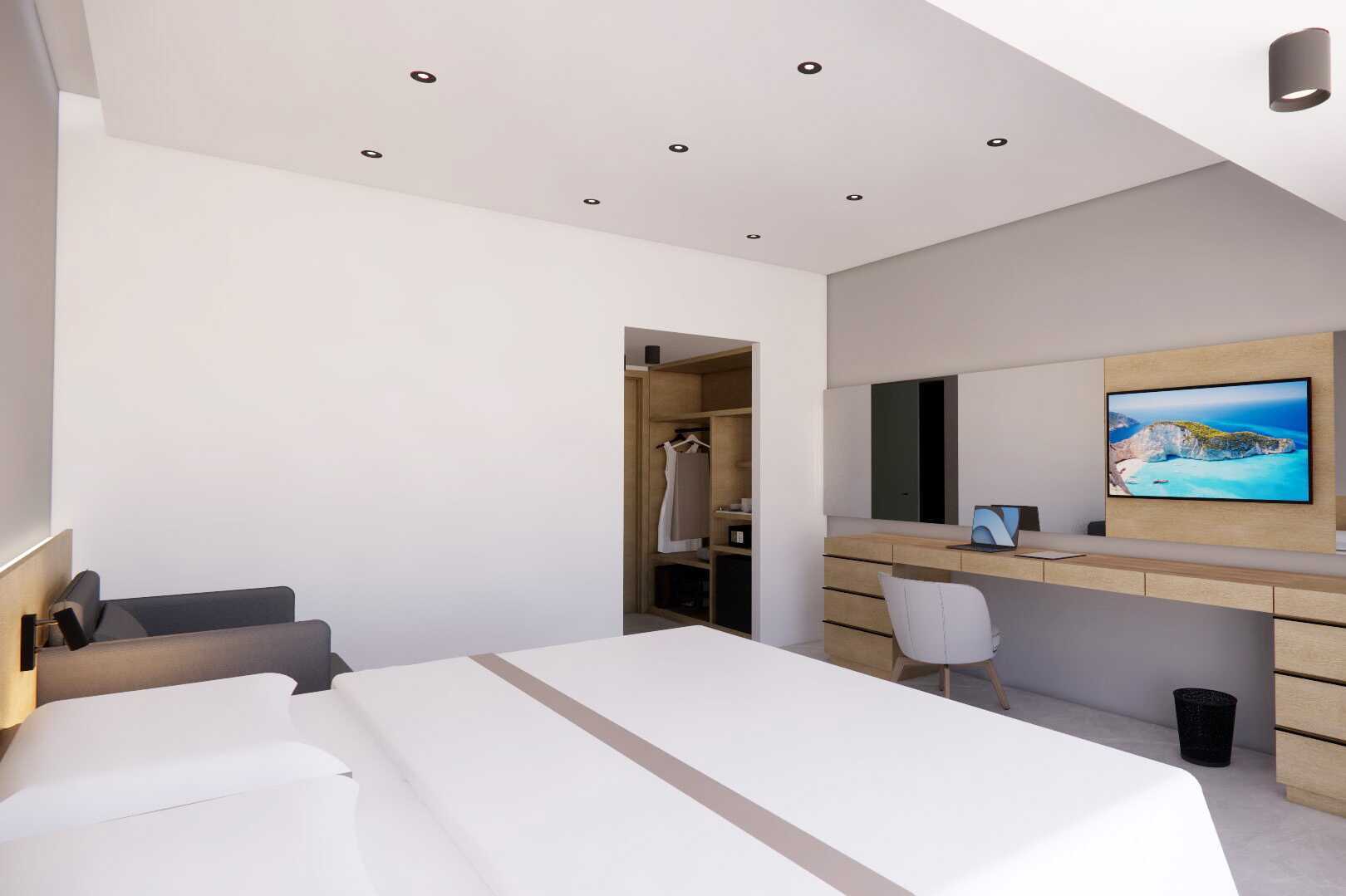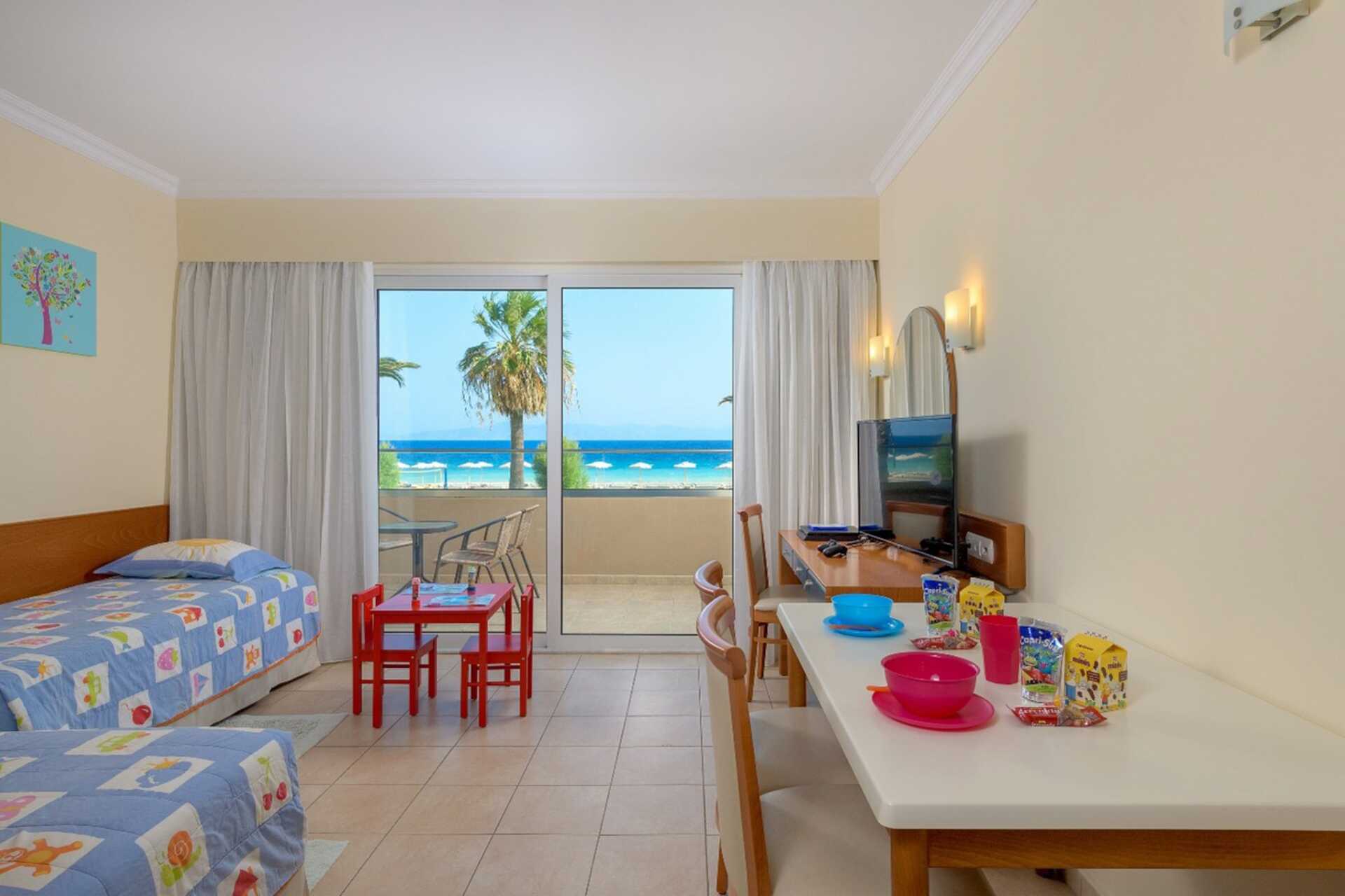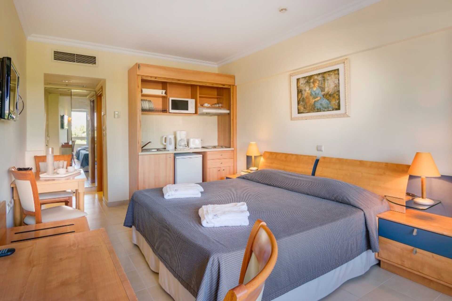 Toromsleilighet med balkong, noen med havutsikt. Leilighetene ligger i hotelldelene Beachfront Wing, Garden Wing, Zeus og Hera. Et soverom og en stue med minikjøkken. To enkeltsenger. Mulig med en ekstrasenger i to sovesofaer eller to enkeltsenger. Minikjøkken med kjøleskap, kokeplater, mikrobølgeovn, kaffetrakter, brødrister, vannkoker og grunnleggende kjøkkenutstyr. Wifi og luftkondisjonering inkludert. Luftkondisjoneringen er sentralstyrt døgnet rundt av hotellet fra juni til september. Safe mot avgift. TV. Badekåper. Hårføner. Badekar og wc. Rengjøring 7 ggr/uke. Barn under 2 år regnes inn i maksantallet i rommet.