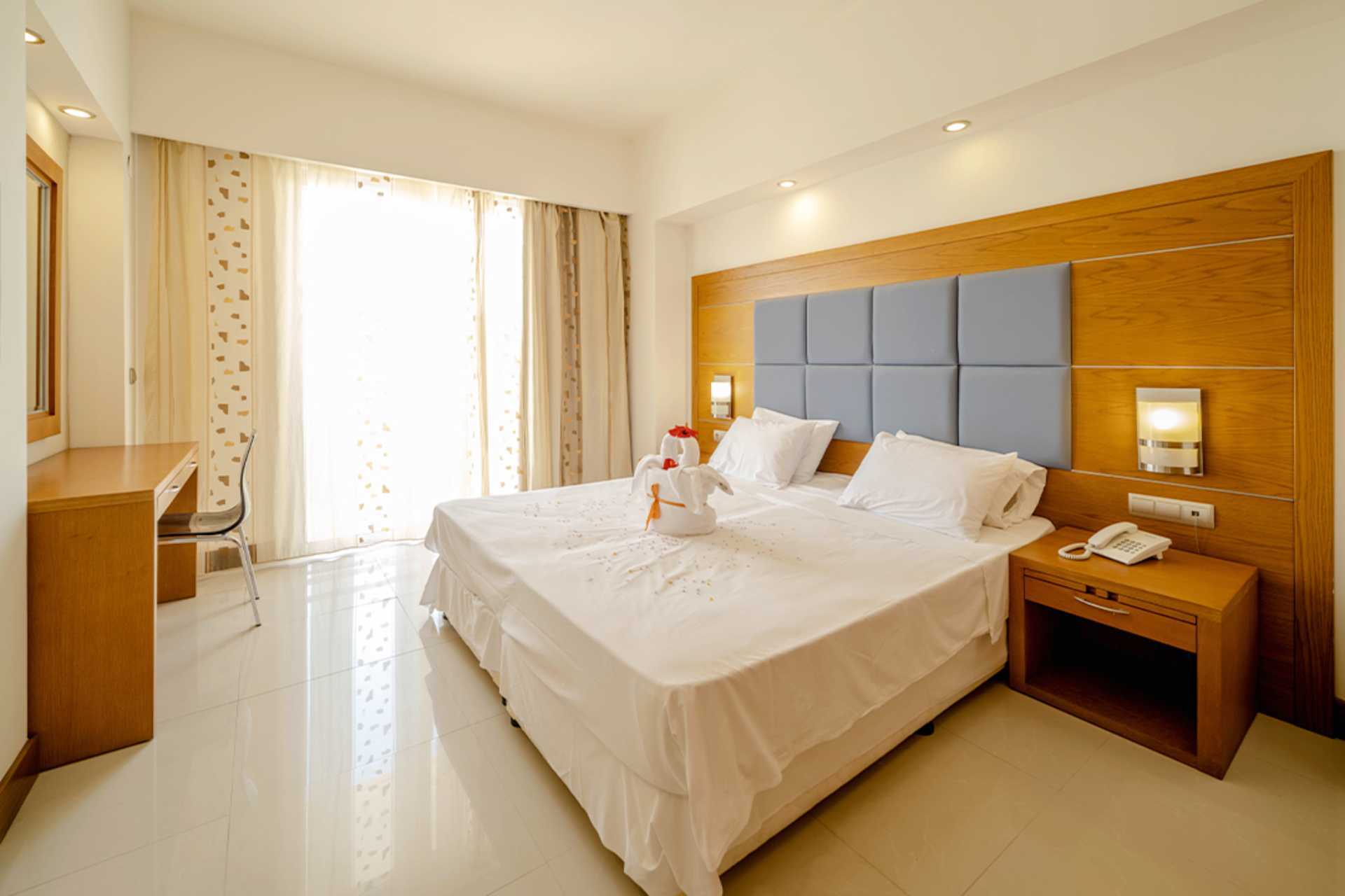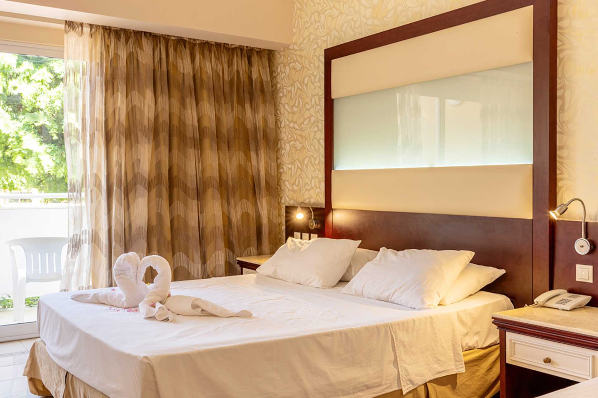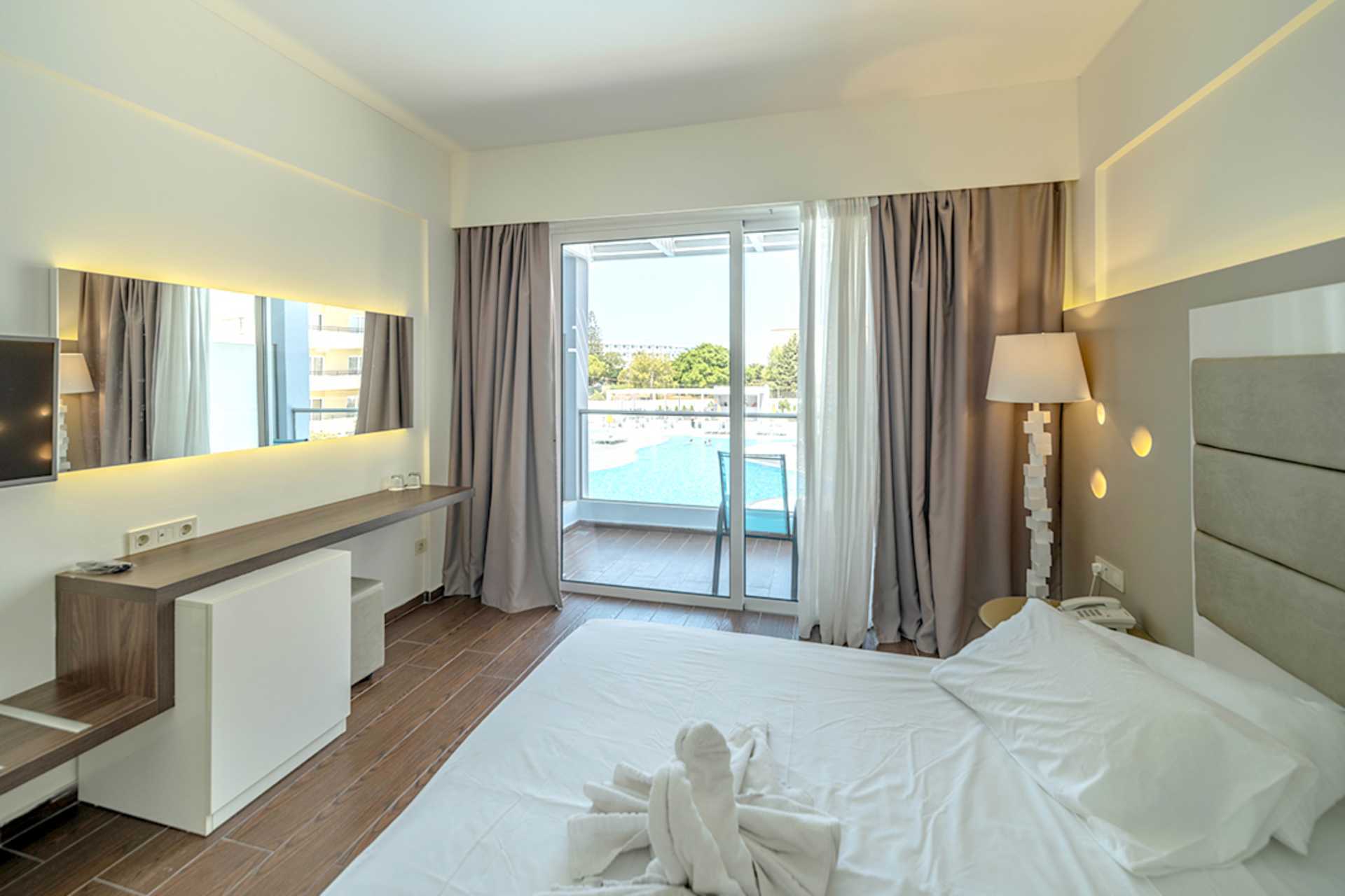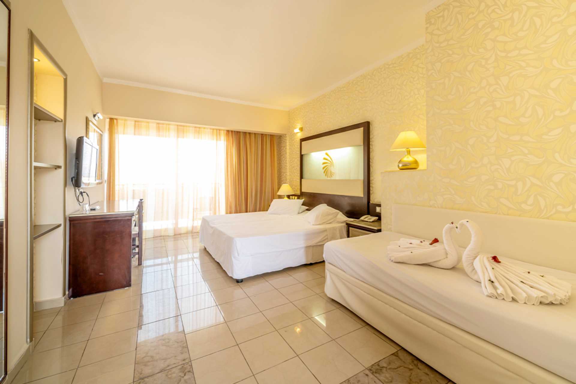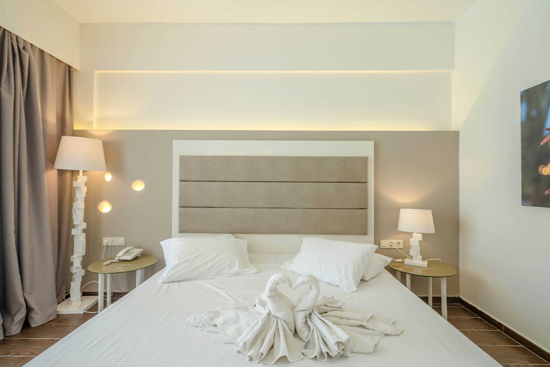 Familierom med balkong, noen med havutsikt eller bassengutsikt. Et soverom med dobbeltseng eller to enkeltsenger. Rommene med balkong og balkong med havutsikt (cirka 45 kvm) har stue med mulighet for ekstraseng på sovesofa. Rommene med bassengutsikt (36 kvm) har to sovesofaer i en soveromsdel som er atskilt fra soverommet med skyvedører. For å nå rommene med bassengutsikt må man krysse en liten vei. Wifi, luftkondisjonering og safe inkludert. Luftkondisjonering er tilgjengelig fra 1. juni til 30. september. Kjøleskap. TV. Hårføner. Badekar eller dusj samt wc. Rengjøring 7 ggr/uke.