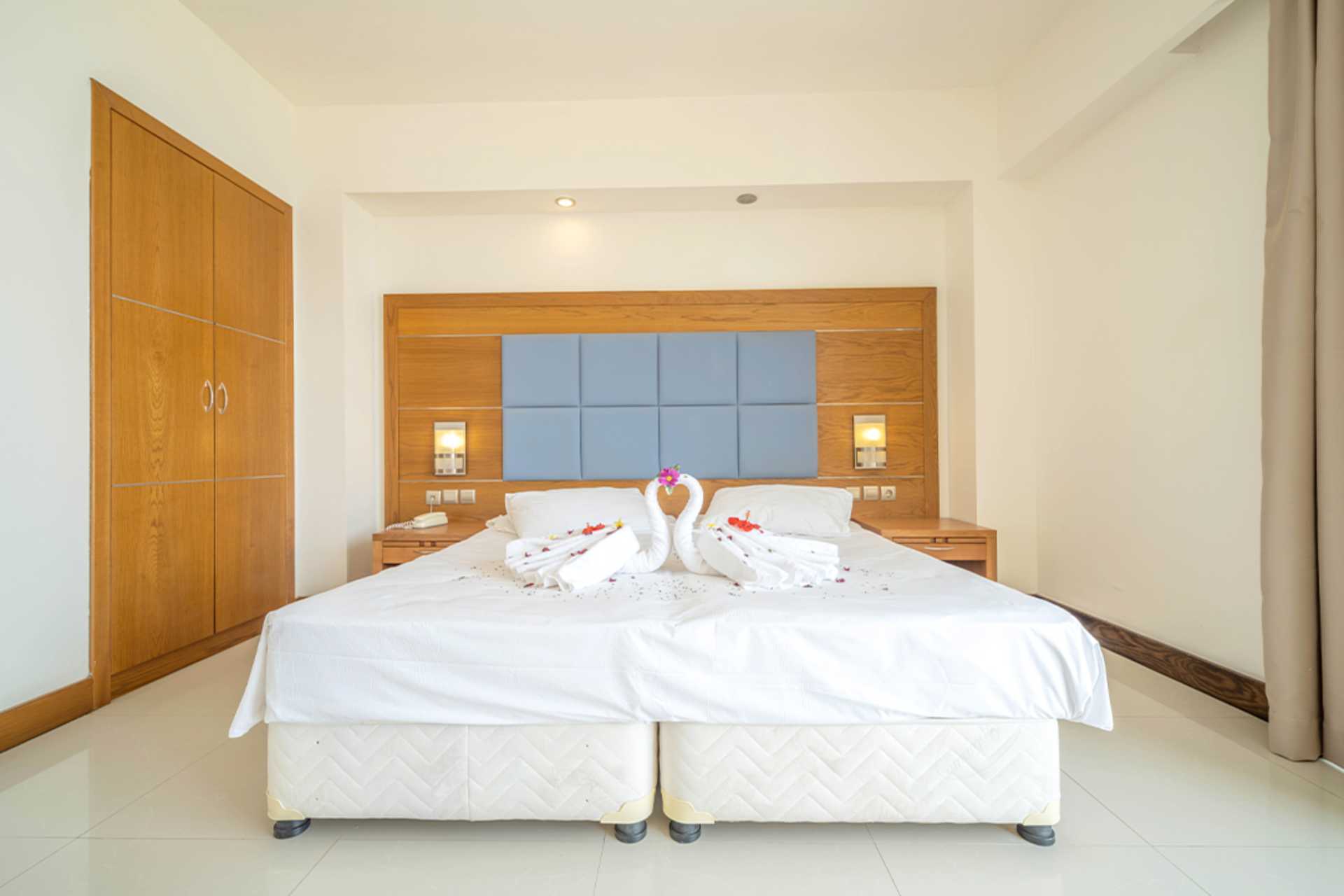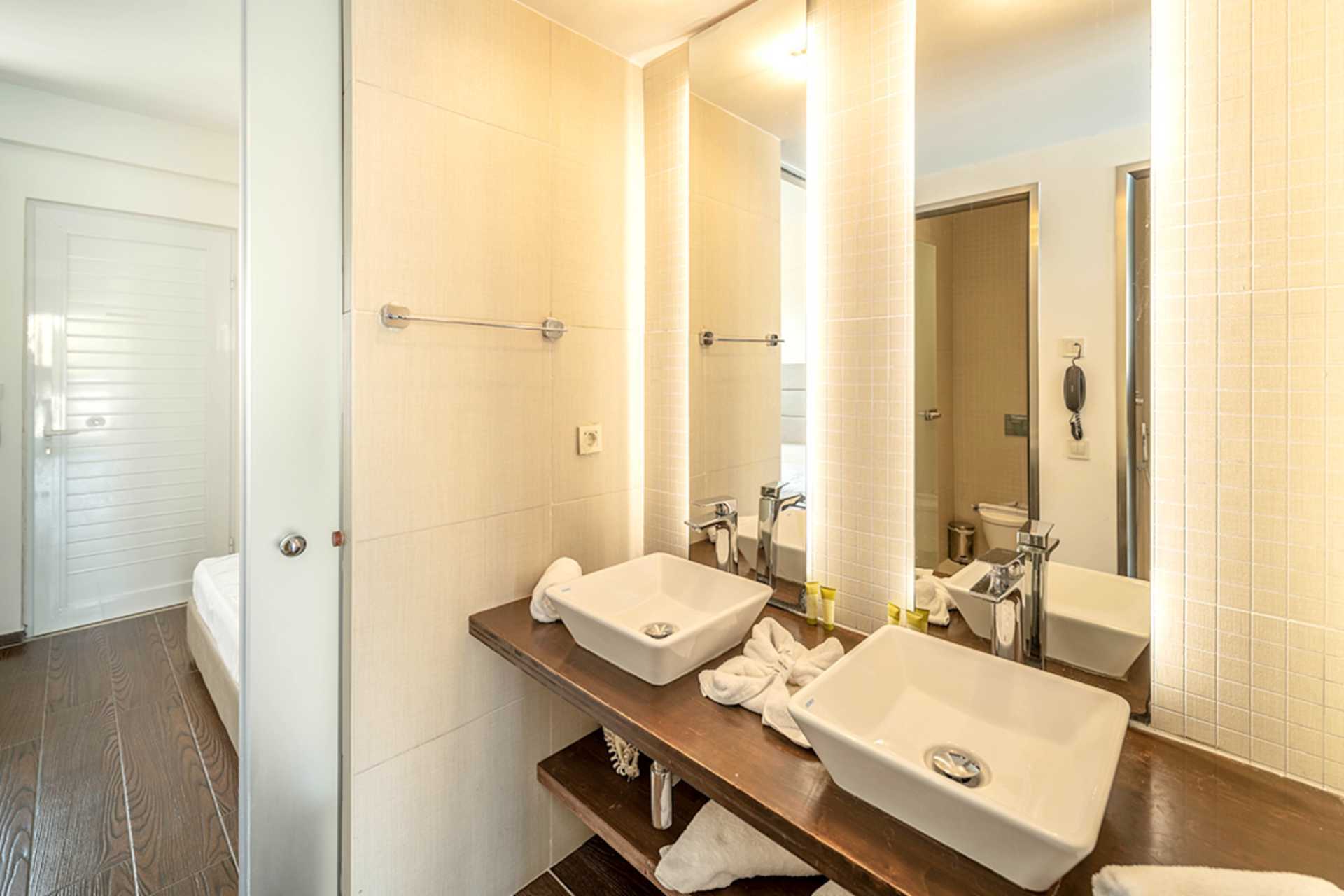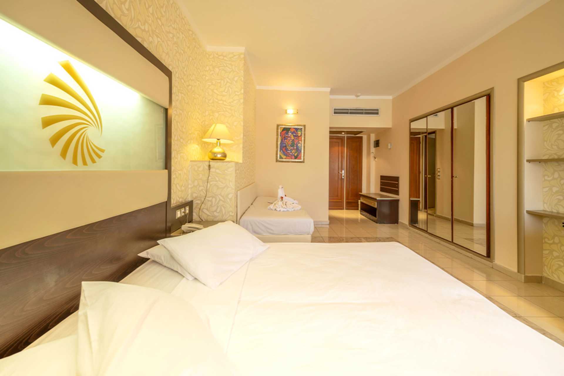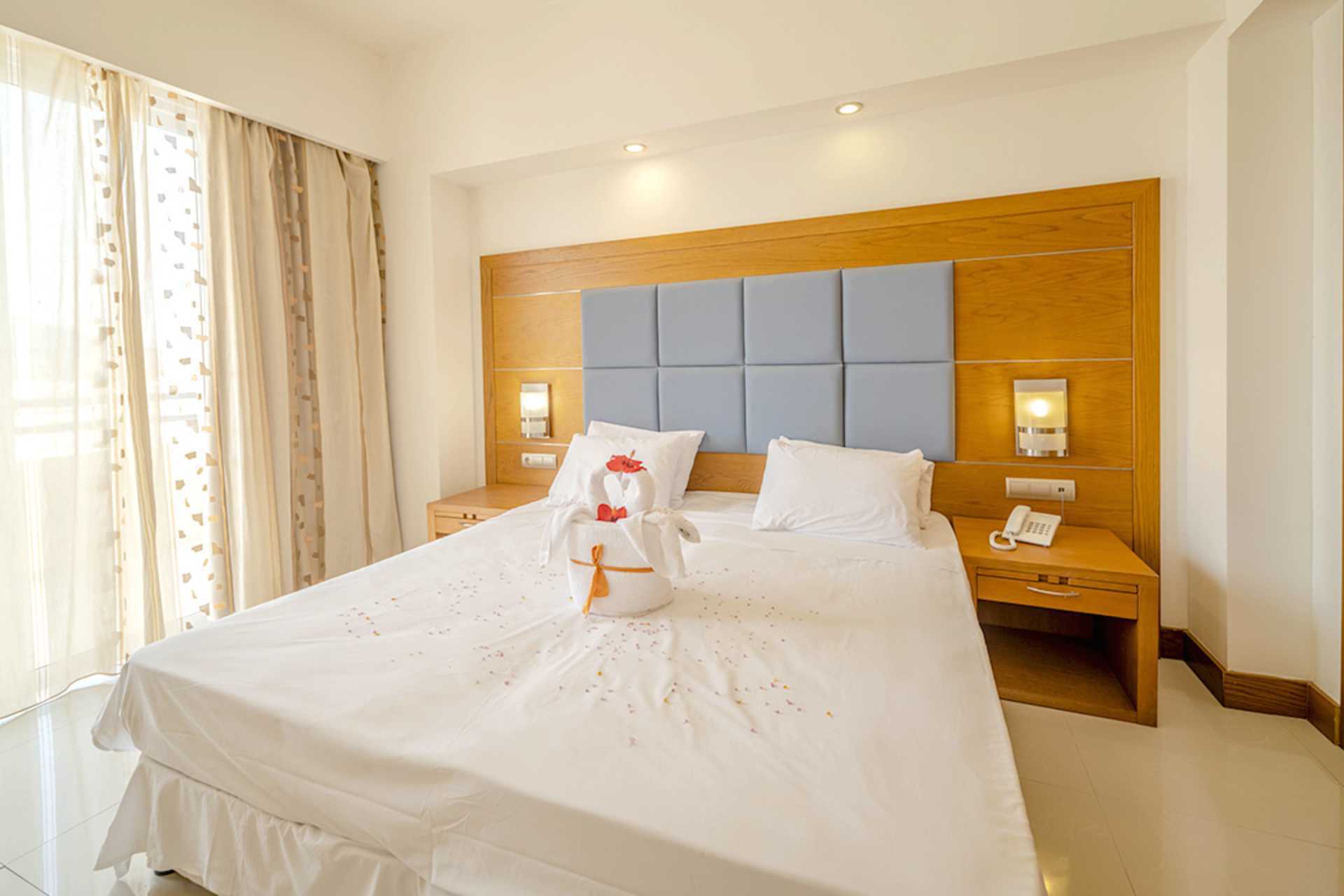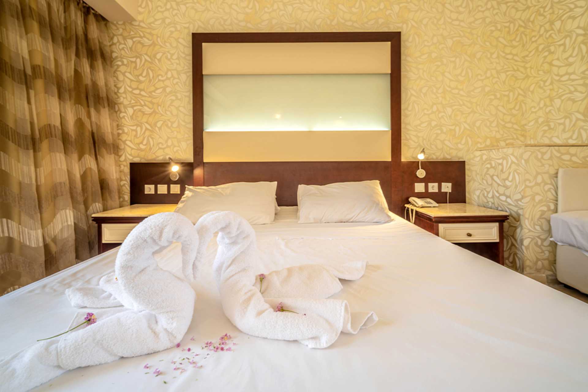 Familierom med balkong, noen med havutsikt eller bassengutsikt. Et soverom med dobbeltseng eller to enkeltsenger. Rommene med balkong og balkong med havutsikt (cirka 45 kvm) har stue med mulighet for ekstraseng på sovesofa. Rommene med bassengutsikt (36 kvm) har to sovesofaer i en soveromsdel som er atskilt fra soverommet med skyvedører. For å nå rommene med bassengutsikt må man krysse en liten vei. Wifi, luftkondisjonering og safe inkludert. Luftkondisjonering er tilgjengelig fra 1. juni til 30. september. Kjøleskap. TV. Hårføner. Badekar eller dusj samt wc. Rengjøring 7 ggr/uke.