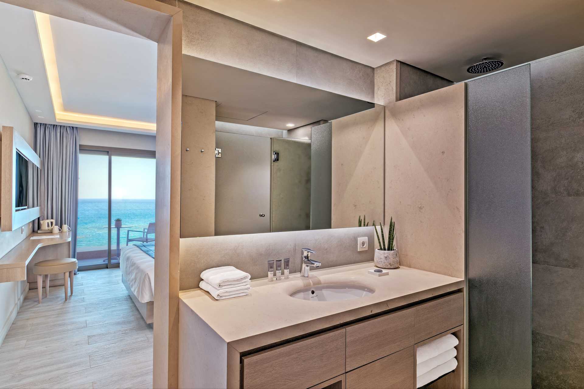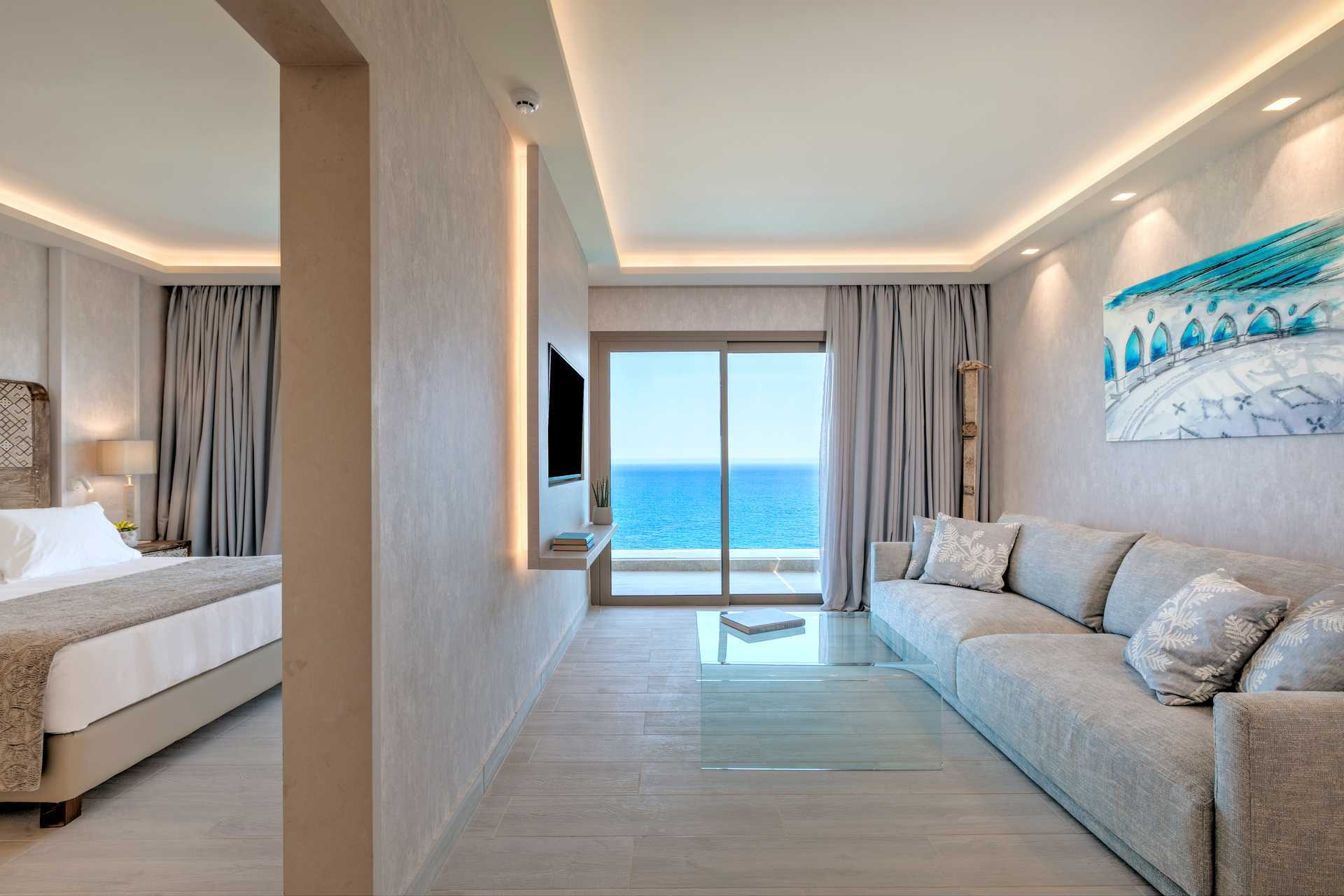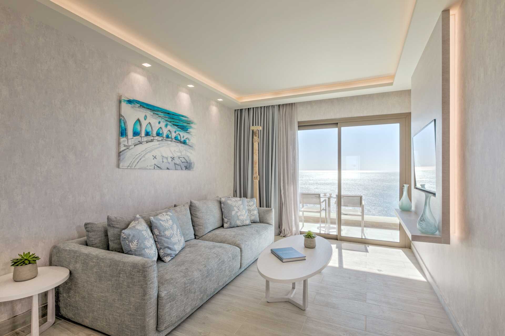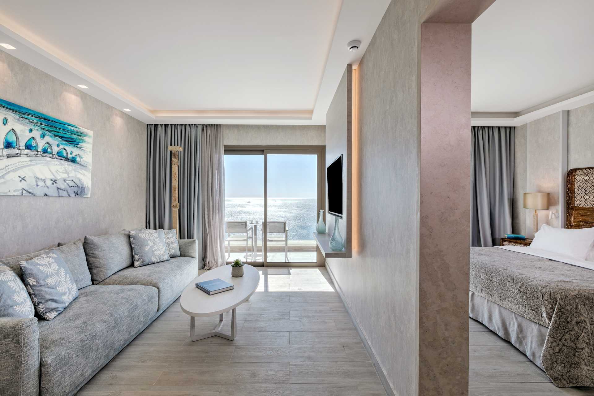 Suite med balkong eller terrasse og havutsikt. Suiten består av et soverom og en stue. En dobbeltseng. Wifi, luftkondisjonering og safe inkludert. Kjøleskap. Vannkoker samt kaffe og te. Nespresso kaffemaskin, kapsler inkludert. TV. Walk-in-closet. Badekåper og tøfler Hårføner. Badekar, separat dusj og wc. Rengjøring 7 ggr/uke.