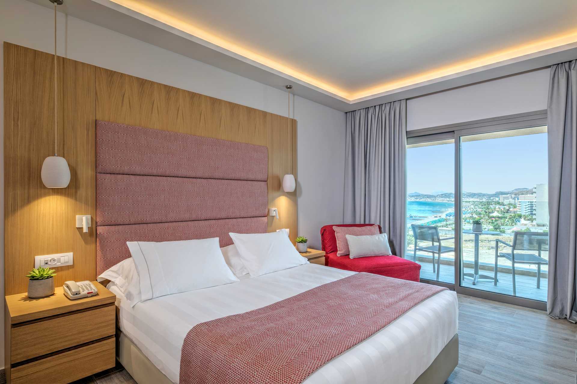 Deluxerom med balkong eller terrasse og havutsikt. En dobbeltseng. Mulig med en ekstraseng i sovesofa. Wifi, luftkondisjonering og safe inkludert. Kjøleskap. Vannkoker samt kaffe og te. TV. Badekåper og tøfler Hårføner. Badekar og wc. Rengjøring 7 ggr/uke.