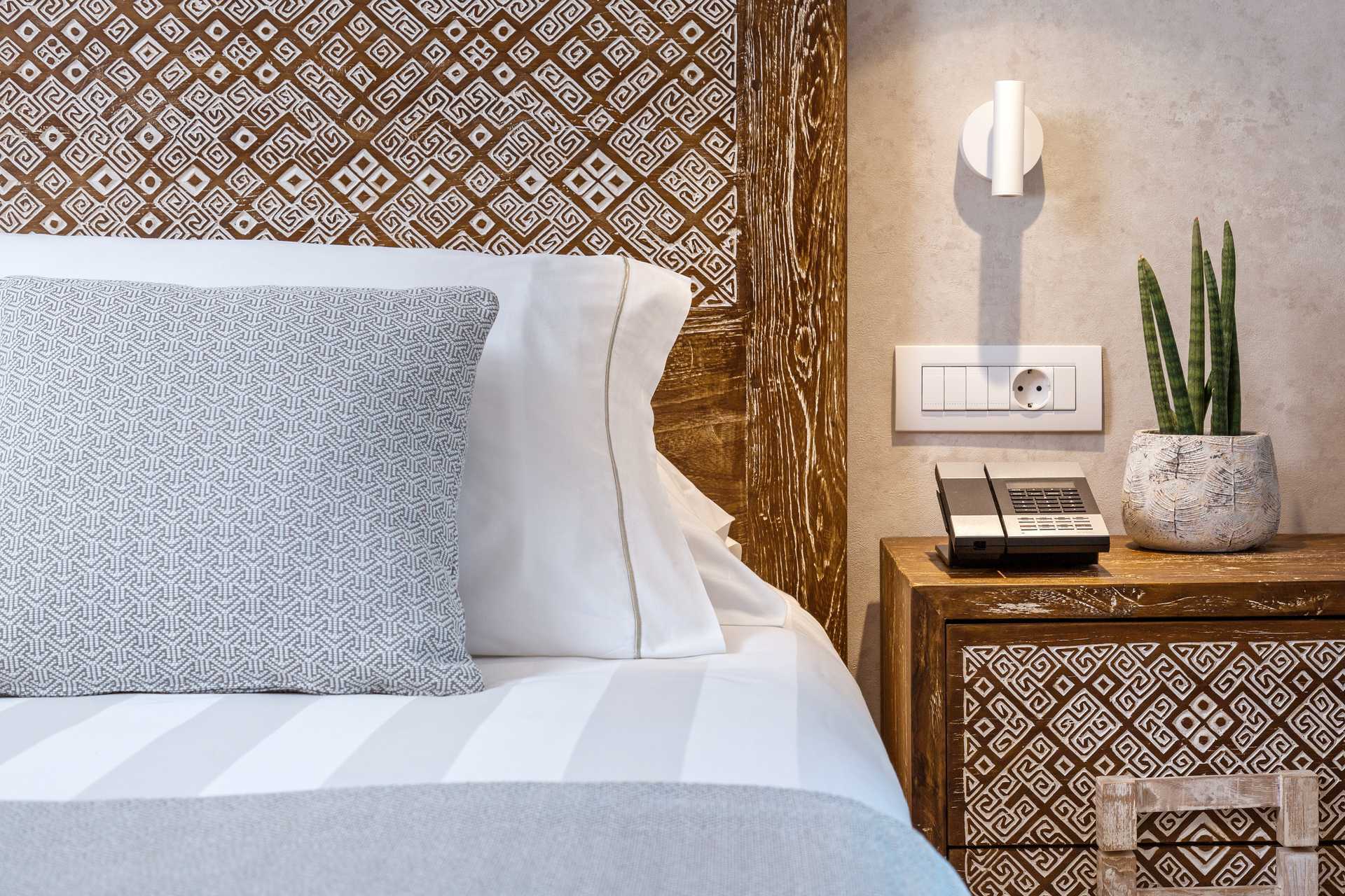 Dobbeltrom med balkong eller terrasse, noen med havutsikt eller begrenset havutsikt. En dobbeltseng. Mulig med ekstraseng i feltseng. Wifi, luftkondisjonering og safe inkludert. Kjøleskap. Vannkoker samt kaffe og te. TV. Badekåper og tøfler Hårføner. Baderom med dusj og wc. Rengjøring 7 ggr/uke.