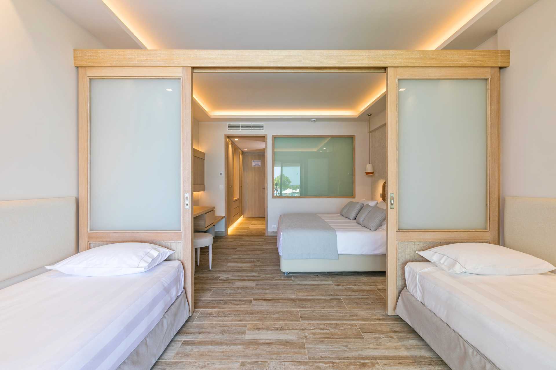 Familierom med balkong eller terrasse og havutsikt. Familierommene består av en soveromsdel og en stuedel med skyvedør mellom. En dobbeltseng. Mulig med ekstrasenger i sovesofaer. Wifi, luftkondisjonering og safe inkludert. Kjøleskap. Vannkoker samt kaffe og te. TV. Badekåper og tøfler Hårføner. Badekar, separat dusj og wc. Rengjøring 7 ggr/uke.
