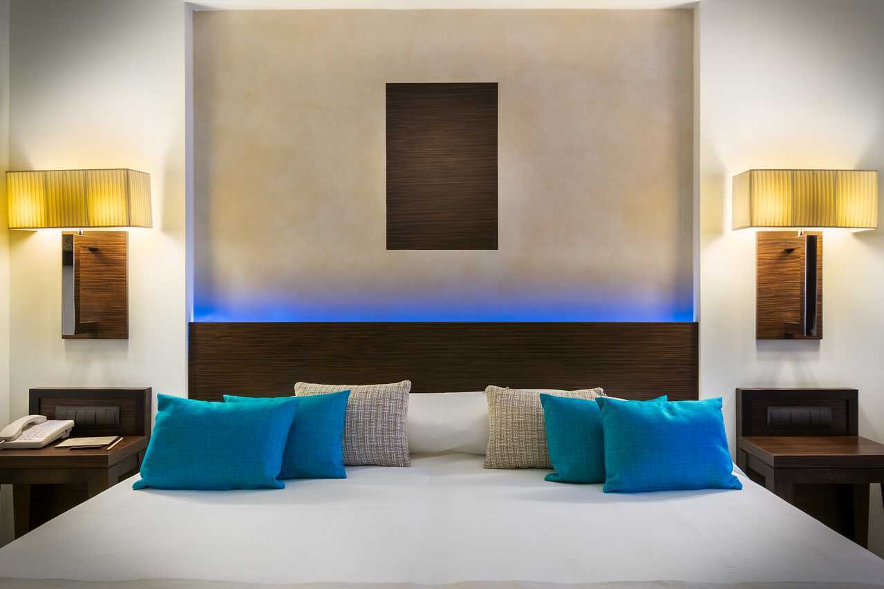 Deluxerom med balkong eller terrasse, noen med havutsikt. En dobbeltseng eller to enkeltsenger. Mulig med en ekstraseng i en feltseng eller sovesofa. Wifi, luftkondisjonering (i høysesongen) og safe inkludert. Kjøleskap, en flaske vin og en flaske vann er inkludert ved ankomst. Vannkoker samt kaffe og te. TV. Badekåper og tøfler Hårføner. Baderom med dusj og wc. Rengjøring 7 ggr/uke.