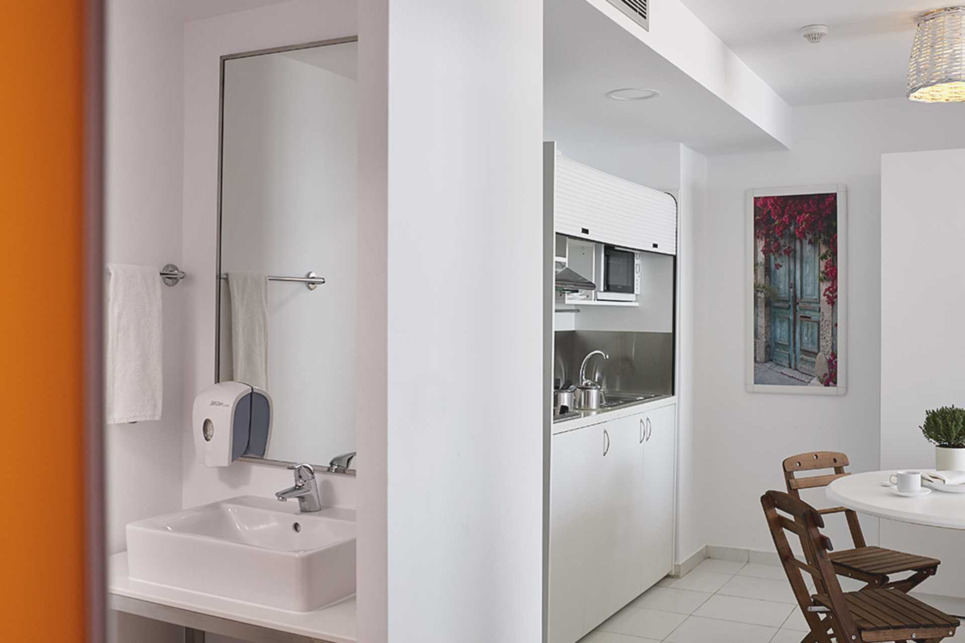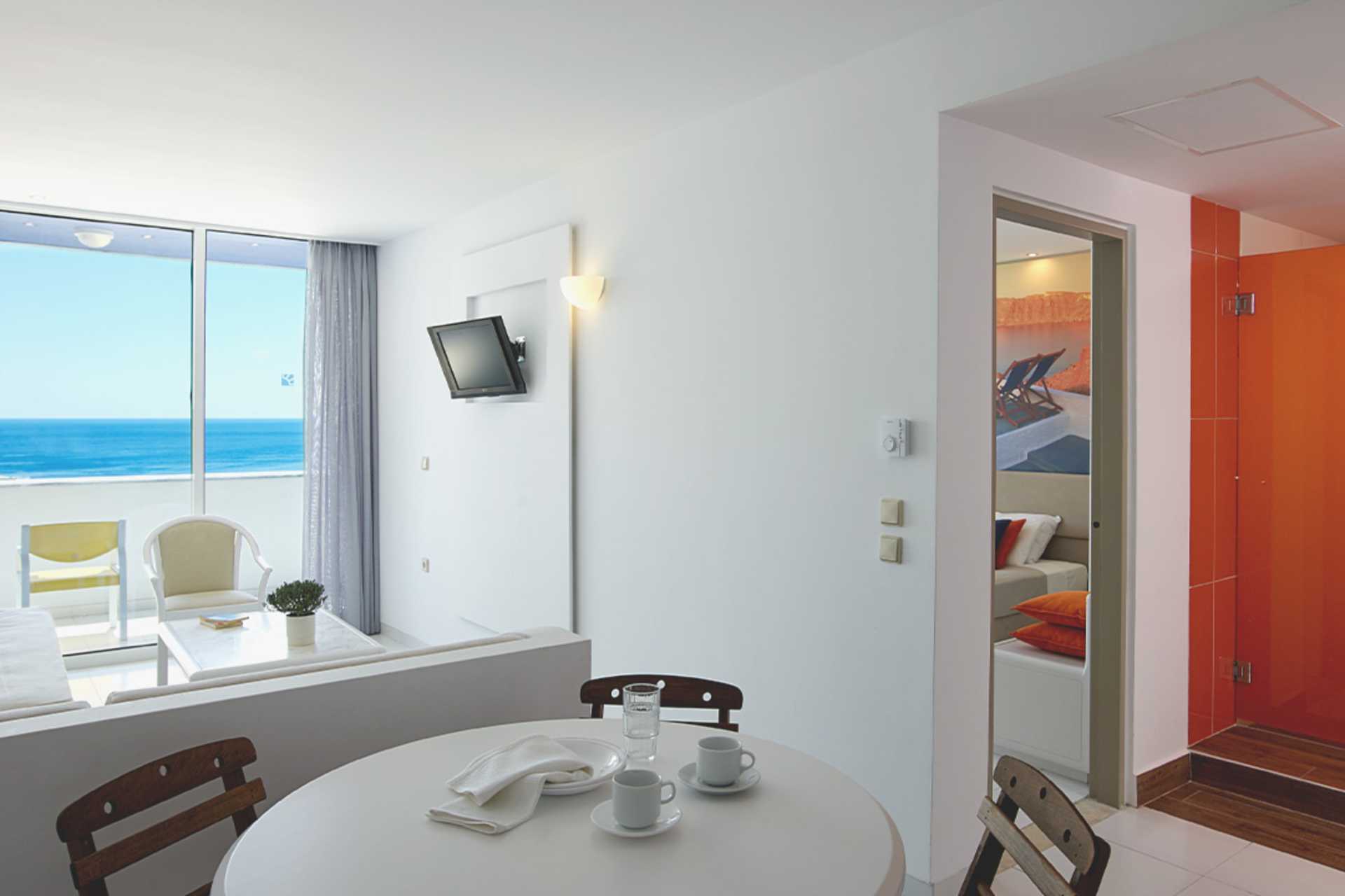 Toromsleilighet med balkong, noen med havutsikt eller begrenset havutsikt. Et soverom og kombinert stue med minikjøkken. To enkeltsenger. Mulig med ekstrasenger i sovesofaer. Wifi, luftkondisjonering i perioden 1.6-15.9 og safe inkludert. Sentralt luftkondisjonering som reguleres i leiligheten. Minikjøkken med kjøleskap, to kokeplater, mikrobølgeovn, vannkoker og enkelt kjøkkenutstyr. TV. Hårføner. Badekar eller dusj samt wc. Rengjøring 6 ggr/uke.