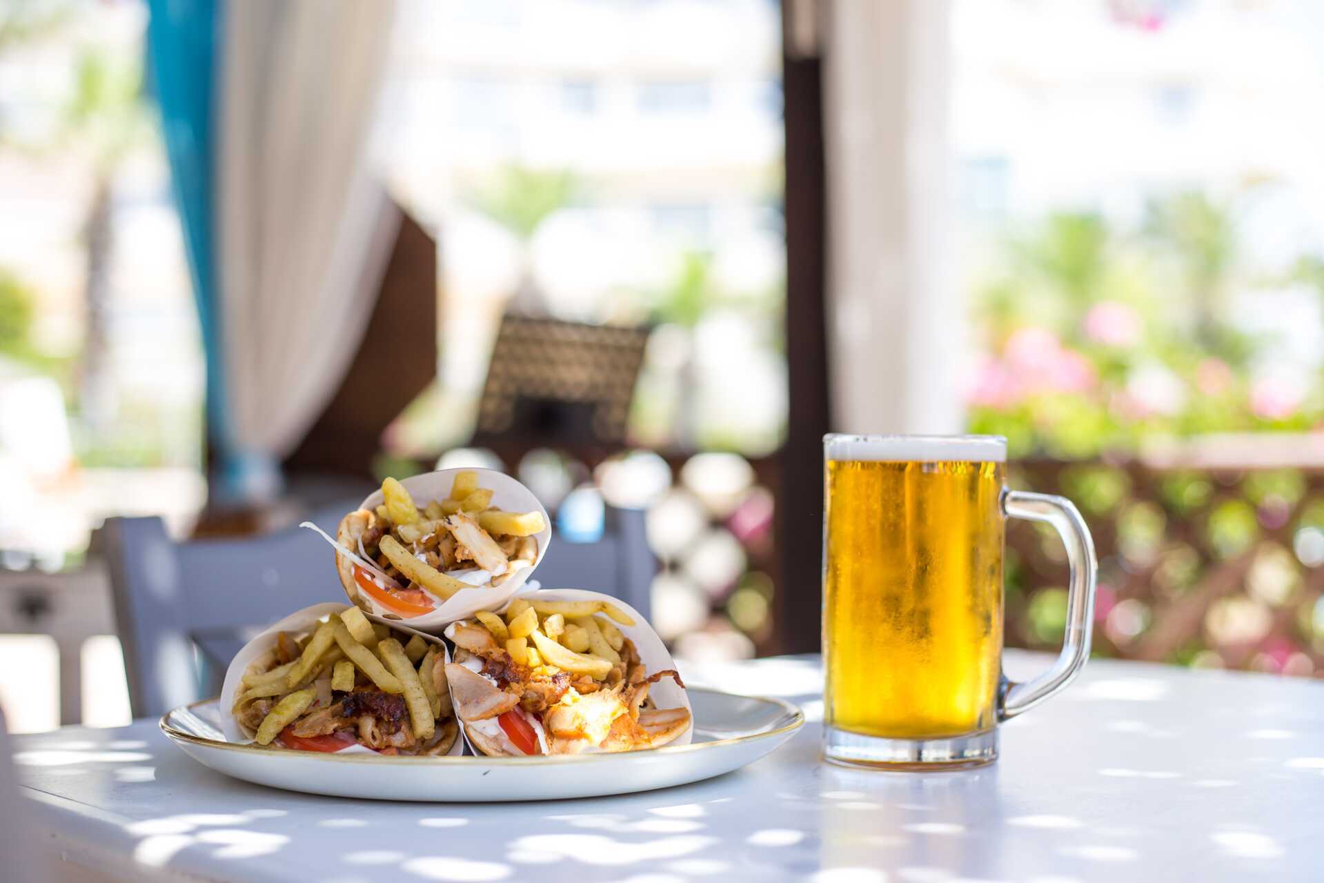 Gyros i Meet the Greek gyros grill ved bassenget kl. 12.00-18.00.