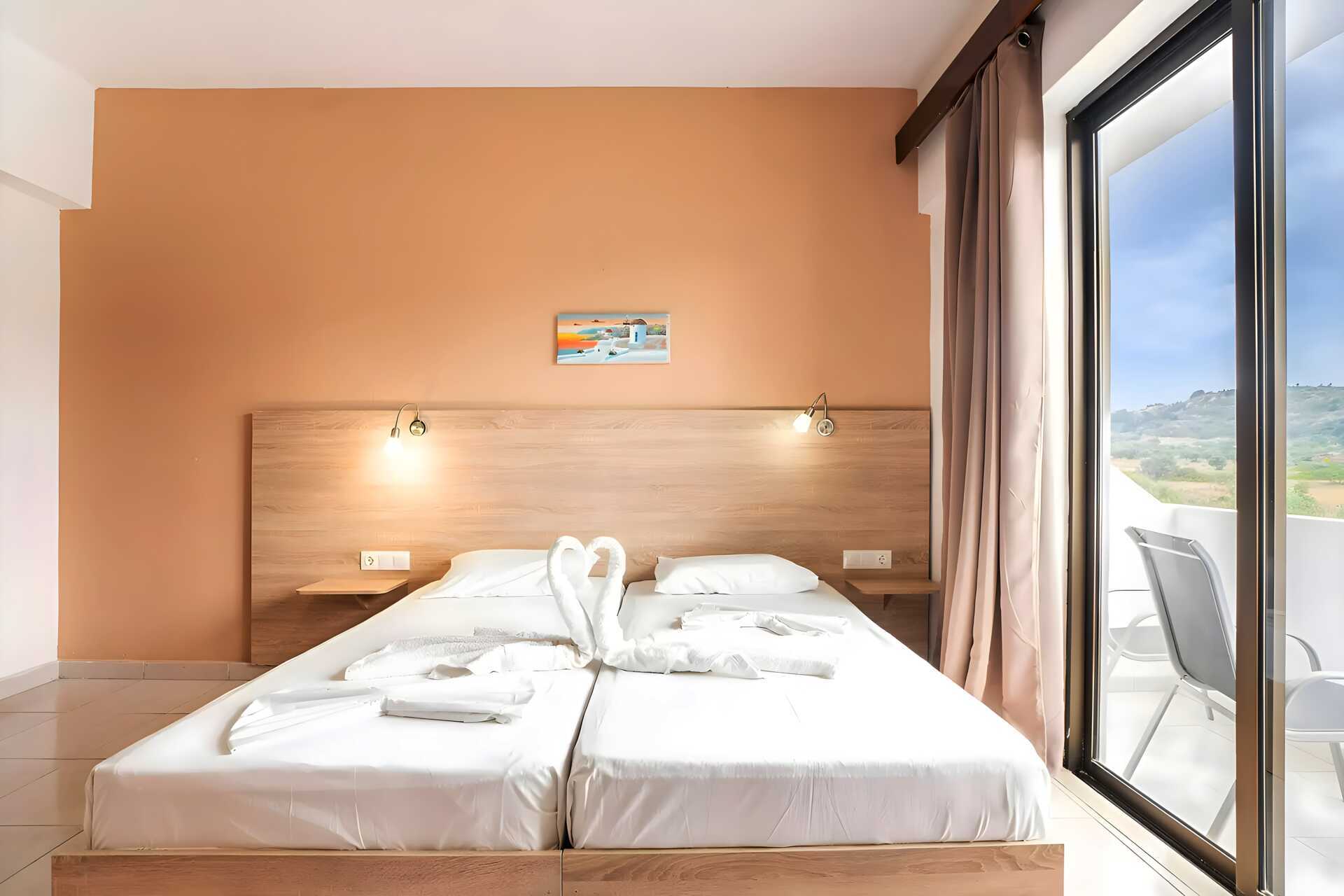 Dobbeltrom med balkong. En dobbeltseng eller to enkeltsenger. Wifi inkludert. Luftkondisjonering mot avgift. Kjøleskap. Vannkoker. TV. Hårføner. Badekar eller dusj samt wc. Rengjøring 3 ggr/uke.