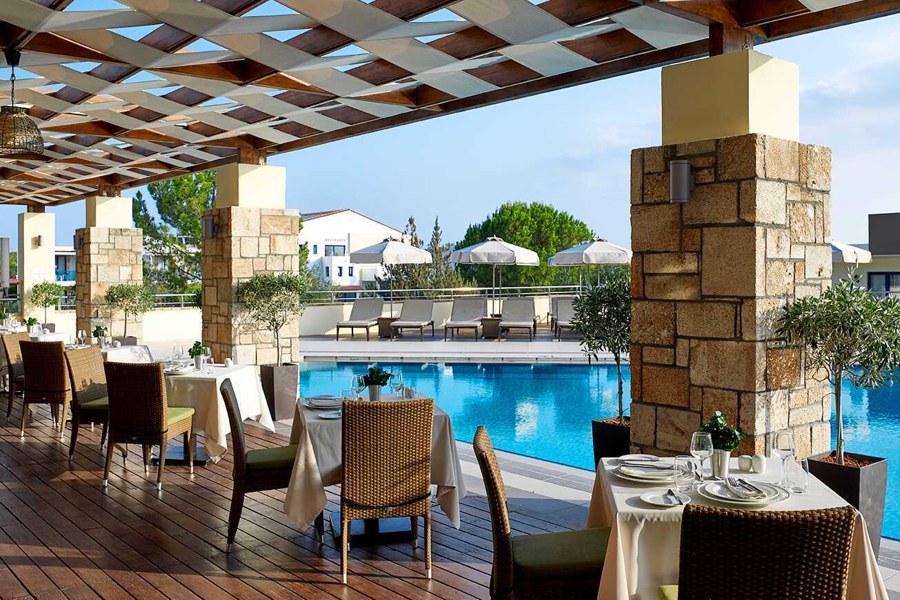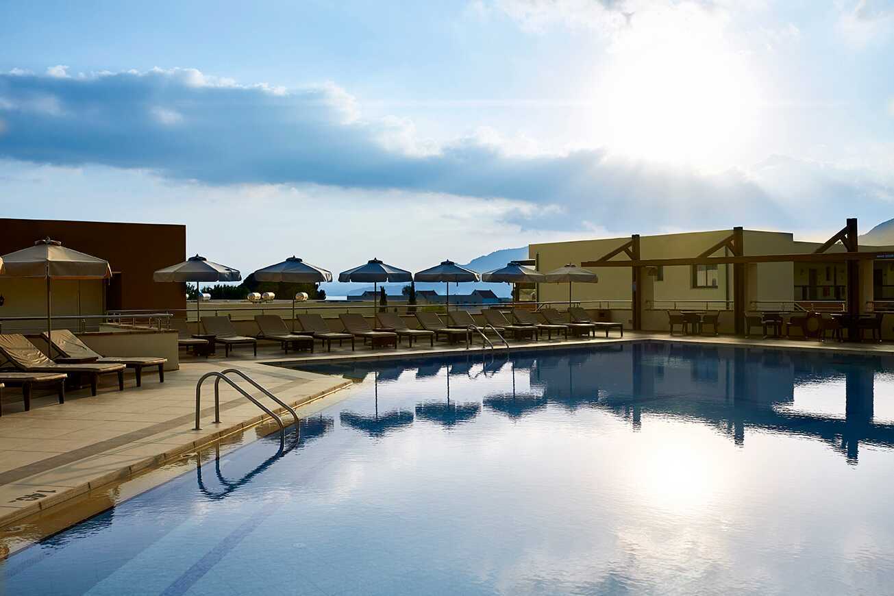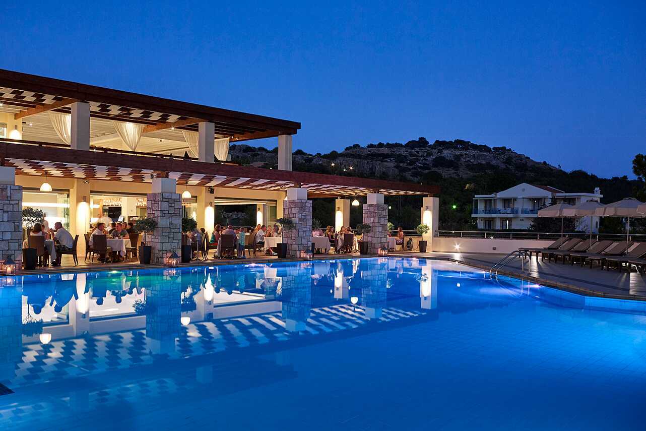 Dejligt hotel med gode værelser/lejligheder. Fantastisk beliggenhed. Enormt kompetent personale. Lækre pools. Rengøring i top. Morgenmaden ligeledes lækker. Stranden er tæt på og ligeledes Pefkos by med restauranter mm. Eget supermarked