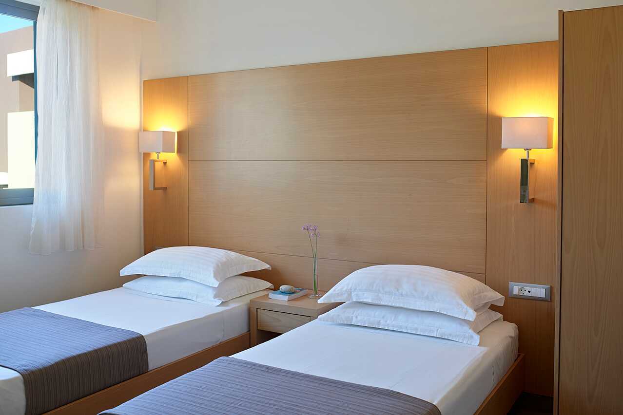 Dobbeltrom med balkong eller terrasse. En dobbeltseng eller to enkeltsenger. Mulig med ekstraseng i enkeltseng. Wifi, luftkondisjonering og safe inkludert. Kjøleskap. Vannkoker samt kaffe og te. TV. Strykejern og strykebrett. Hårføner. Baderom med dusj og wc. Rengjøring 7 ggr/uke.