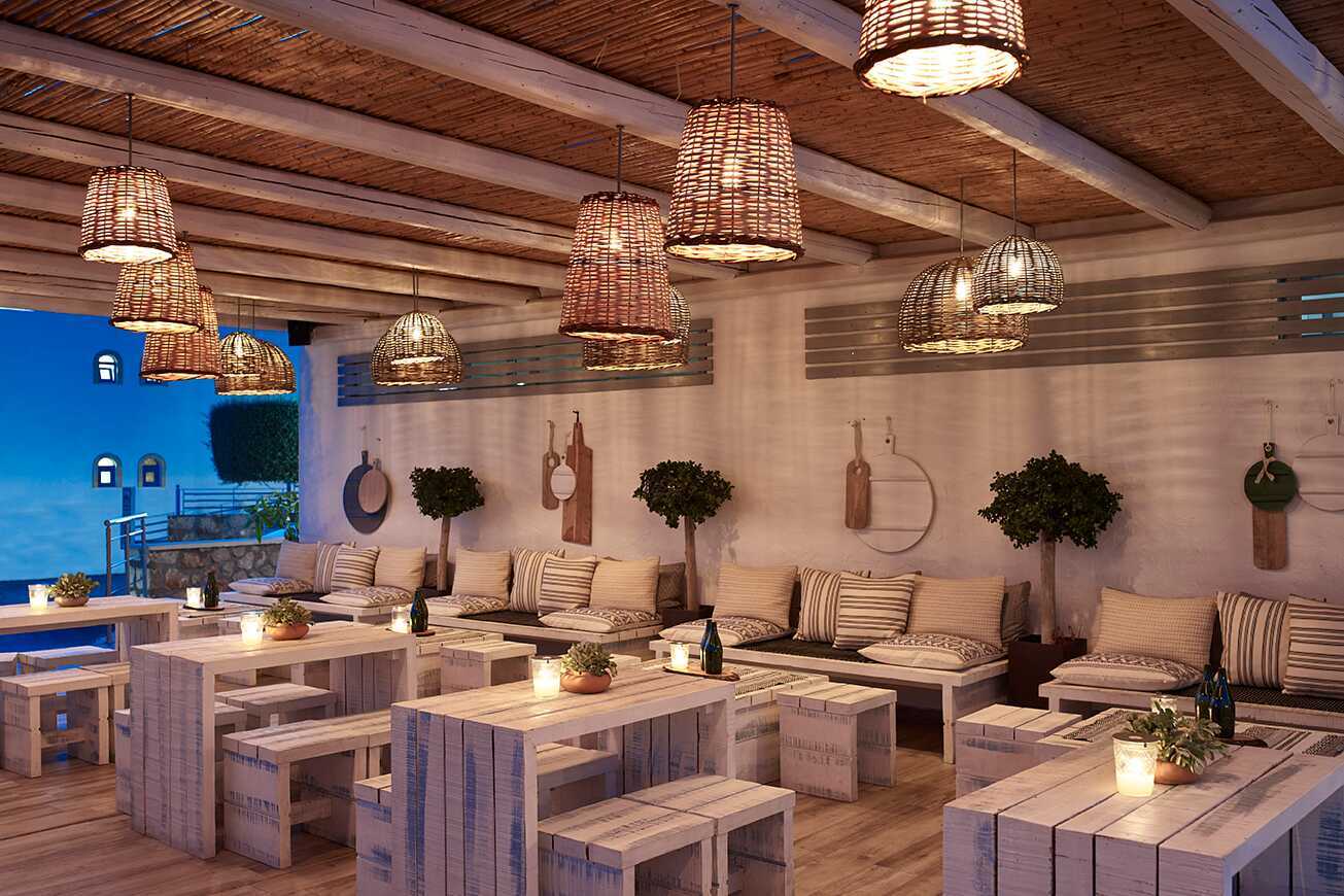 Frokost serveres i restauranten Elia på søsterhotellet Island Blue Hotel.