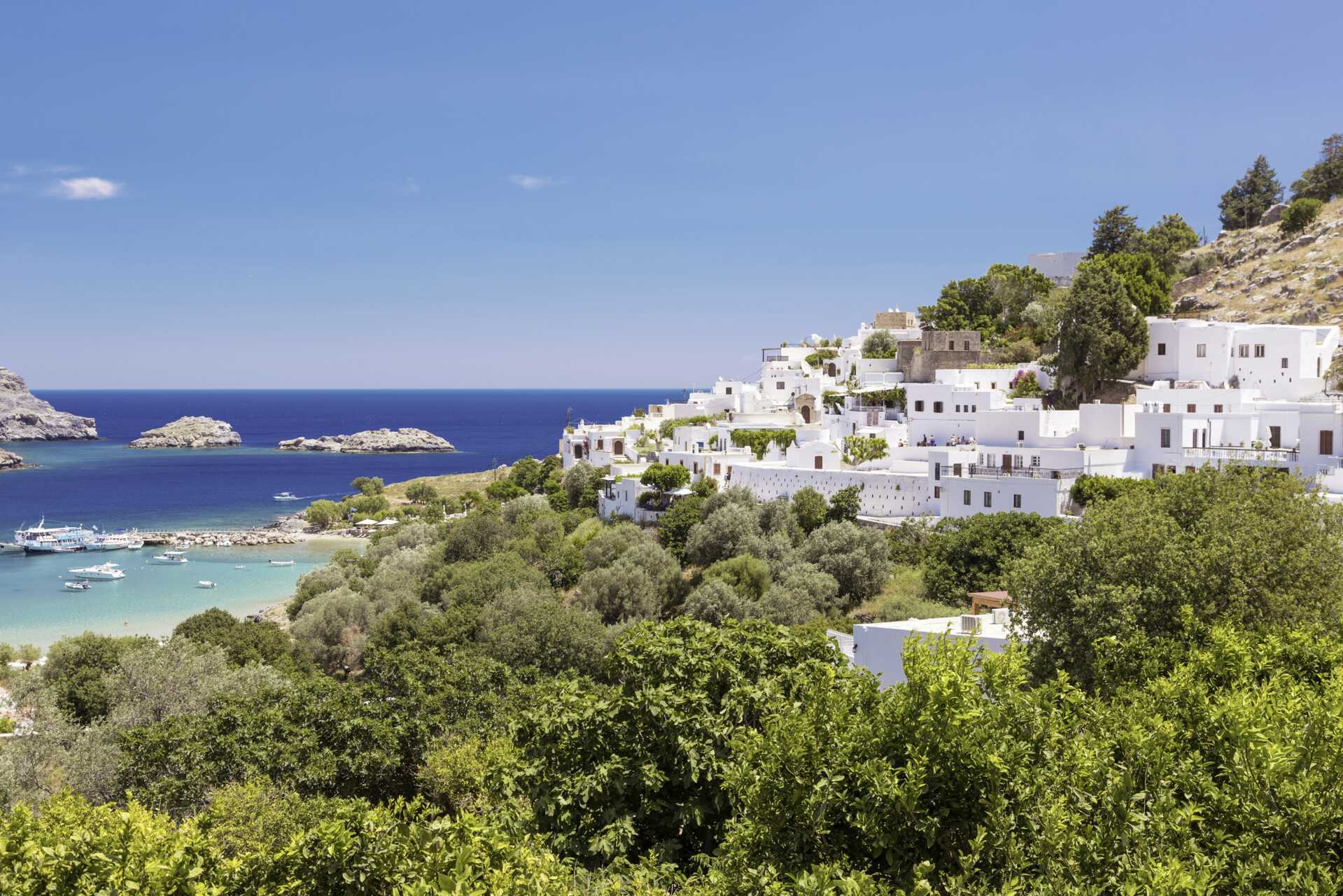 Det er ikke vanskelig å forstå hvorfor Lindos vanligvis kalles «den hvite byen» – de små hvitkalkede husene ligger langs trange gater som finner veien oppover skråningen. Her er det fint å rusle rundt og kanskje slå seg ned på en kafé med en avkjølende is og nyte den fantastiske havutsikten.