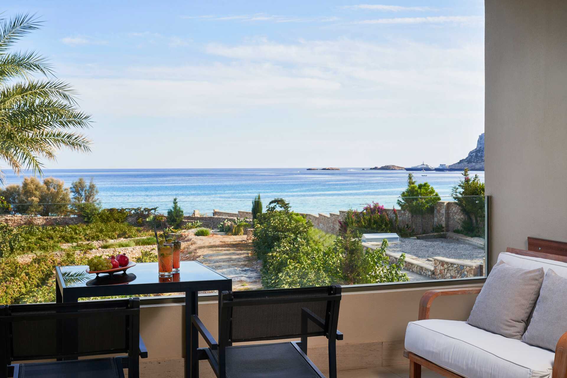 Deluxerom, Seafront i første rekke mot sjøen. Balkong og havutsikt. En dobbeltseng. Putemeny. Wifi, luftkondisjonering og safe inkludert. Kjøleskap. Vannkoker samt kaffe og te. Espressomaskin – seks kapsler per dag, etterfylles daglig. TV. Badekåper og tøfler Hårføner. Baderom med badekar, separat dusj og wc. Rengjøring 7 ggr/uke.