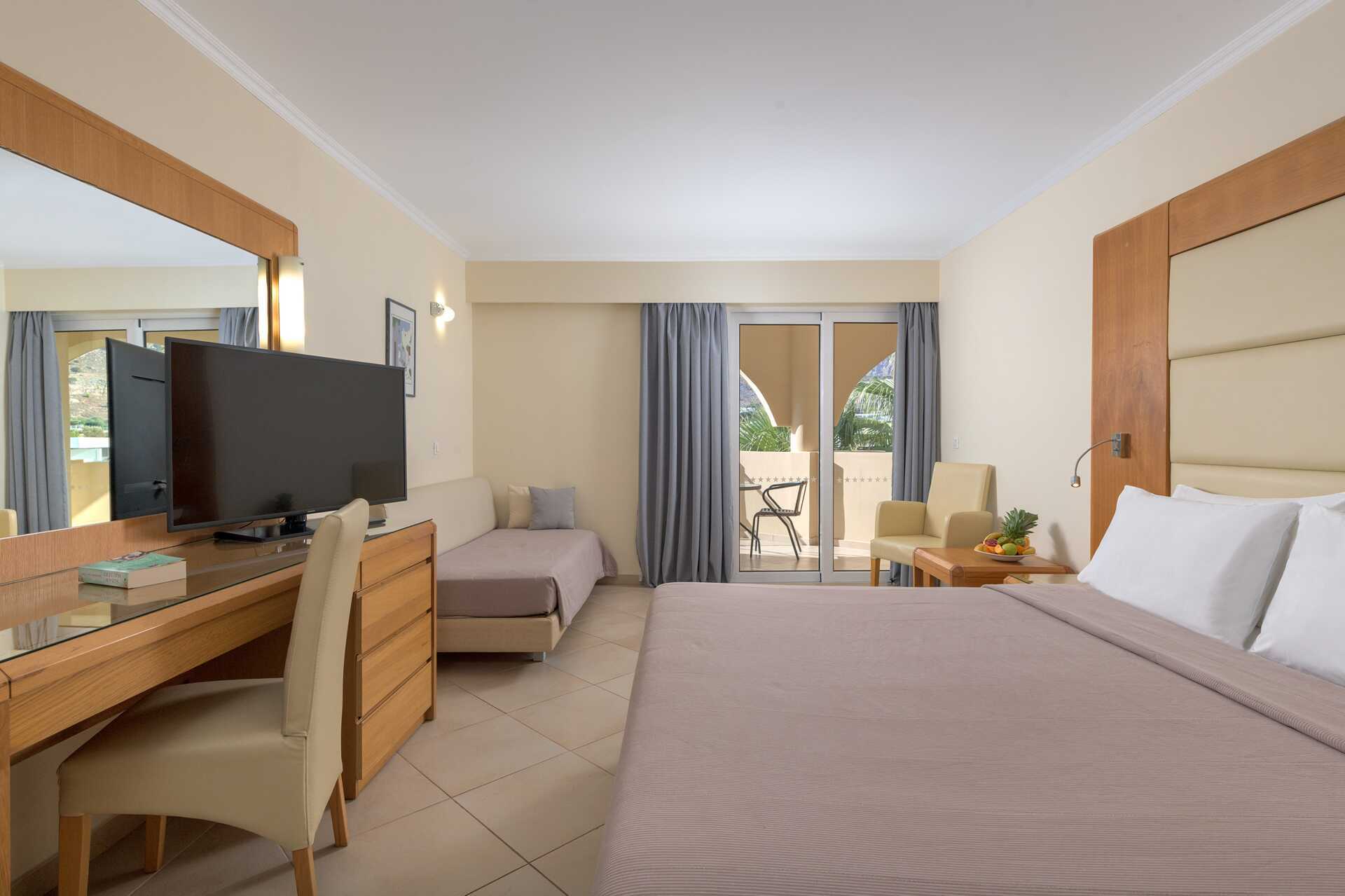 Familierom med balkong eller terrasse, noen med havutsikt. Familierommet består av en soveromsdel og en stuedel og er adskilt av en vegg med skyvedør. En dobbeltseng eller to enkeltsenger. Mulig med en ekstrasenger i to sovesofaer eller to enkeltsenger. Wifi og luftkondisjonering inkludert. Kjøleskap. TV. Hårføner. Dusj og wc. Rengjøring 7 ggr/uke.