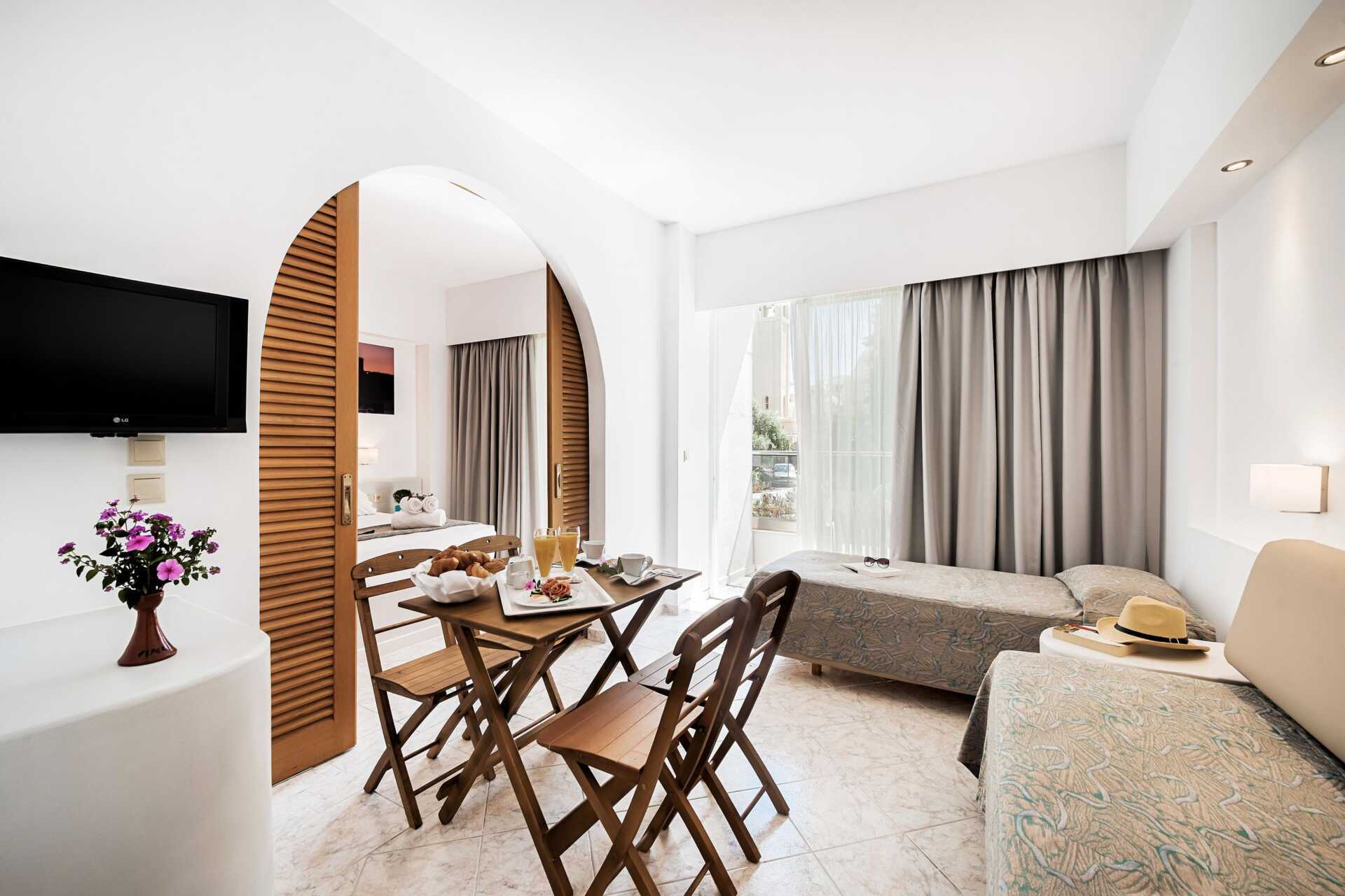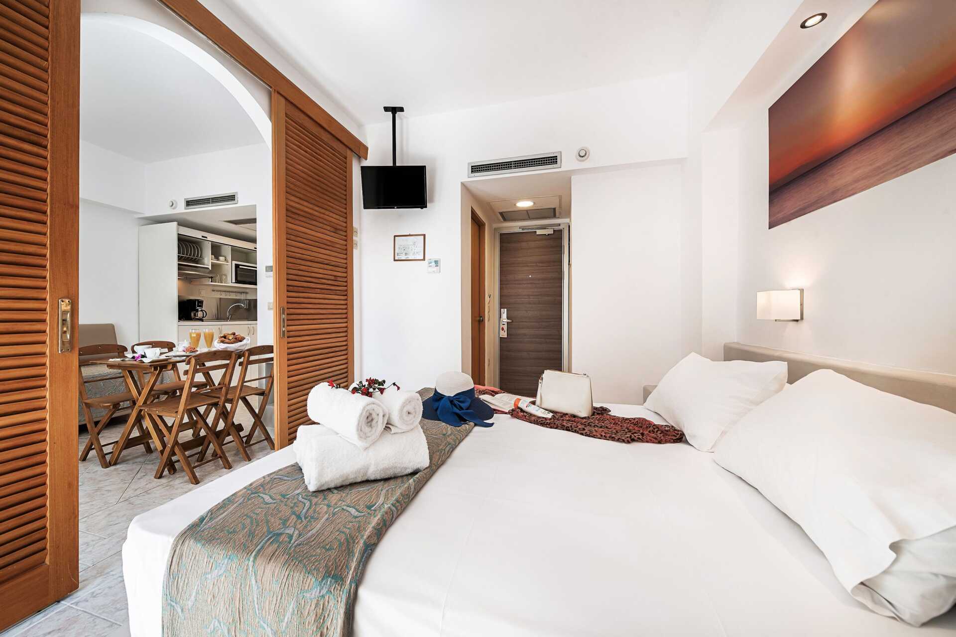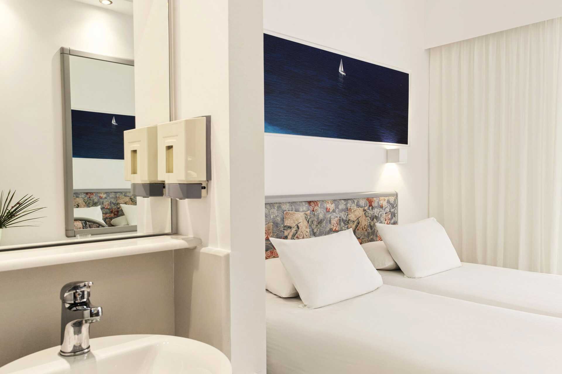 Superiorrom med balkong, noen med utsikt over en park. To enkeltsenger. Wifi og safe inkludert. Luftkondisjonering er inkludert fra juni til september. Safe mot avgift. Kjøleskap. TV. Hårføner. Baderom med dusj og wc. Rengjøring 7 ggr/uke.