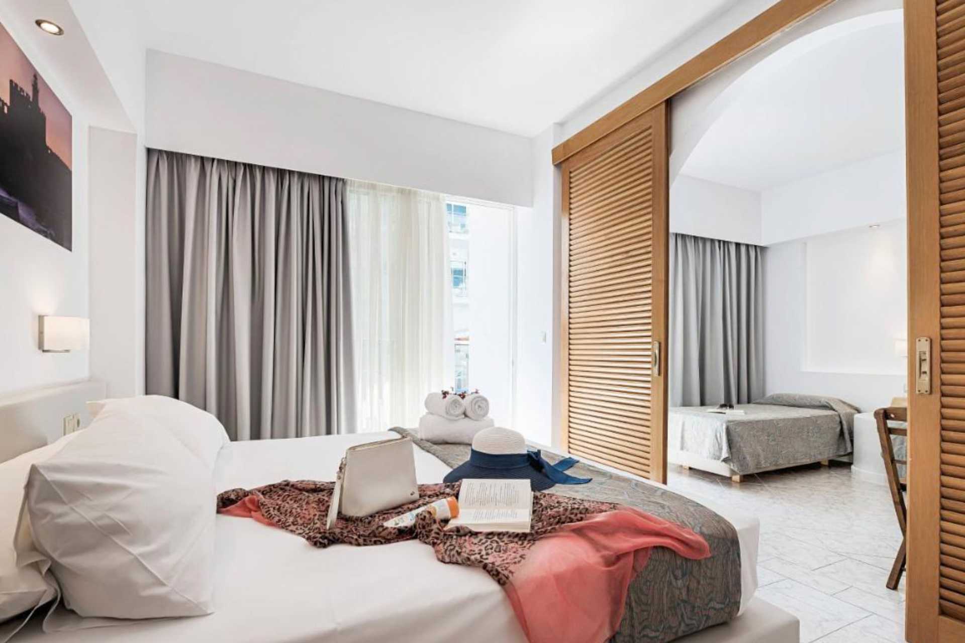 Dobbeltrom med balkong. To enkeltsenger. Mulig med en ekstraseng i enkeltseng. Wifi og safe inkludert. Luftkondisjonering er inkludert fra juni til september. Kjøleskap. TV. Hårføner. Baderom med dusj og wc. Rengjøring 7 ggr/uke.