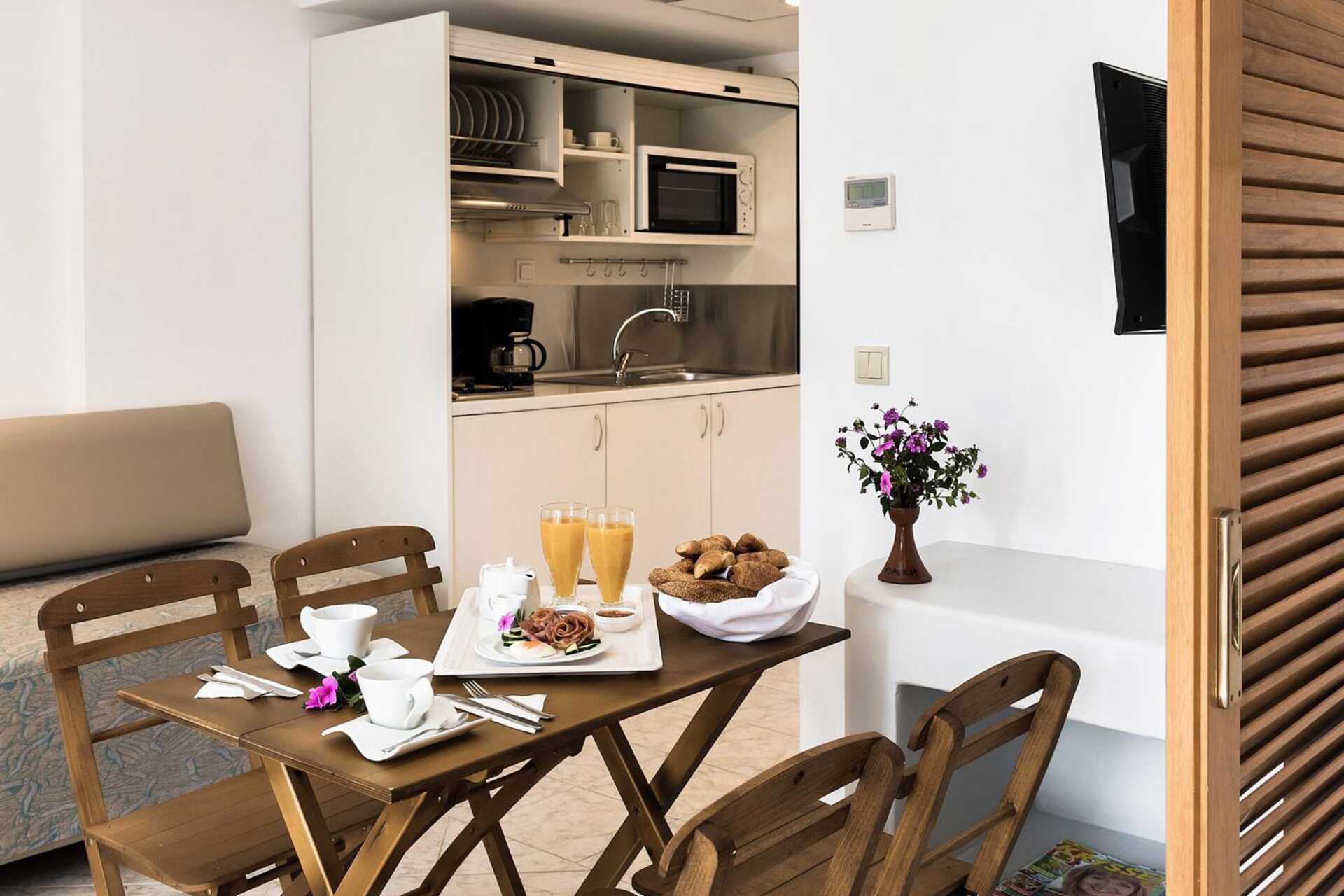 Toromsleilighet med balkong. Leilighetene er innredet i forskjellige stiler og farger. Et soverom og stue med minikjøkken. Rommene er adskilt med skyvedører med sprosser. En dobbeltseng. Mulig med ekstrasenger i en dobbeltseng. Minikjøkken med kokeplater, kjøleskap og enkelt kjøkkenutstyr. Wifi og safe inkludert. Luftkondisjonering er inkludert fra juni til september. TV. Hårføner. Baderom med dusj og wc. Rengjøring 7 ggr/uke.