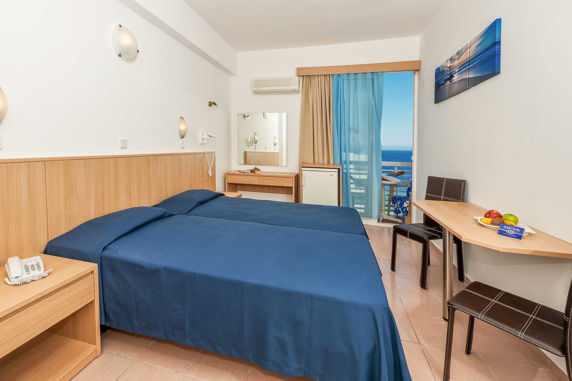 Dobbeltrom med balkong. To enkeltsenger. Mulig med ekstraseng i enkeltseng. Wifi, safe og luftkondisjonering inkludert. Kjøleskap. TV. Hårføner. Badekar eller dusj samt wc. Rengjøring 6 ggr/uke.