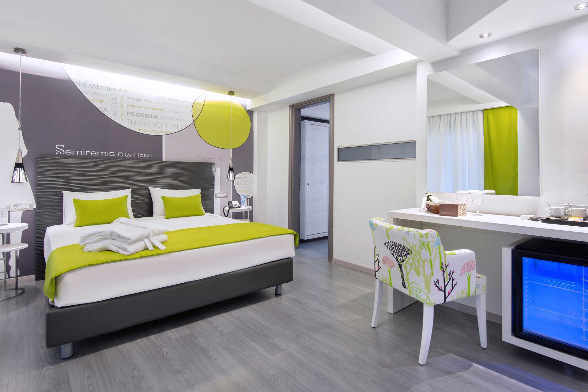 Dobbeltrom med balkong, noen med havutsikt eller begrenset havutsikt. En dobbeltseng eller to enkeltsenger. Mulig med ekstraseng i feltseng. Kjøleskap. Vannkoker. Luftkondisjonering og wifi inkludert. Safe mot avgift. TV med internasjonale kanaler. Hårføner. Baderom med badekar eller dusj samt wc. Rengjøring 7 ggr/uke.