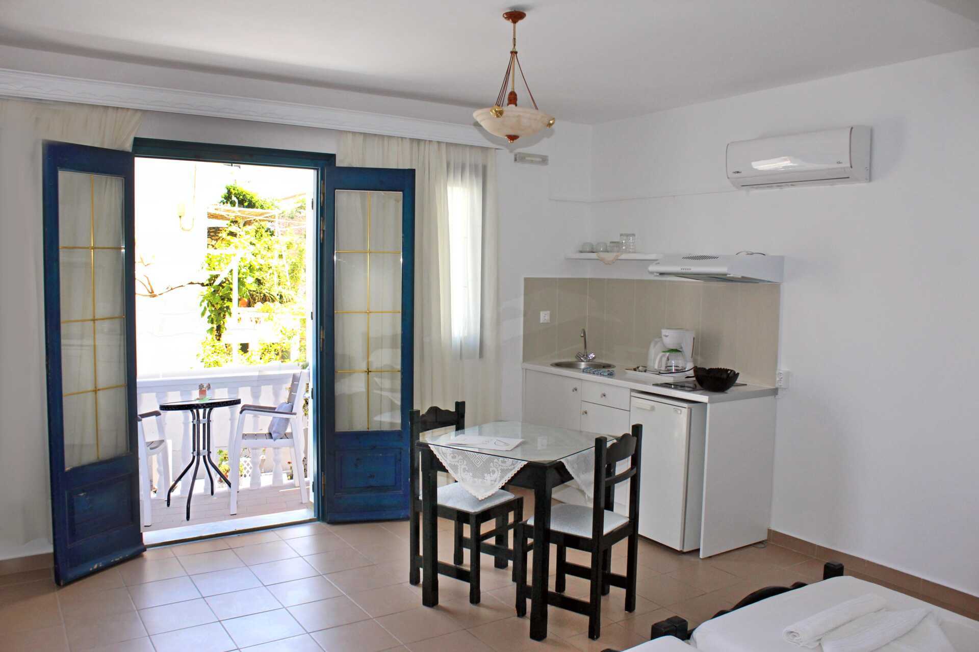 Ettromsleilighet og stor balkong eller balkong i varierende størrelse. Kombinert soverom og minikjøkken. En dobbeltseng. Minikjøkken med kokeplater, kjøleskap, kaffetrakter, vannkoker og enkelt kjøkkenutstyr. Wifi, luftkondisjonering og safe inkludert. Hårføner. Baderom med dusj og wc. Rengjøring 6 ggr/uke. En av ettromsleilighetene vender ut mot gaten og trafikken kan oppleves som forstyrrende.