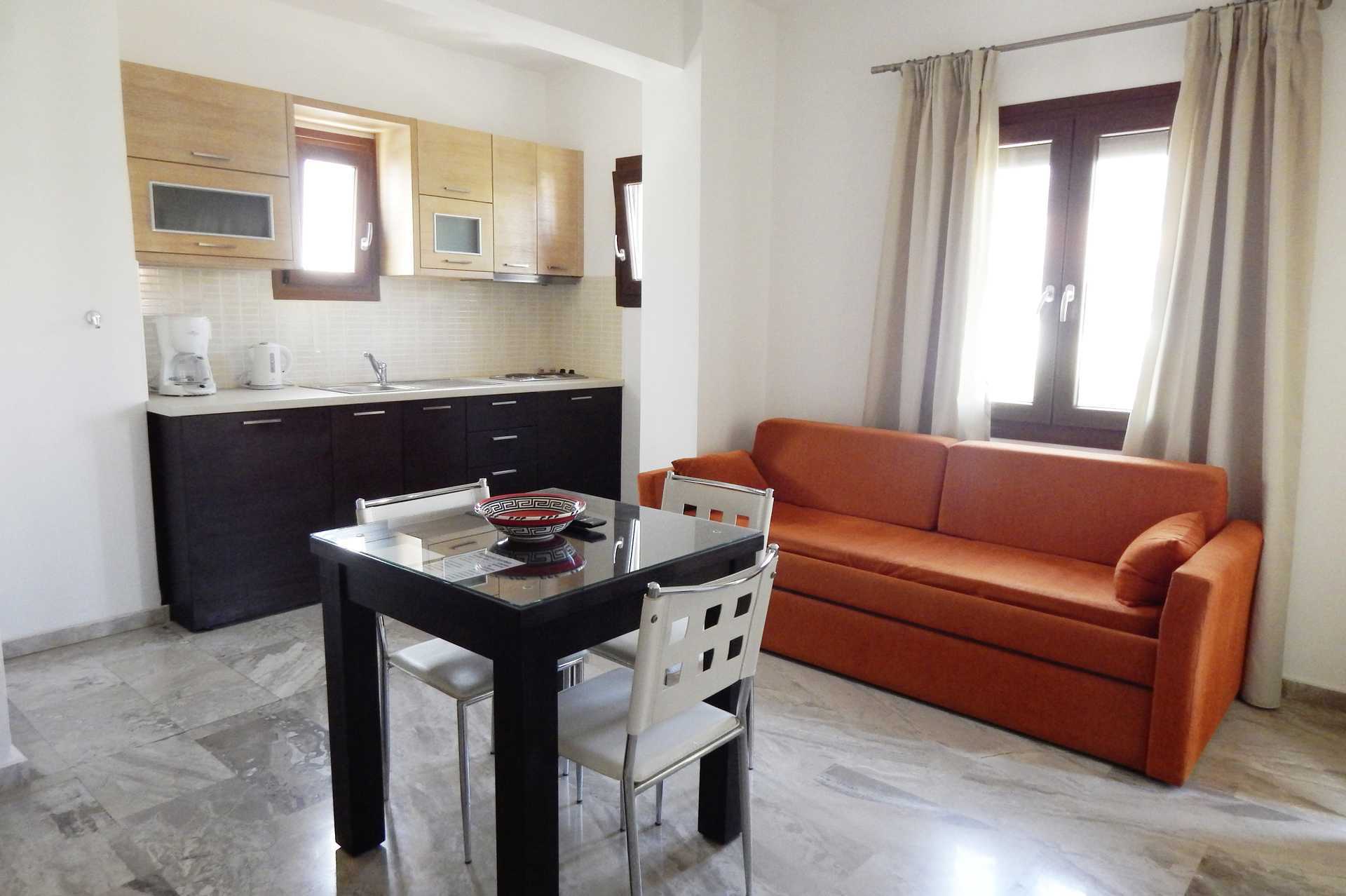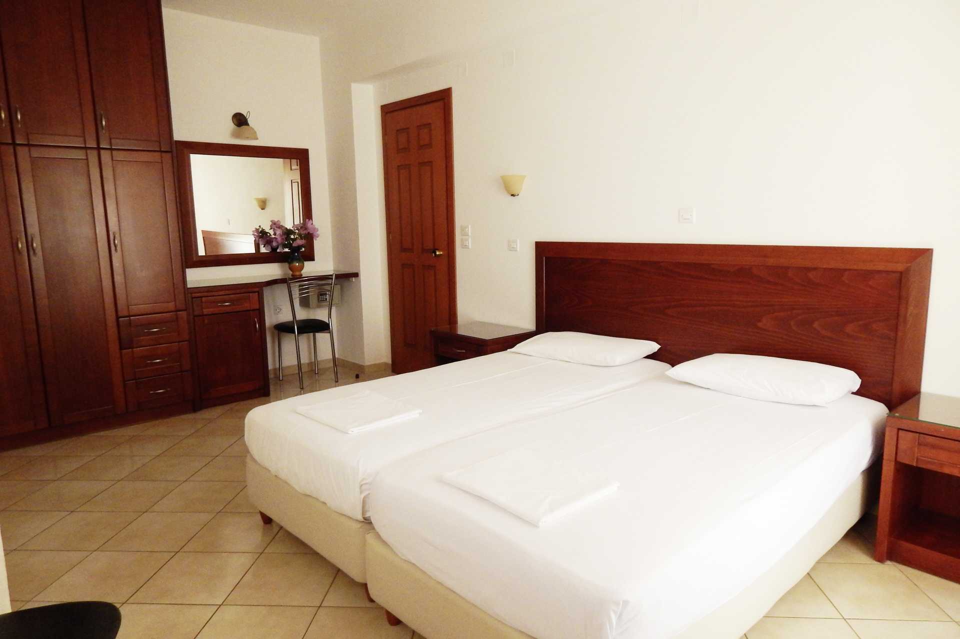 Toromsleilighet med balkong eller terrasse. Et soverom og kombinert stue med minikjøkken. Noen leiligheter er renovert. To enkeltsenger. Mulig med en ekstraseng i sovesofa. Minikjøkken med kokeplater, kjøleskap, kaffetrakter, vannkoker og enkelt kjøkkenutstyr. Wifi er inkludert. Luftkondisjonering i soverommet og safe mot avgift. TV med lokale kanaler. Badekar eller dusj samt wc. Rengjøring 6 ggr/uke. Barn under 2 år regnes inn i maksantallet i leiligheten.