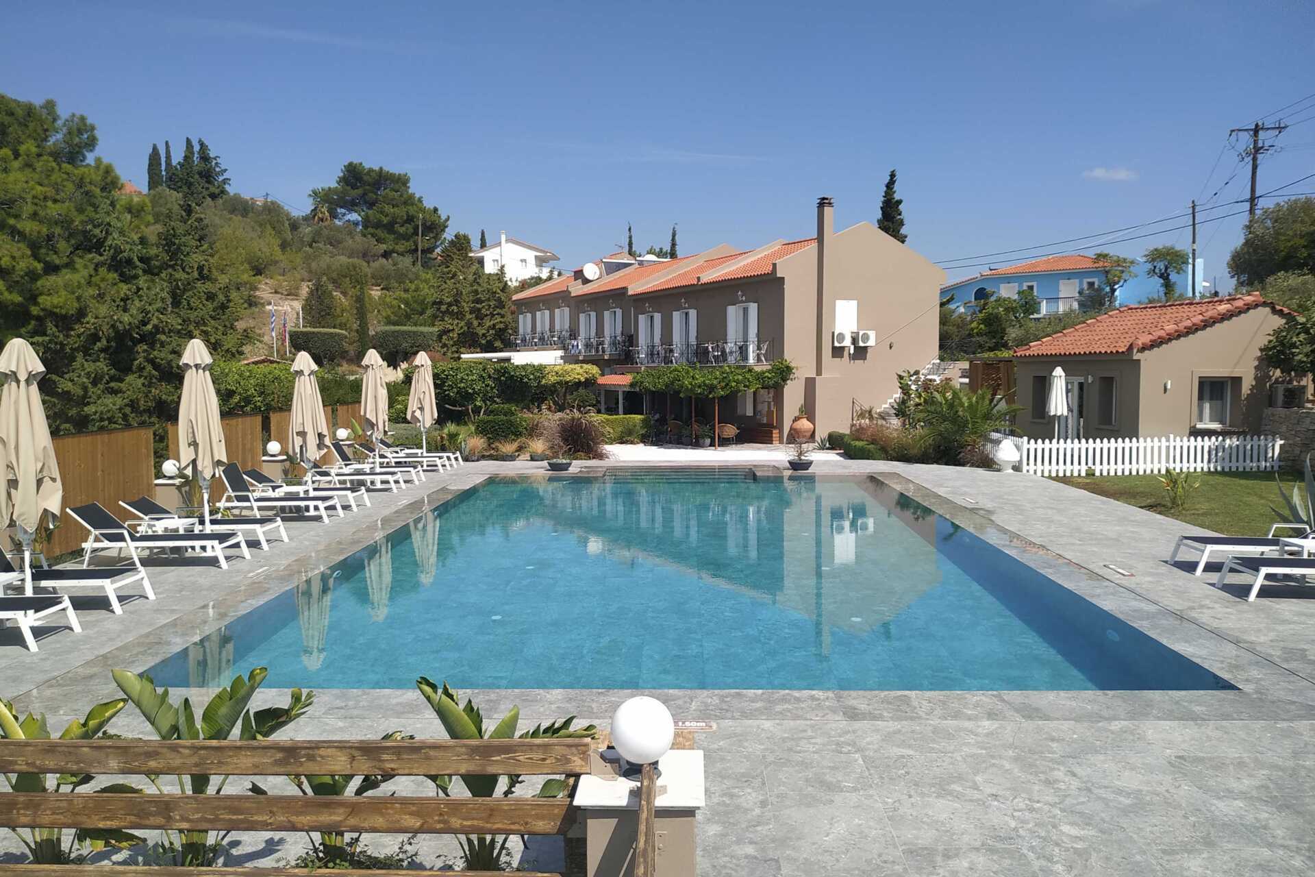 Frodig og velstelt hage. Fint bassengområde. Hyggelig eier. Nærhet til Glikoriza stranden som er åpen for alle med gratis solsenger.