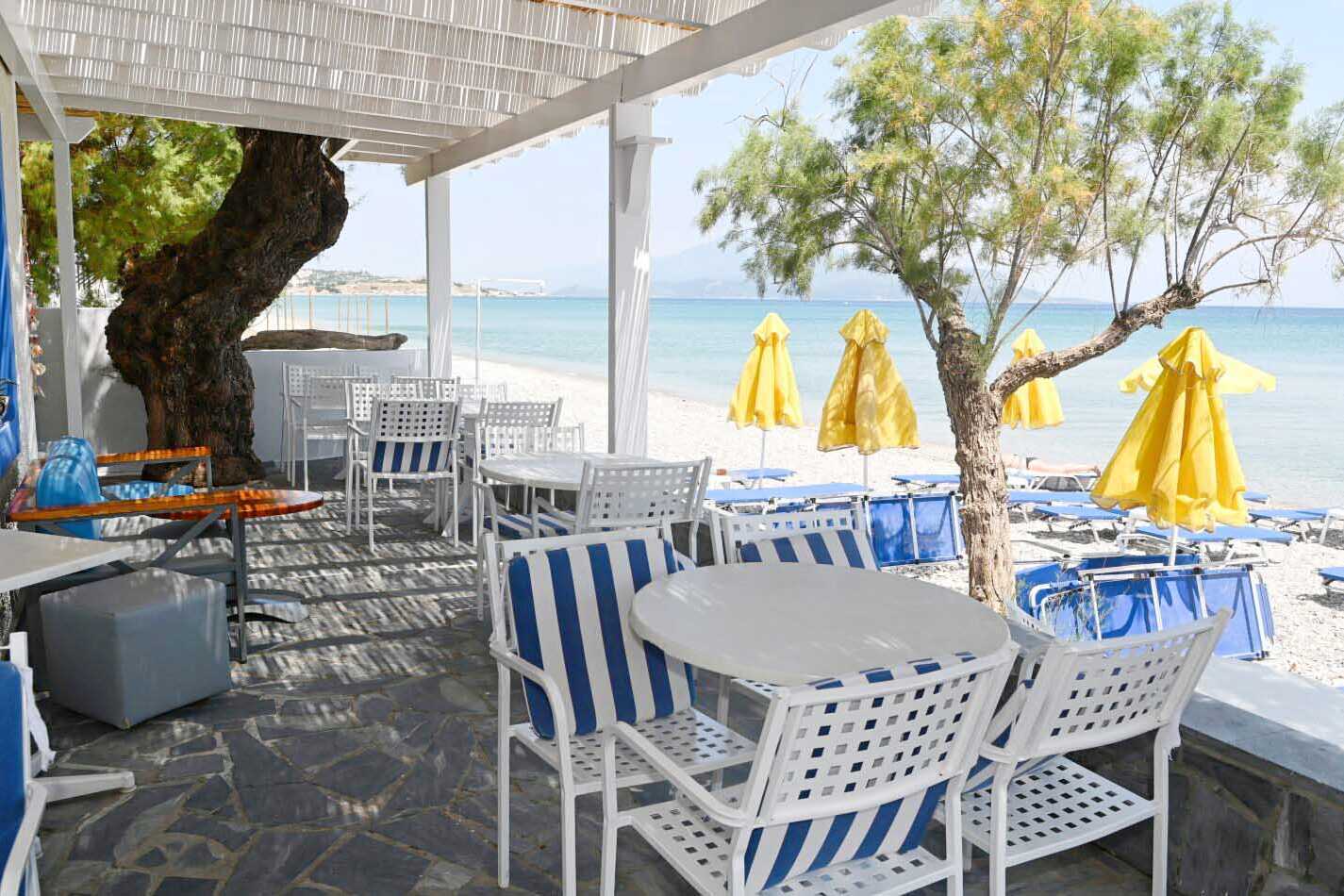 Katerina er et sjarmerende hotell i Pythagorion på Samos. Hotellet ligger på stranden og frokosten serveres på terrassen ved strandbaren. I den hyggelige blå og hvite strandbaren kan du også bestille andre måltider.
