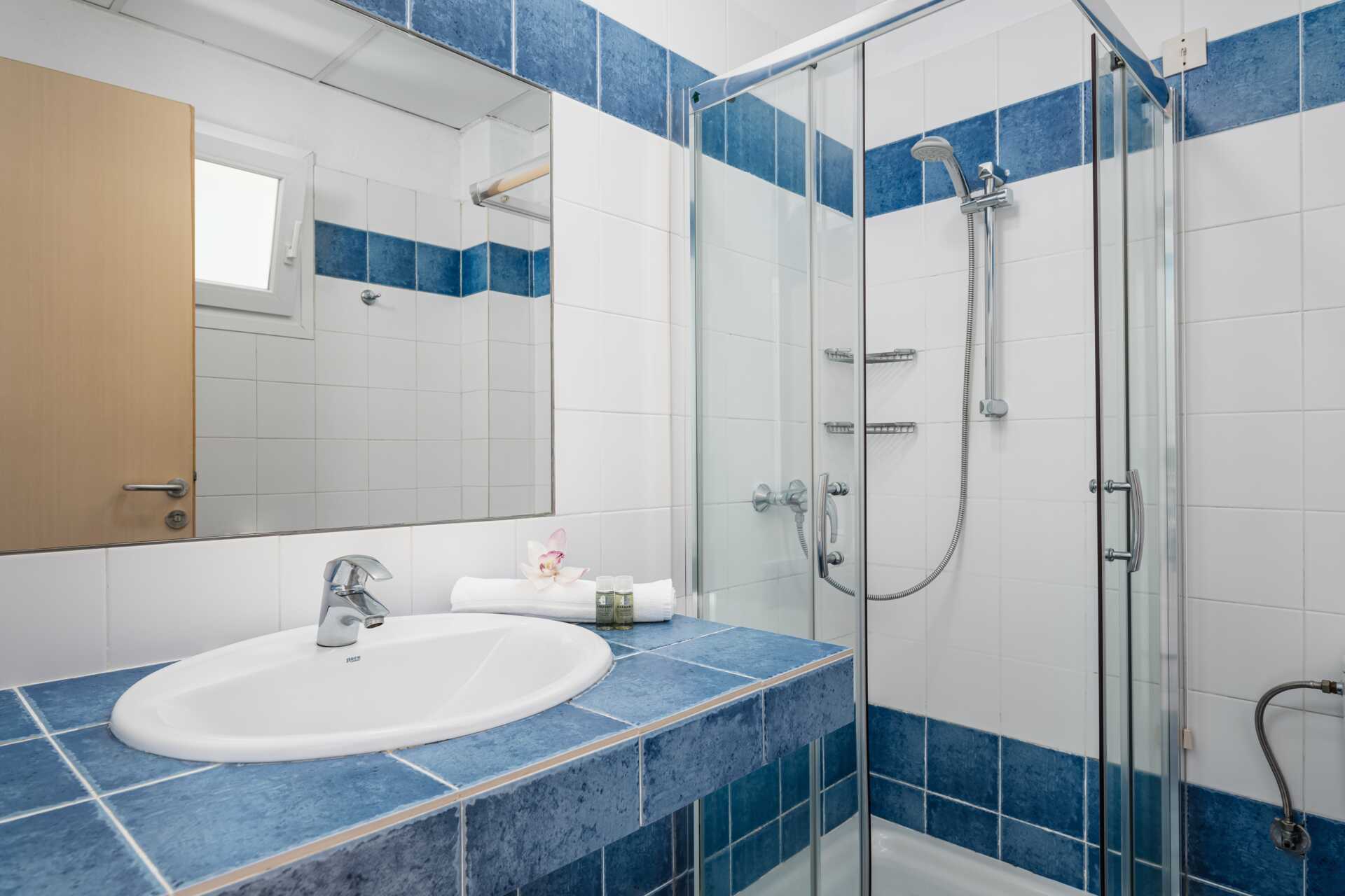 Dobbeltrom med balkong eller terrasse og havutsikt, eller med balkong og havutsikt. En dobbeltseng eller to enkeltsenger. Mulig med ekstraseng i enkeltseng. Wifi, luftkondisjonering og safe inkludert. Kjøleskap. TV. Hårføner. Baderom med dusj og wc. Rengjøring 7 ggr/uke.
