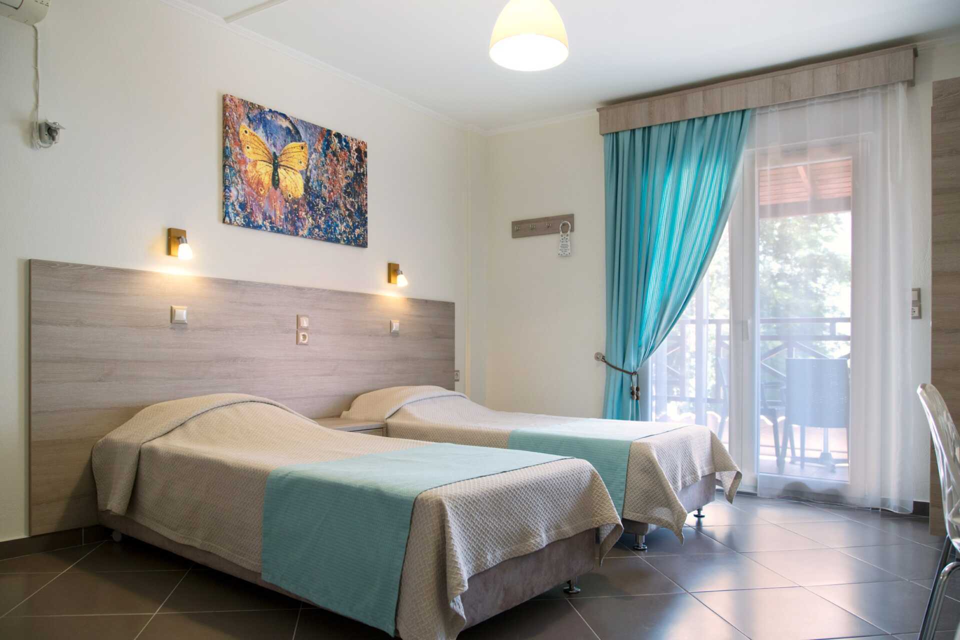 Ettromsleilighet med balkong eller markterrasse. Minikjøkken. En dobbeltseng eller to enkeltsenger. Minikjøkken med kokeplater, kjøleskap med fryserom, vannkoker, kaffe og te og enkel kjøkkenutstyr. Wifi, luftkondisjonering og safe inkludert. Hårføner. Baderom med dusj og wc. Rengjøring 6 ggr/uke.