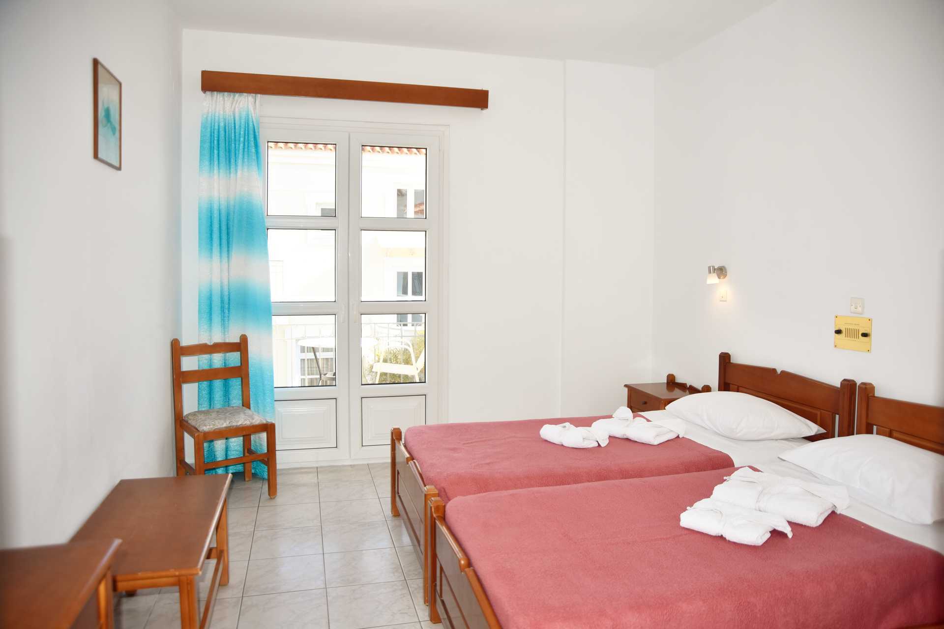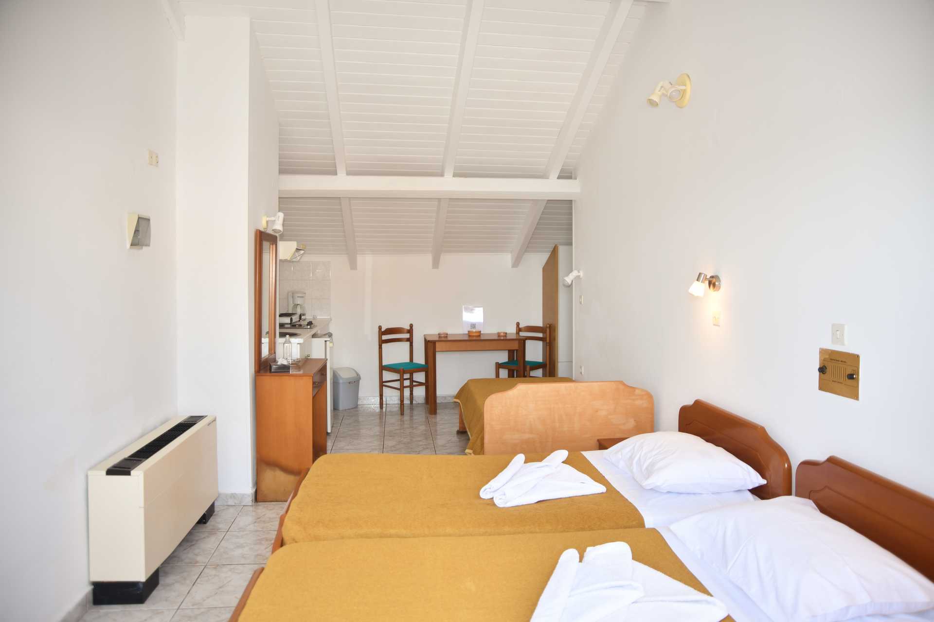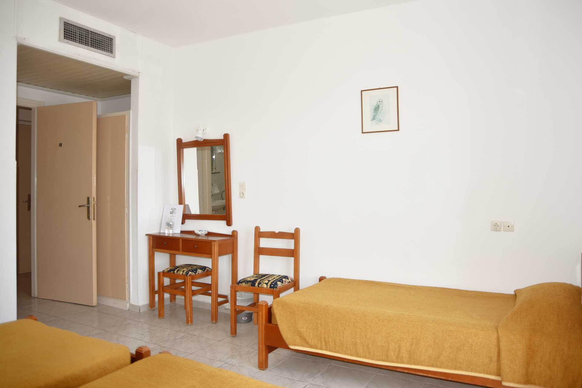 Ettromsleilighet med balkong eller terrasse. Soverom kombinert med minikjøkken. To enkeltsenger. Mulig med ekstraseng i enkeltseng. Minikjøkken med kjøleskap, kokeplater, brødrister, kaffetrakter og grunnleggende kjøkkenutstyr. Wifi og luftkondisjonering mellom kl. 21:00 og 07:00, som er sentralstyrt og inkluderer depositum. TV med lokale kanaler. Bad med dusj og wc. Rengjøring 6 ggr/uke. En av leilighetene nås via en smal spiraltrapp.