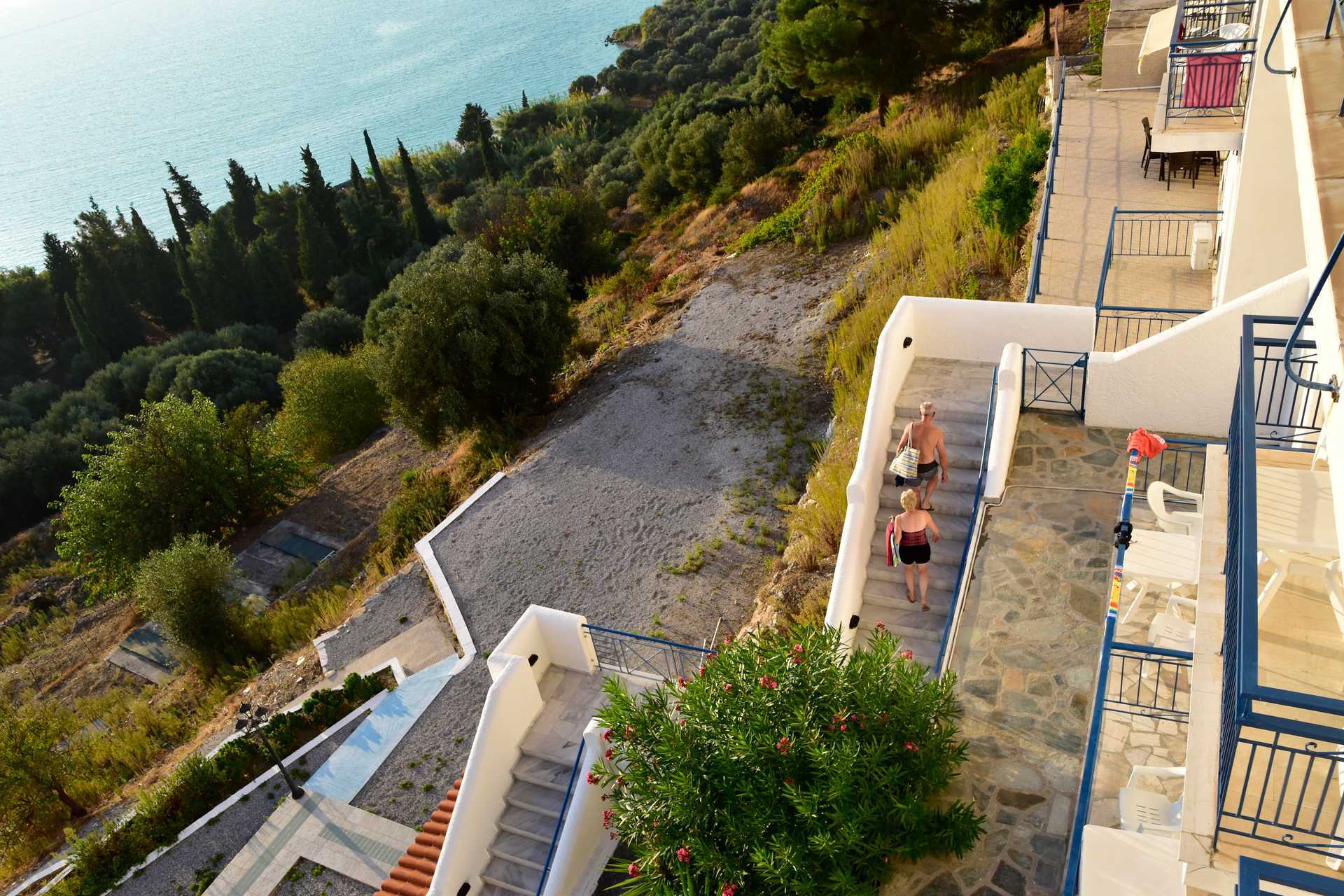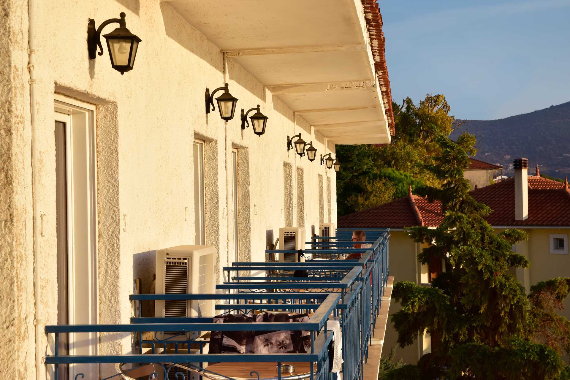 Dobbeltrom med balkong eller terrasse og havutsikt. To enkeltsenger. Mulig med ekstraseng i feltseng eller sovesofa. Merk at når ekstrasengen brukes, blir rommet trangt. Wifi inkludert. Luftkondisjonering mot avgift. TV. Kjøleskap. Hårføner. Dusj og wc. Rengjøring 6 ggr/uke.
