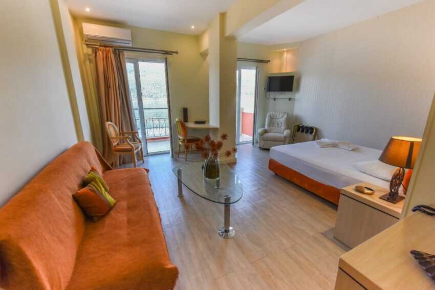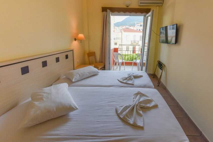 Dobbeltrom med balkong, noen med havutsikt. En dobbeltseng eller to enkeltsenger. Wifi og luftkondisjonering er inkludert. Kjøleskap. TV. Hårføner. Bad med dusj og wc. Rengjøring 6 ggr/uke.