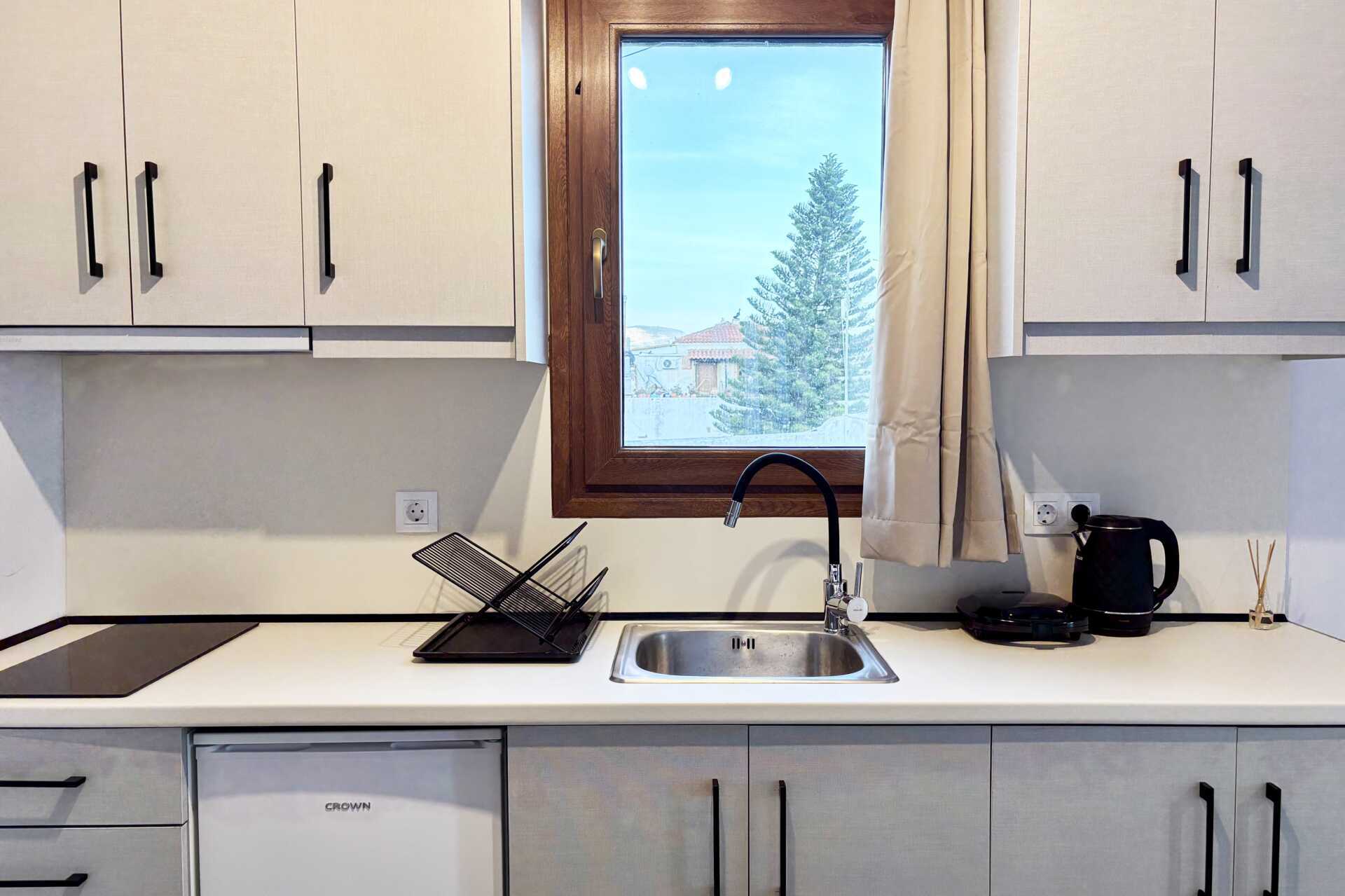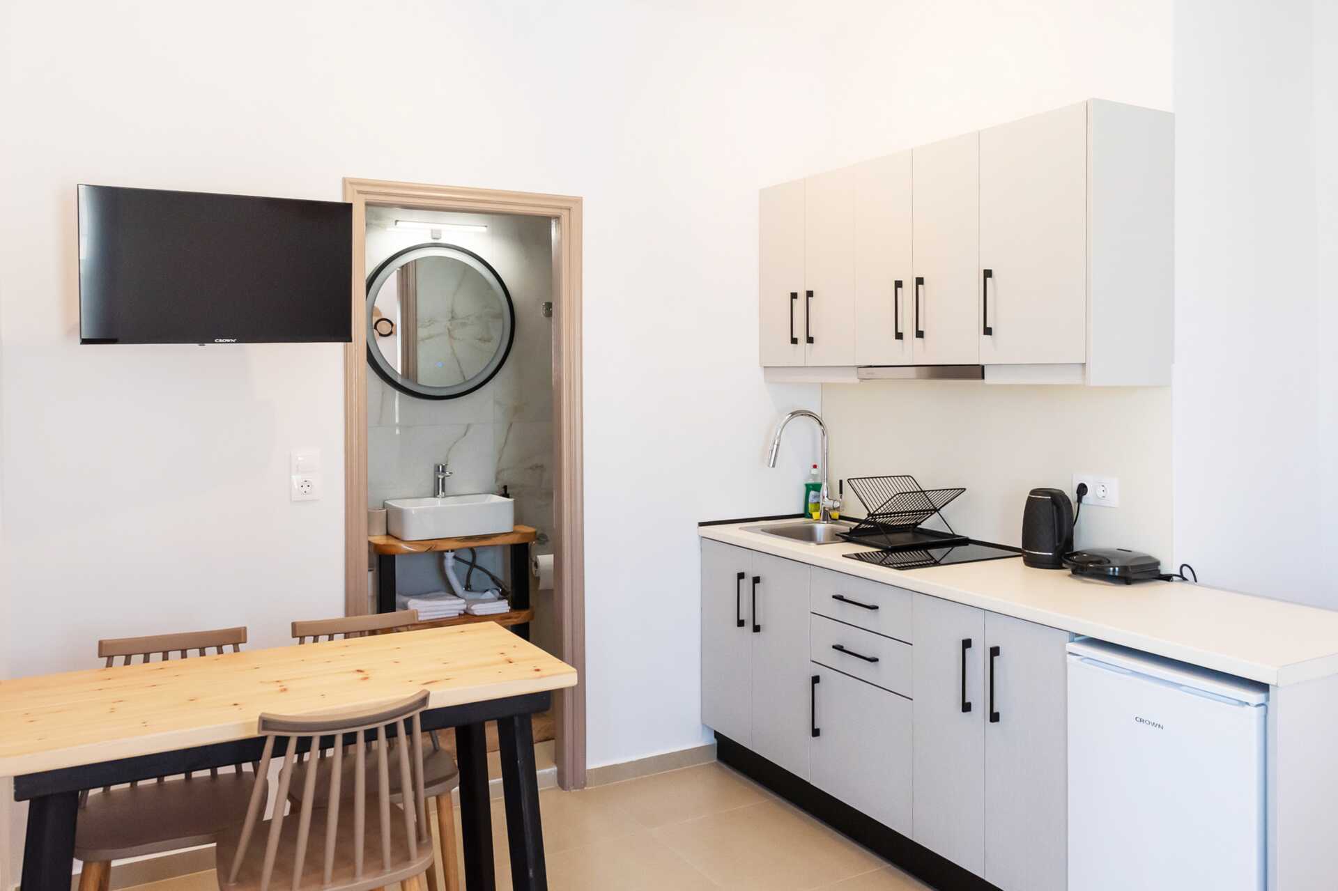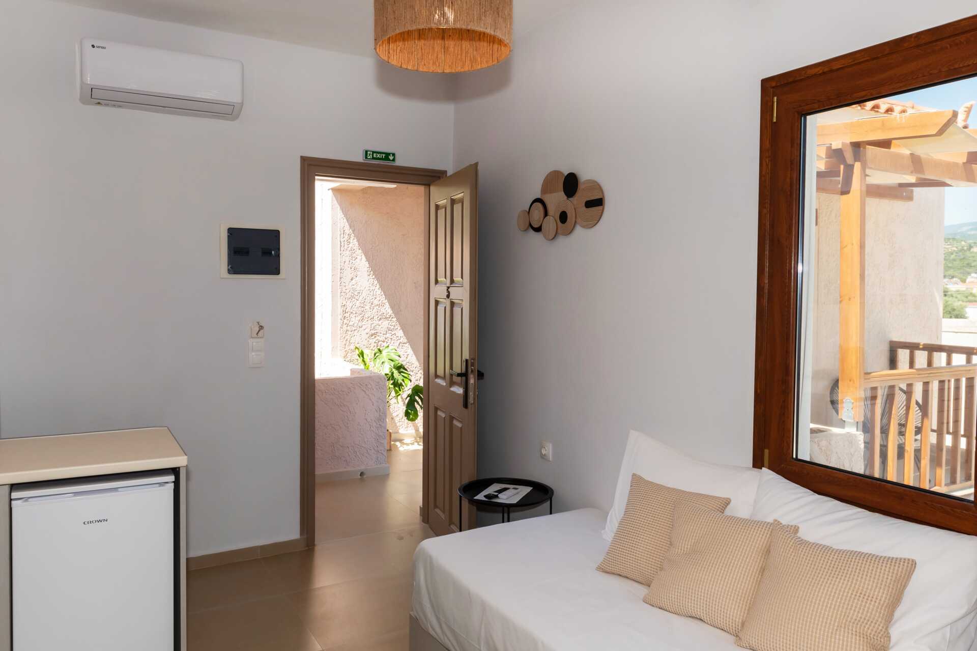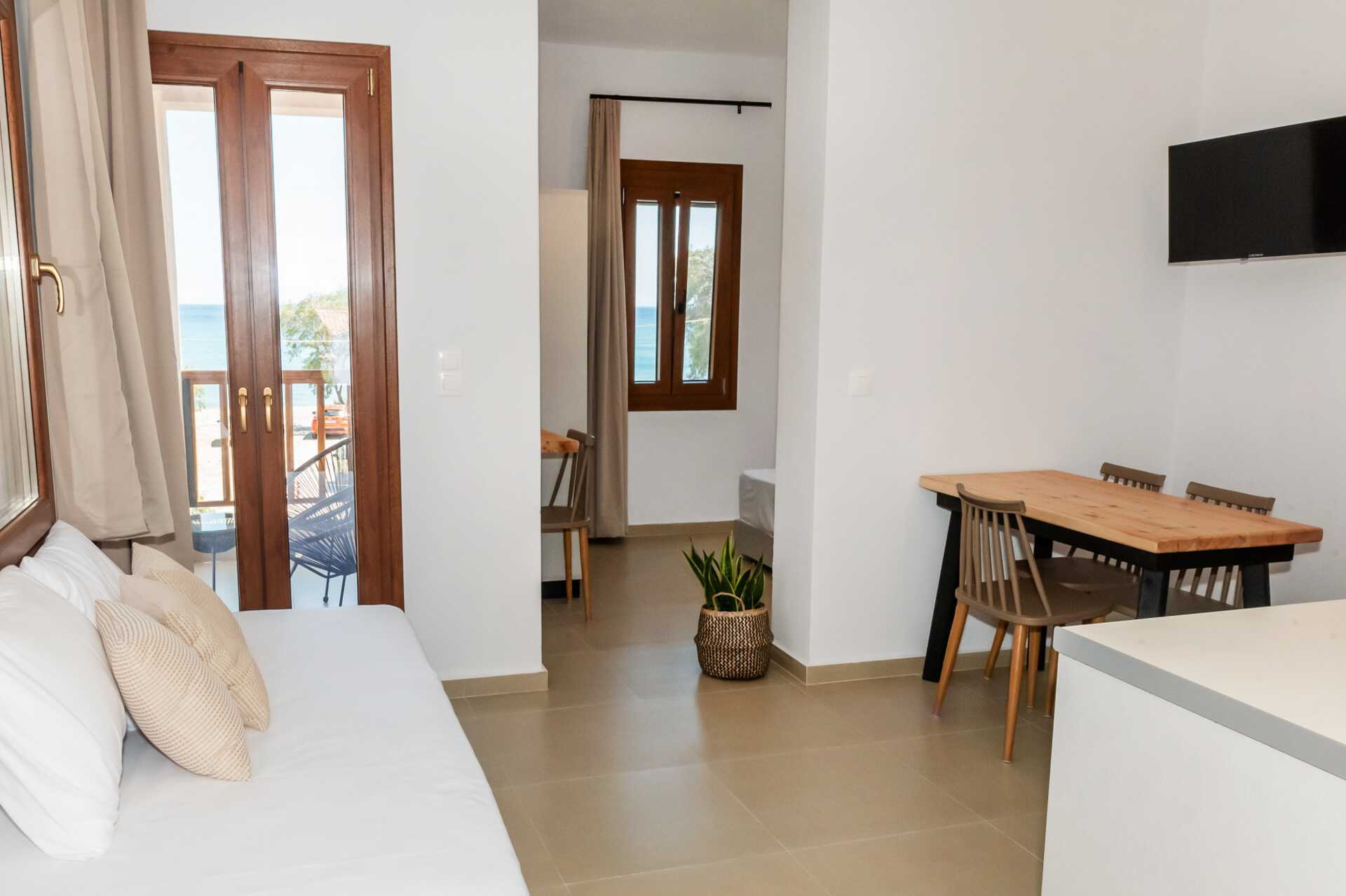 Ettromsleilighet med balkong eller terrasse med begrenset utsikt eller utsikt over fjellene. Kombinert soverom og minikjøkken. En dobbeltseng. Mulig med en ekstraseng i sovesofa. Minikjøkken med kokeplater, kjøleskap, vannkoker, sandwichgrill og enkelt kjøkkenutstyr. Wifi, luftkondisjonering og safe inkludert. TV. Baderom med dusj og wc. Rengjøring 6 ggr/uke.