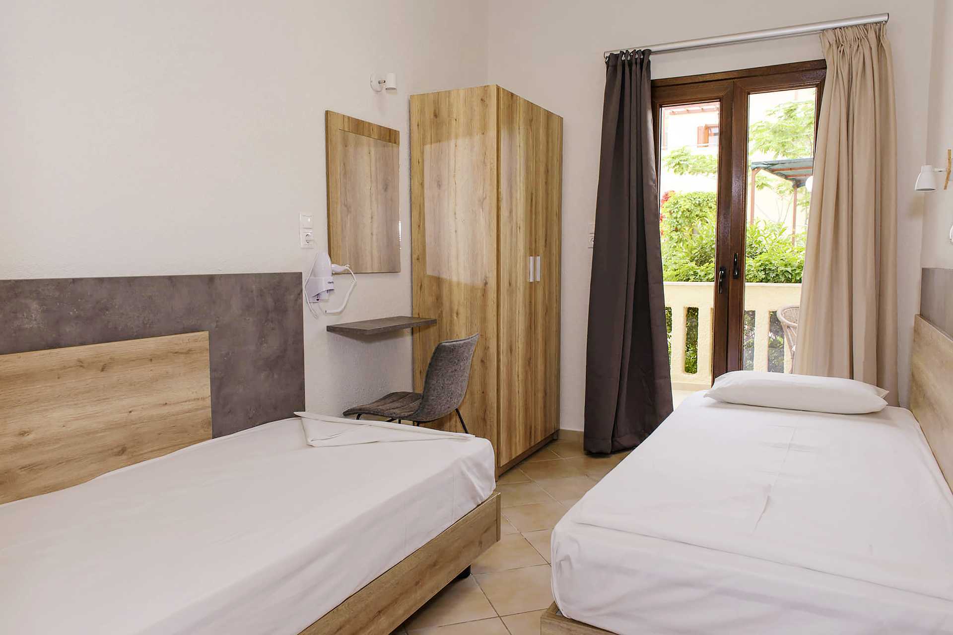 Ettromsleilighet med balkong. Minikjøkken. En dobbeltseng eller to enkeltsenger. Minikjøkken med kokeplater, kjøleskap, vannkoker og enkelt kjøkkenutstyr. Wifi og safe inkludert. Luftkondisjonering mot avgift. Hårføner. Baderom med dusj og wc. Rengjøring 3 ggr/uke.