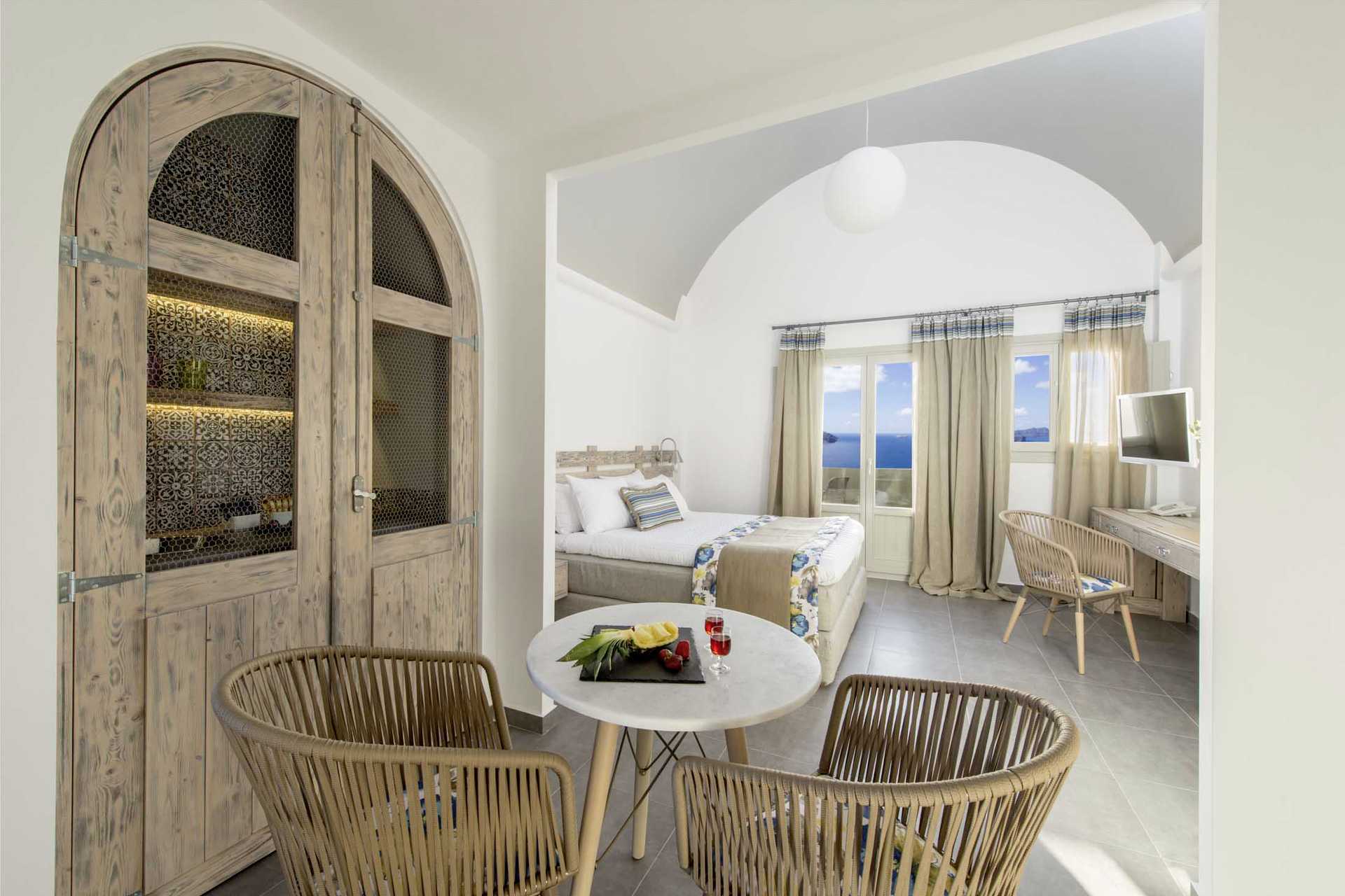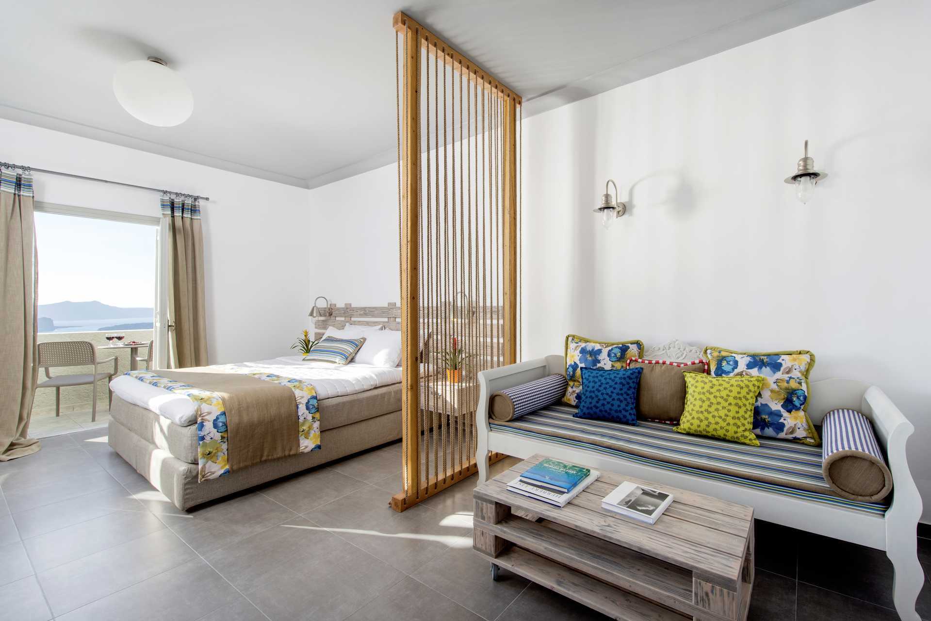 Juniorsuite med balkong og havutsikt. Åpen planløsning mellom stue og soverom. En dobbeltseng eller to enkeltsenger. Mulig med ekstraseng i sovesofa. Wifi, luftkondisjonering og safe. Kjøleskap. Nespresso kaffemaskin. Vannkoker samt kaffe og te. TV. Hårføner. Dusj og wc. Rengjøring 7 ggr/uke.