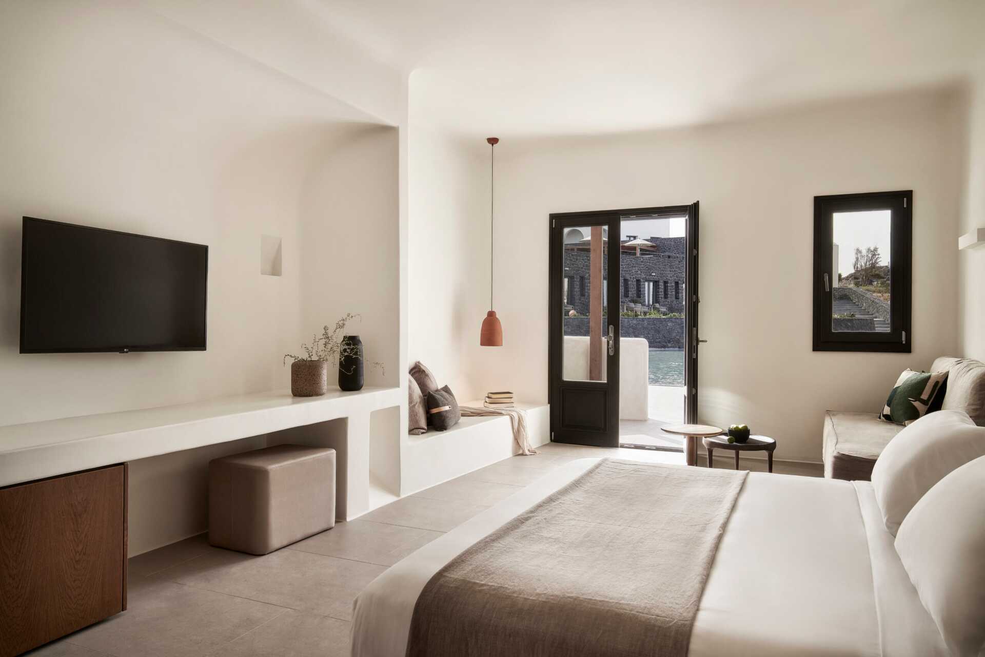 Deluxerom med balkong eller terrasse og havutsikt. En dobbeltseng. Wifi, luftkondisjonering og safe inkludert. Kjøleskap. Vannkoker samt kaffe og te. TV. Strykejern og strykebrett. Badekåper og tøfler Hårføner. Dusj og wc. Rengjøring 7 ggr/uke.