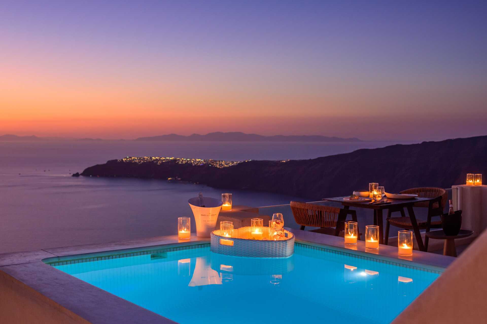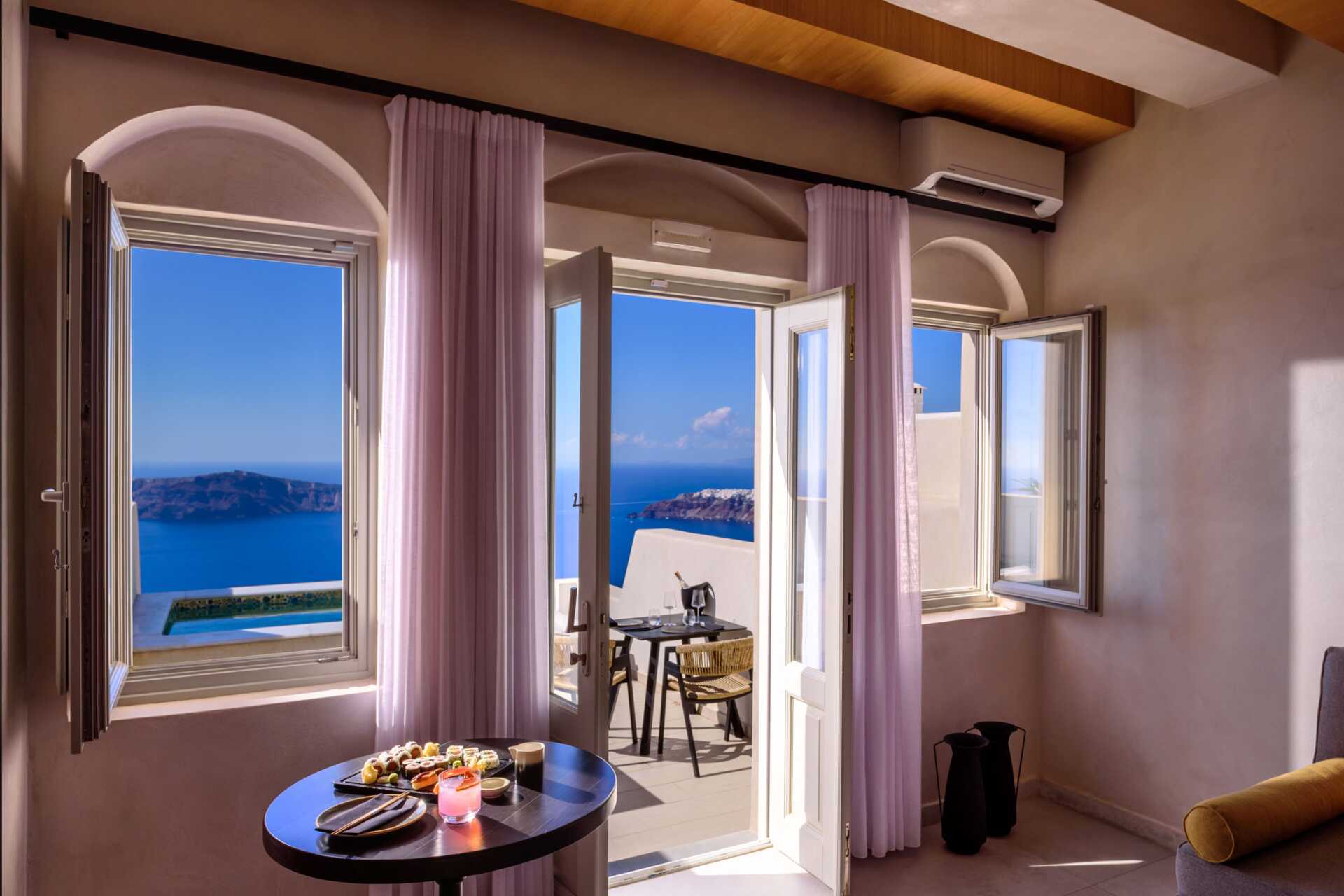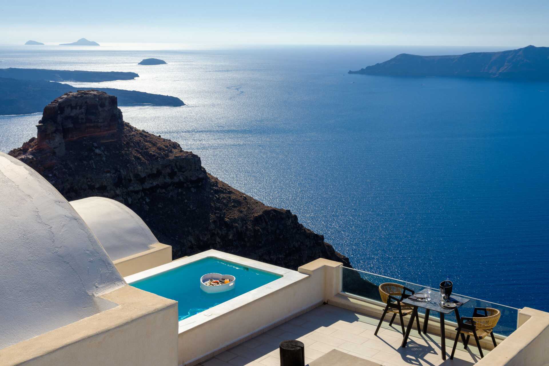 Fra Santorini lufthavn til hotellene våre i Firostefani og Imerovigli tar det cirka 20 minutter.