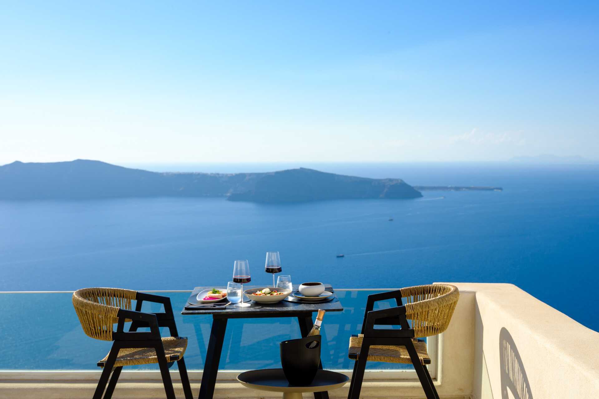 Suite med balkong eller terrasse og havutsikt. På uteplassen er det jacuzzi og solsenger. Suitene består av en soveromsdel og en stuedel. En dobbeltseng. Mulig med ekstraseng i sovesofa. Wifi, luftkondisjonering og safe inkludert. Kjøleskap. Vannkoker samt kaffe og te. TV. Hårføner. Dusj og wc. Rengjøring 7 ggr/uke. Barn under 2 år regnes inn i maksantallet i rommet.