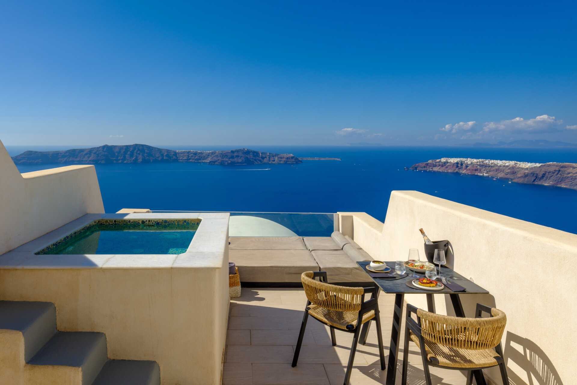 Deluxesuiter med balkong eller terrasse og havutsikt. På terrassen er det et oppvarmet privat basseng, solsenger og spiseplass. Deluxesuitene har en dobbeltseng og stue med mulighet for ekstraseng i sovesofa. Wifi, luftkondisjonering og safe inkludert. Kjøleskap. Vannkoker samt kaffe og te. TV. Hårføner. Dusj og wc. Rengjøring 7 ggr/uke. Barn under 2 år regnes inn i maksantallet i rommet.