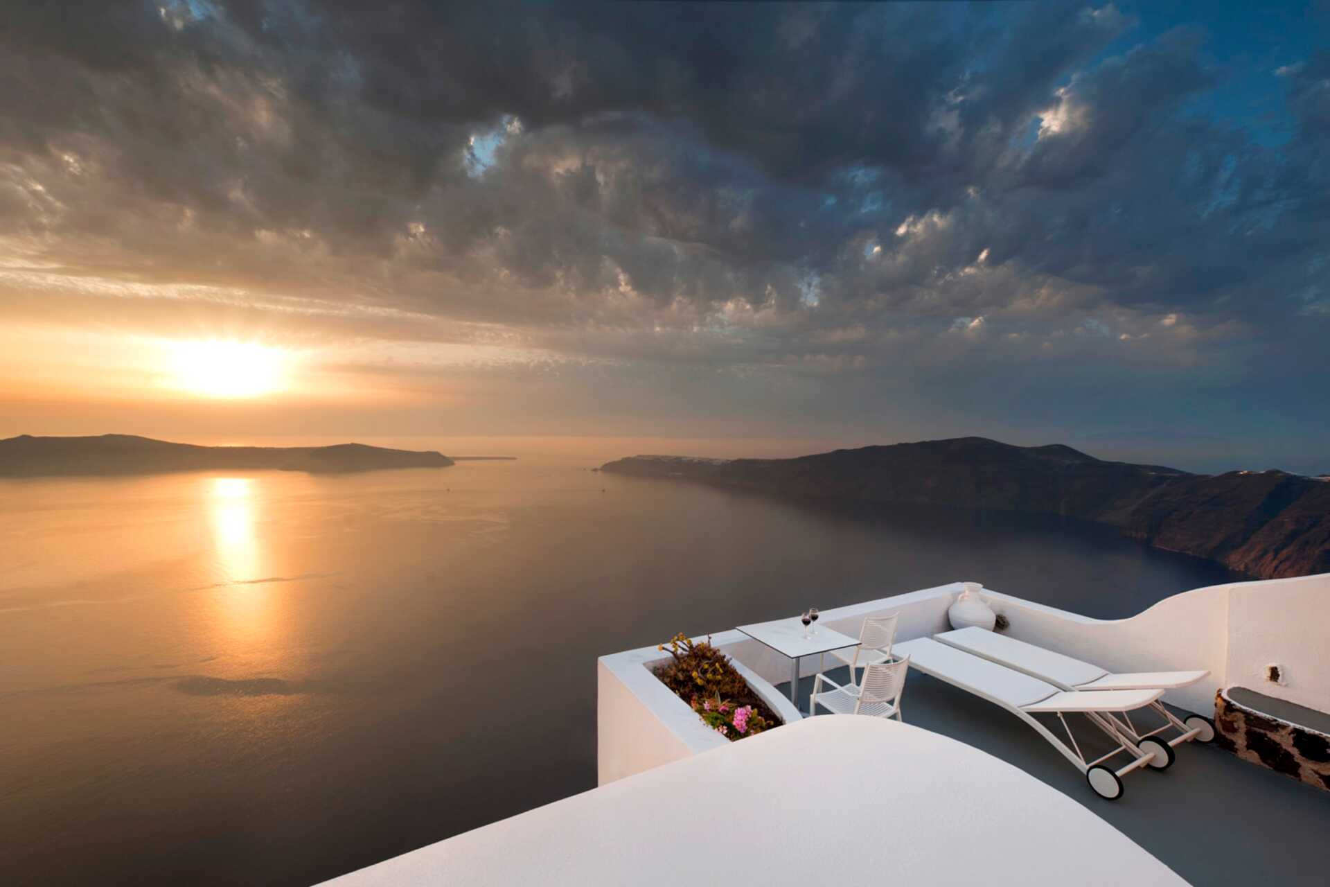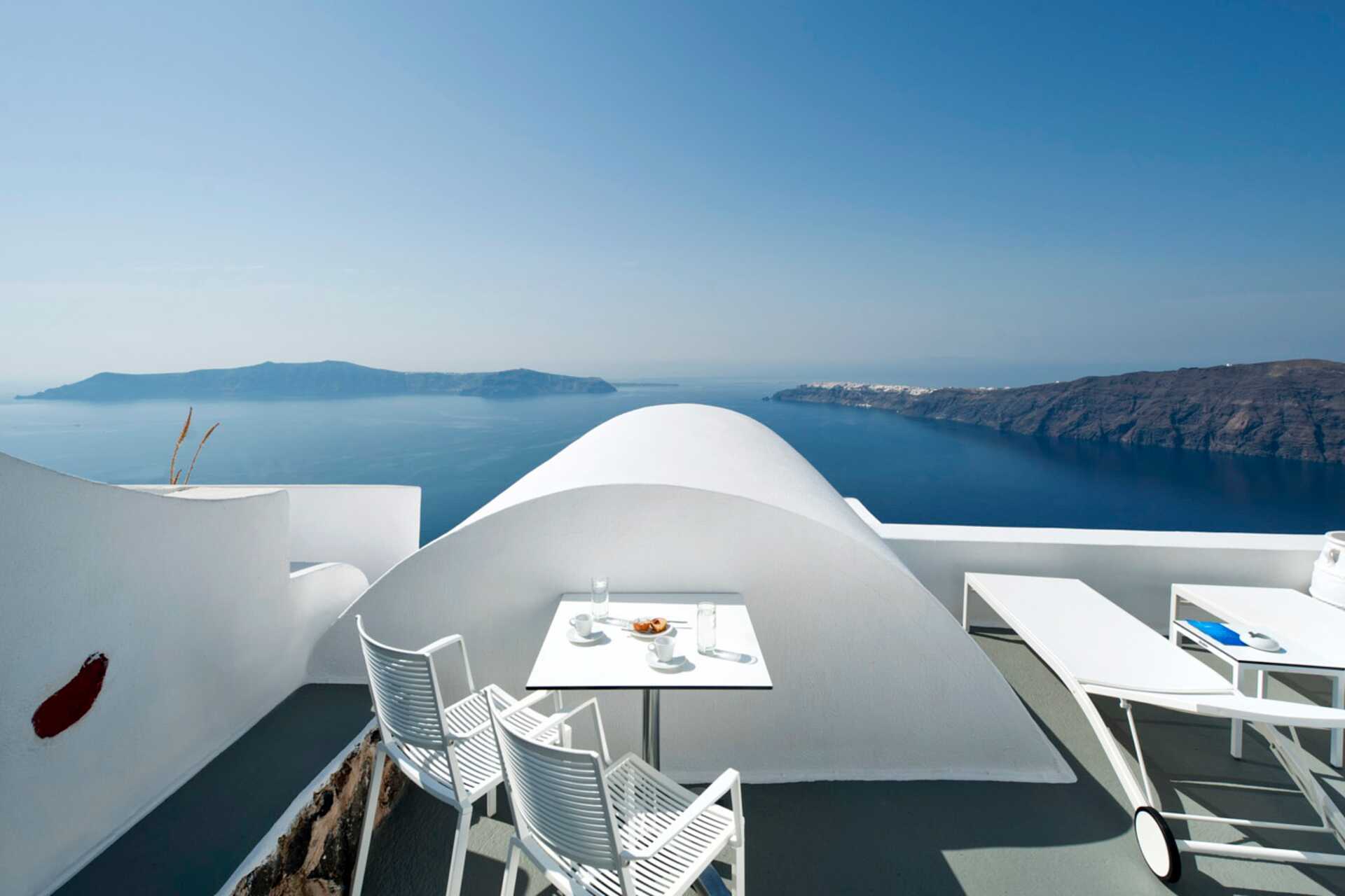 Deluxerom med balkong eller markterrasse og havutsikt. Solsenger på uteplassen. Jacuzzi ute eller inne. En dobbeltseng. Wifi, luftkondisjonering og safe inkludert. Minibar. Vannkoker samt kaffe og te. Vin og fruktkurv ved ankomst. Badekåper og tøfler. TV. Dusj og wc, hårføner. Rengjøring 7 ggr/uke.