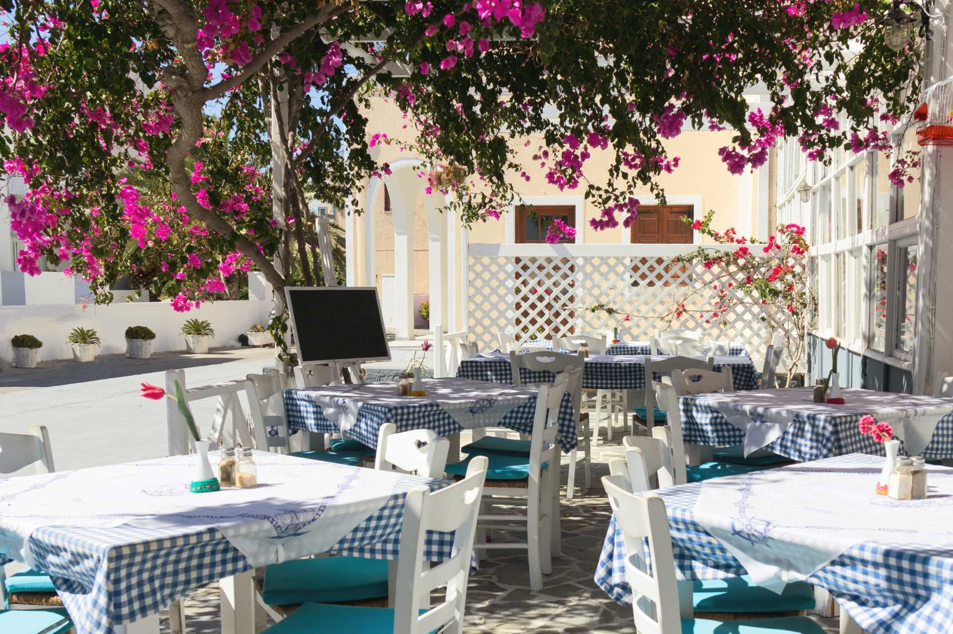 Kamaris mest autentiske greske tavernaer venter et stykke fra sentrum. Gå oppover med stranden i ryggen og hold øye med lokalbefolkningen. Her knuses det fortsatt tallerkener på greske kvelder og det serveres ouzo før eller etter måltidet. Vi sier som grekerne: Opa!