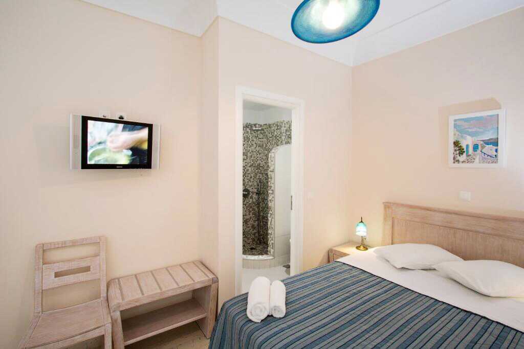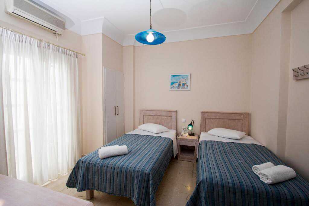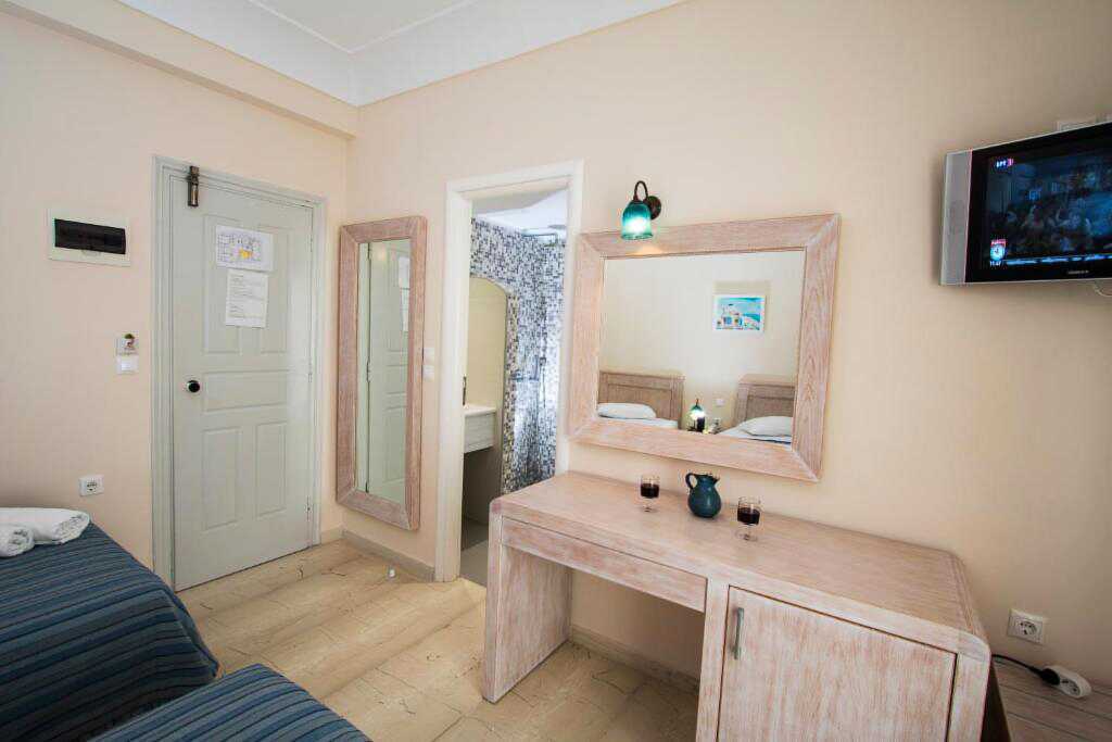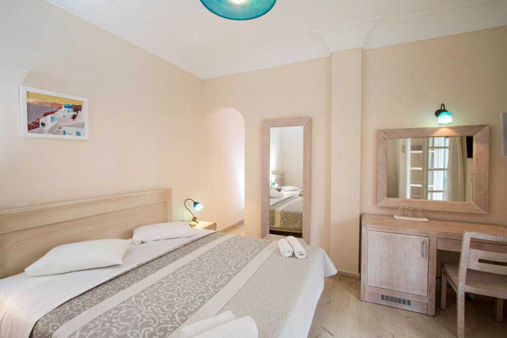 Trippelrom med balkong eller terrasse. En dobbeltseng og en enkeltseng. Wifi og luftkondisjonering inkludert. Safe mot avgift. Kjøleskap. TV. Hårføner. Dusj og wc. Rengjøring 6 ggr/uke.